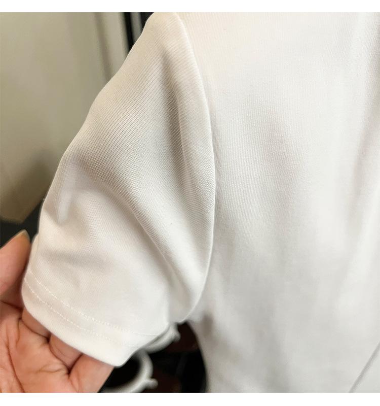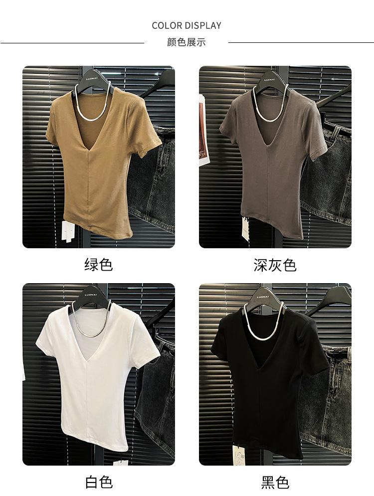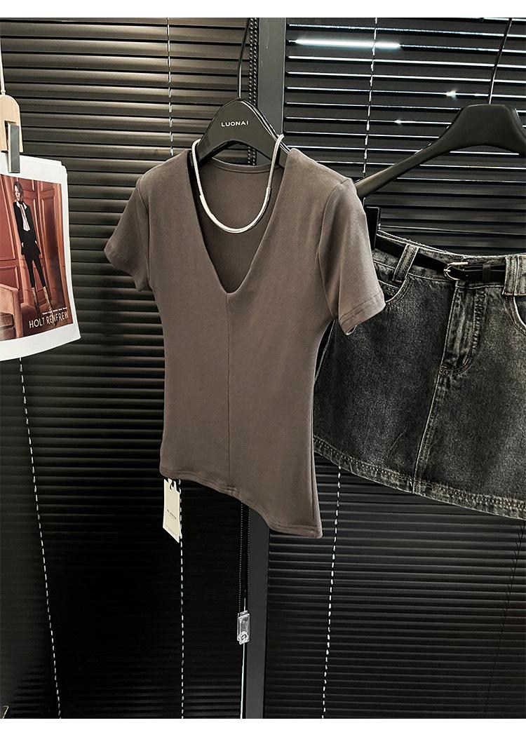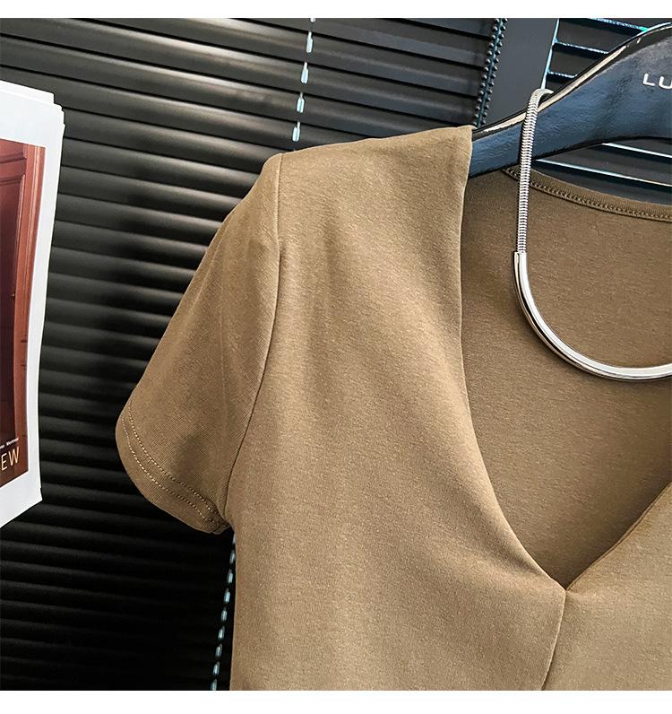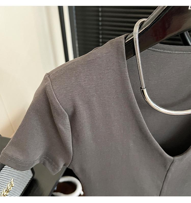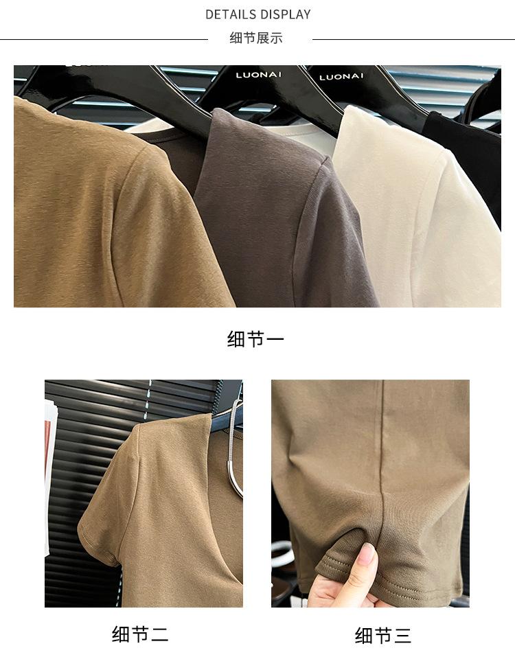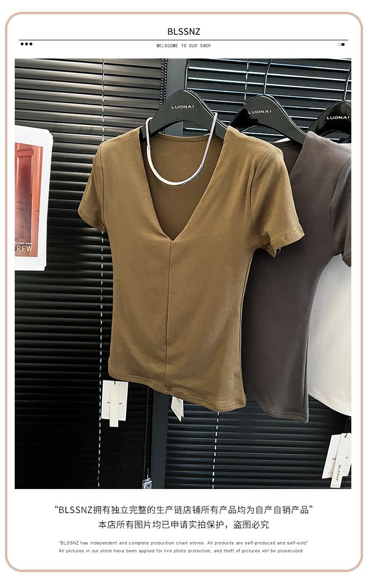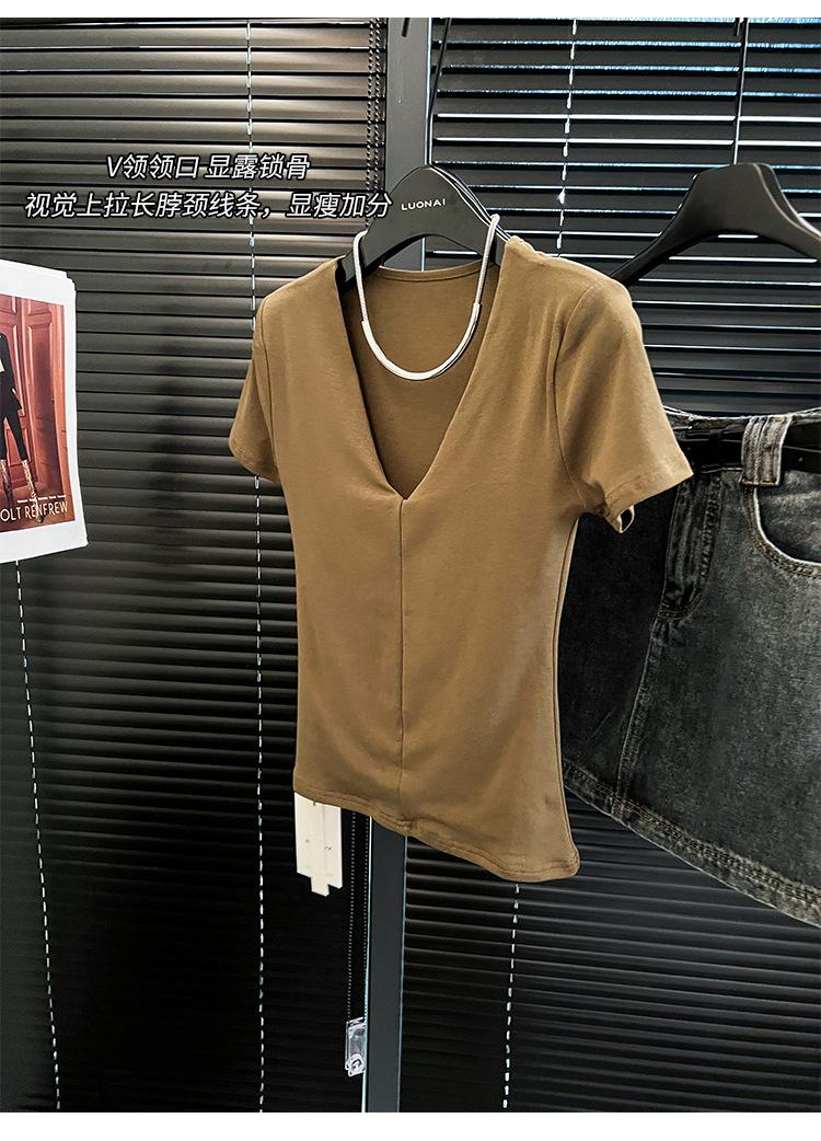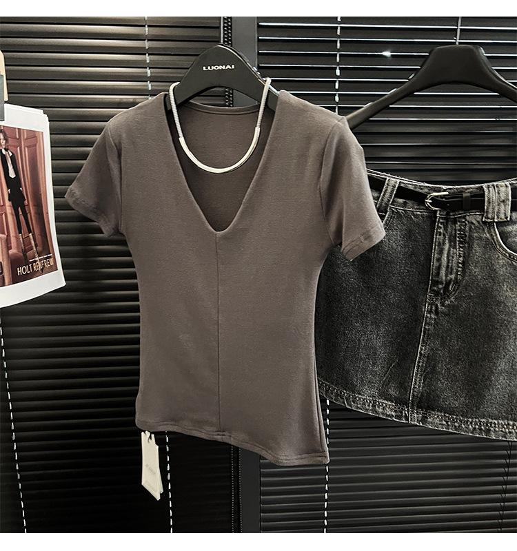 Camiseta blanca de manga corta con cuello en V europeo para mujer, novedad de verano 2023, con hombreras y parte superior interior de media manga, a la moda