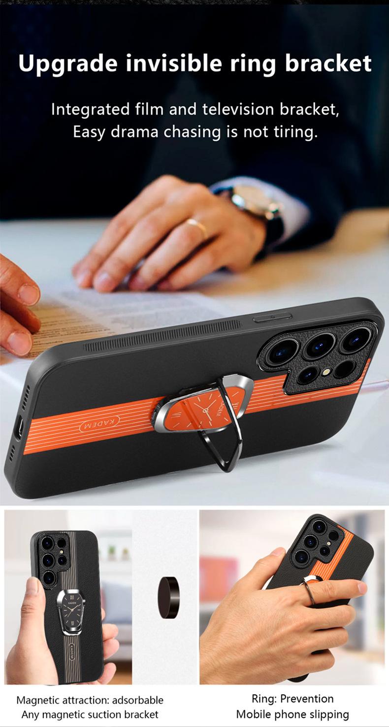 Adecuado para Funda de Cuero para Teléfono Samsung S24Ultra S23Fe Magnética para Coche S22 Soporte de Anillo S9 Funda Anticaída