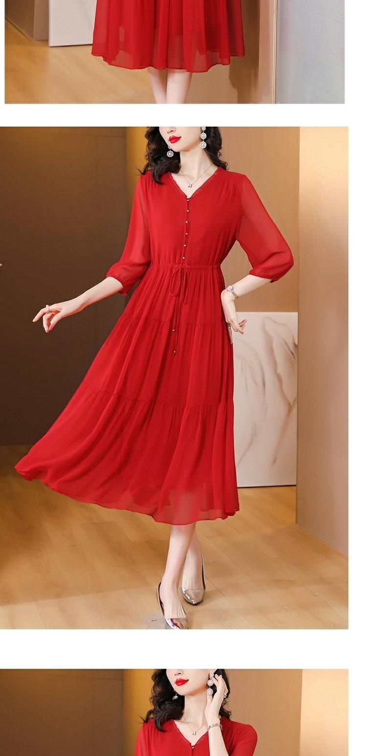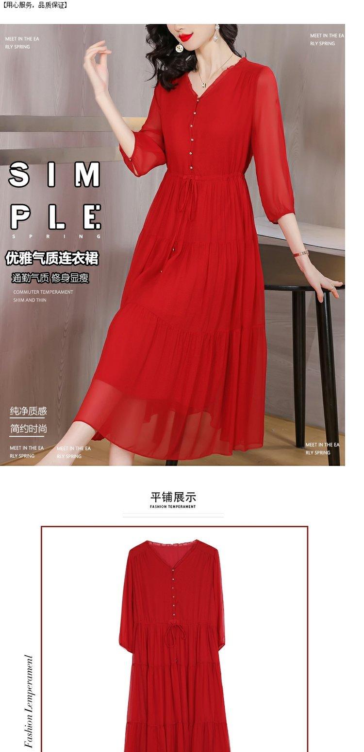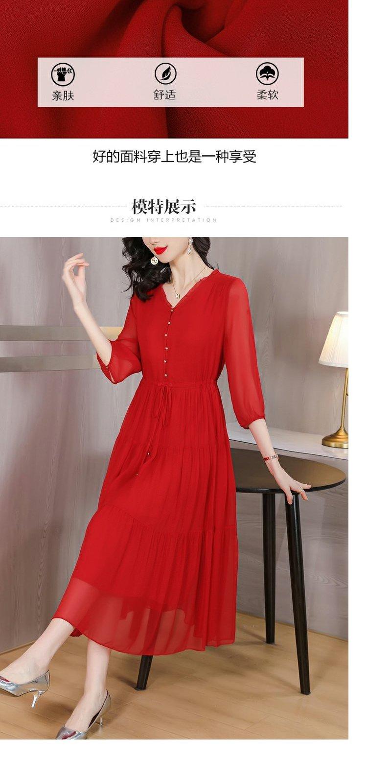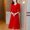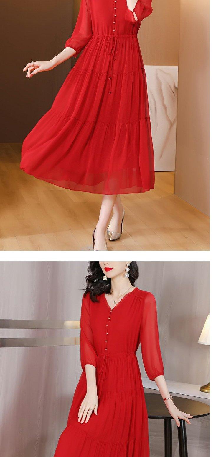 Vestido de seda morera con escote en V para mujer, verano 2024, nuevo estilo, elegante, de seda, cintura ajustada, rojo, elegante, línea A, vestido largo, moderno.