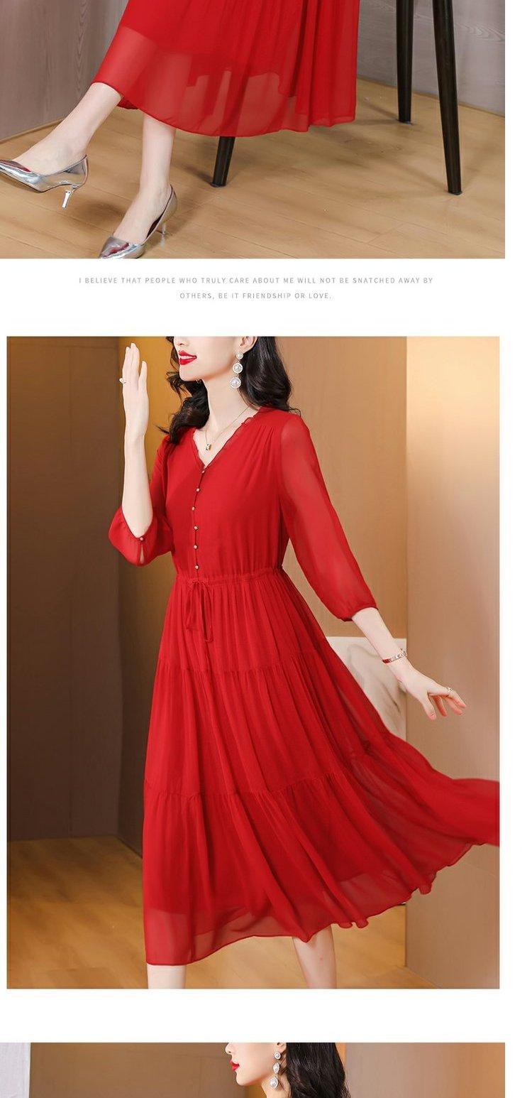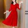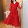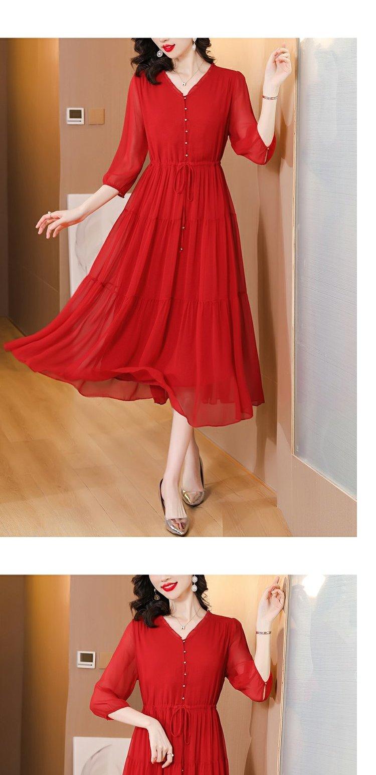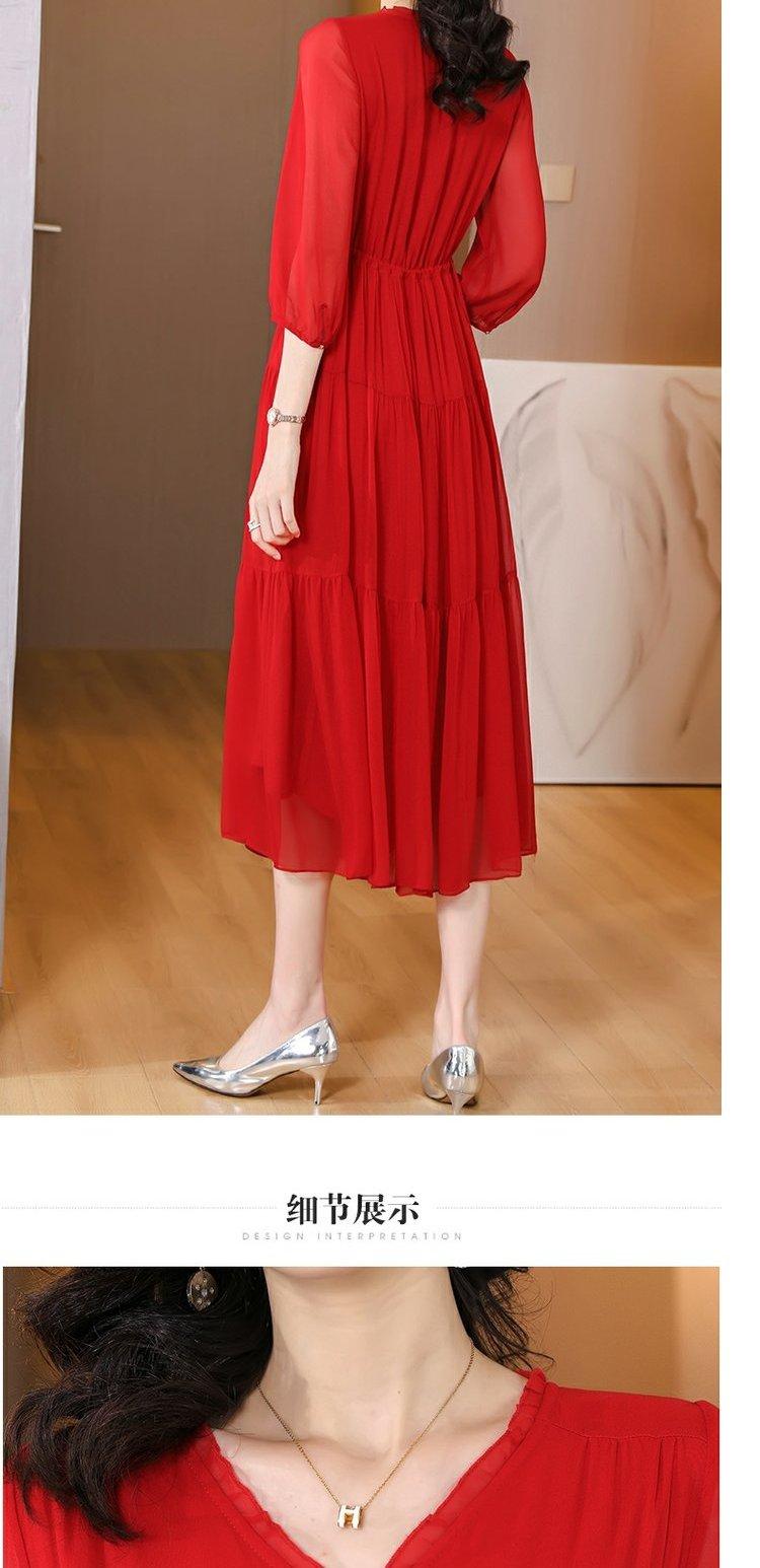 Vestido de seda morera con escote en V para mujer, verano 2024, nuevo estilo, elegante, de seda, cintura ajustada, rojo, elegante, línea A, vestido largo, moderno.
