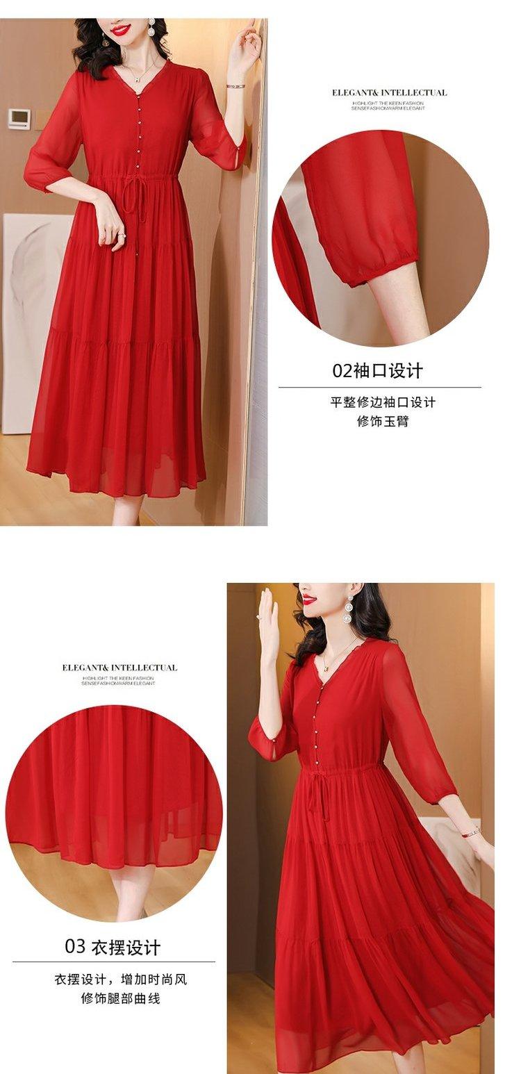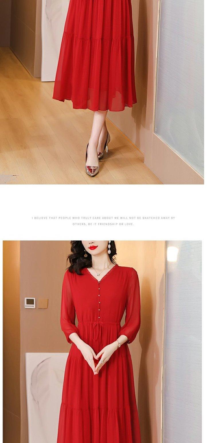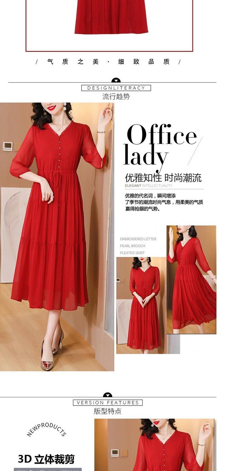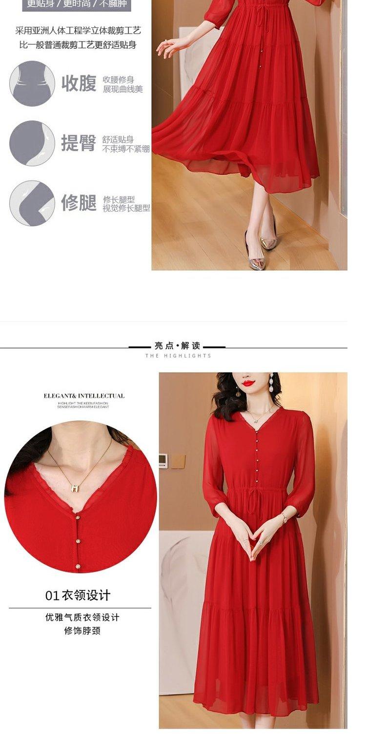 Vestido de seda morera con escote en V para mujer, verano 2024, nuevo estilo, elegante, de seda, cintura ajustada, rojo, elegante, línea A, vestido largo, moderno.