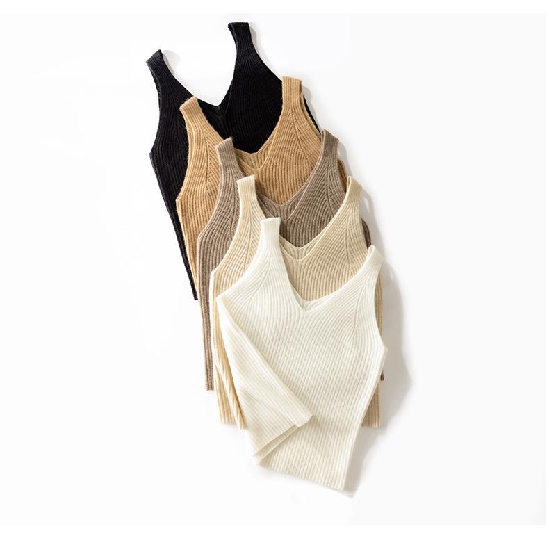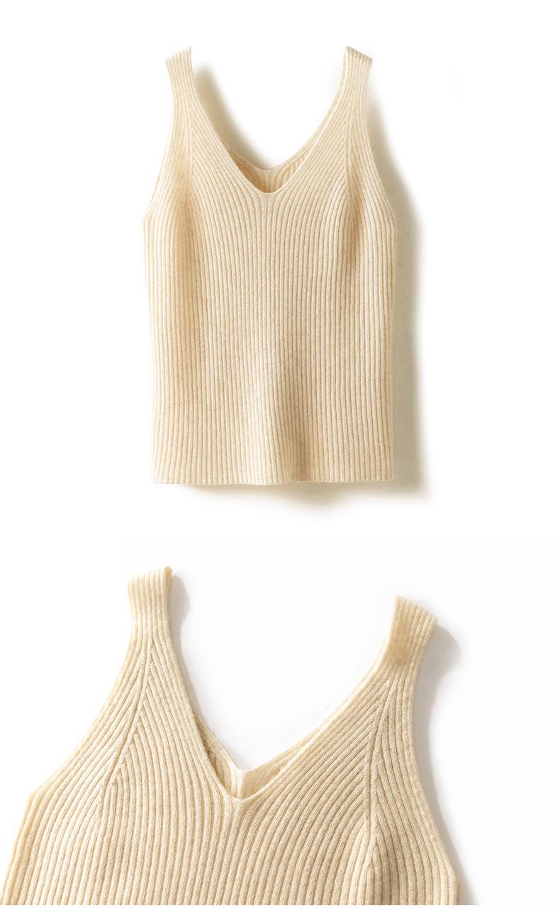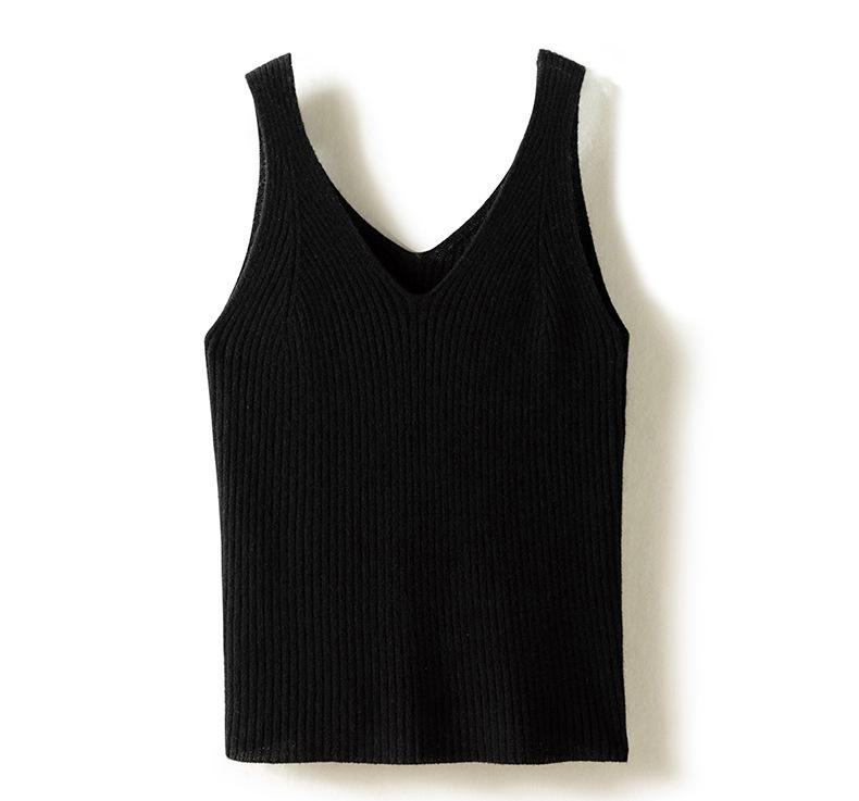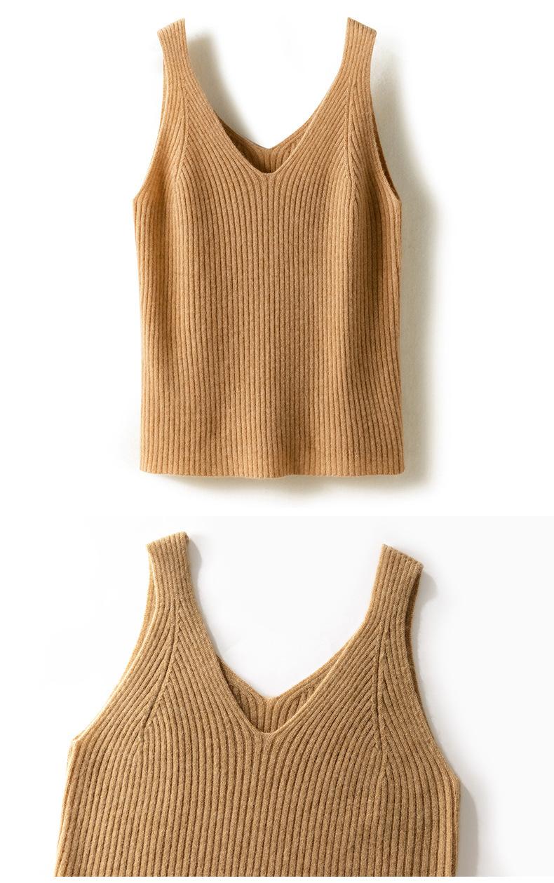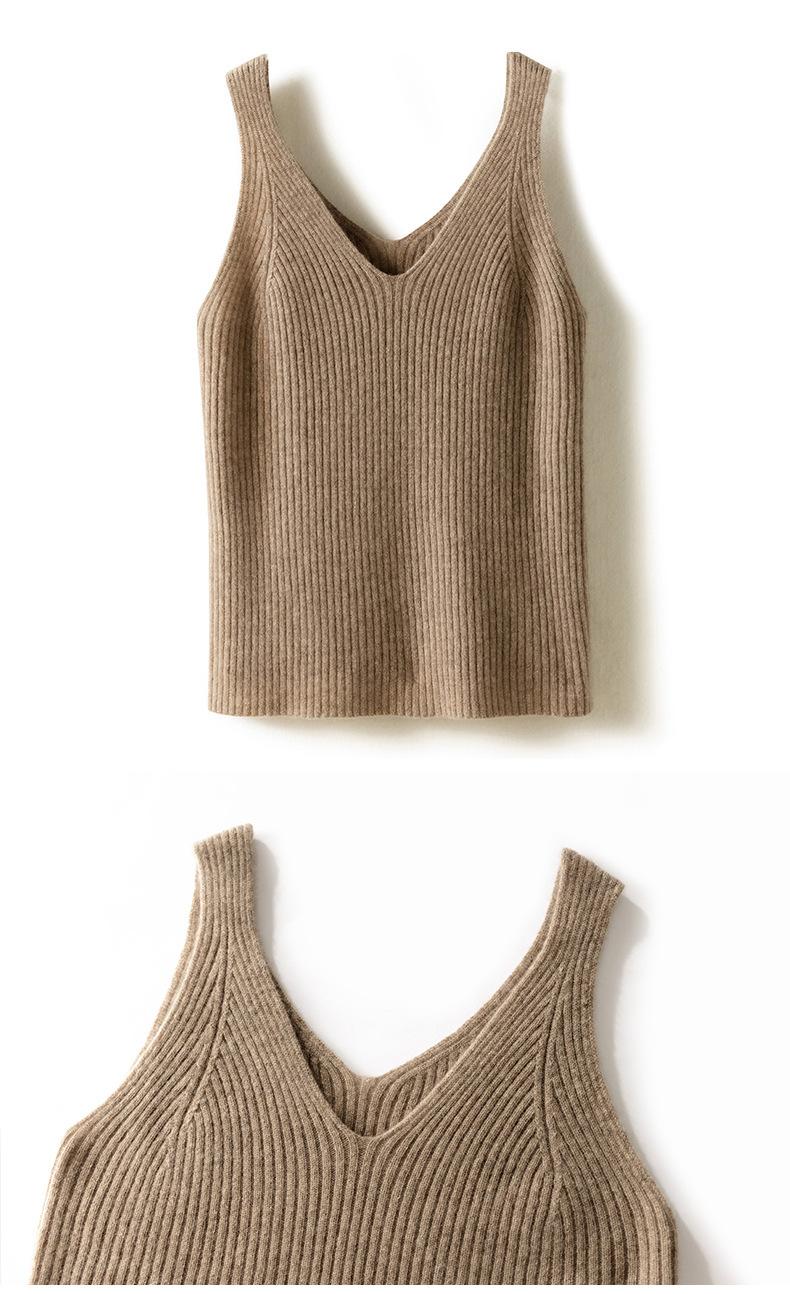 Otoño e Invierno 2025 Nuevo Cuello en V Cachemira Tirantes para Mujer Estilo Coreano Suéter Color Sólido Chaleco Sin Mangas Top Tejido Holgado