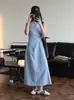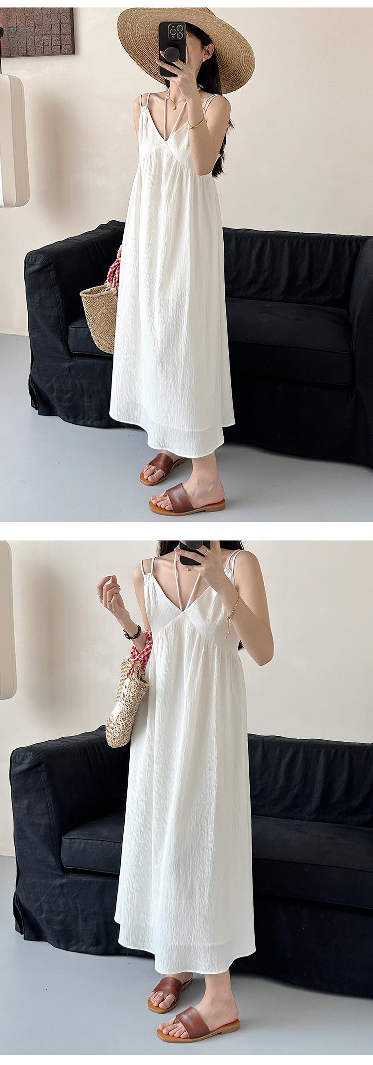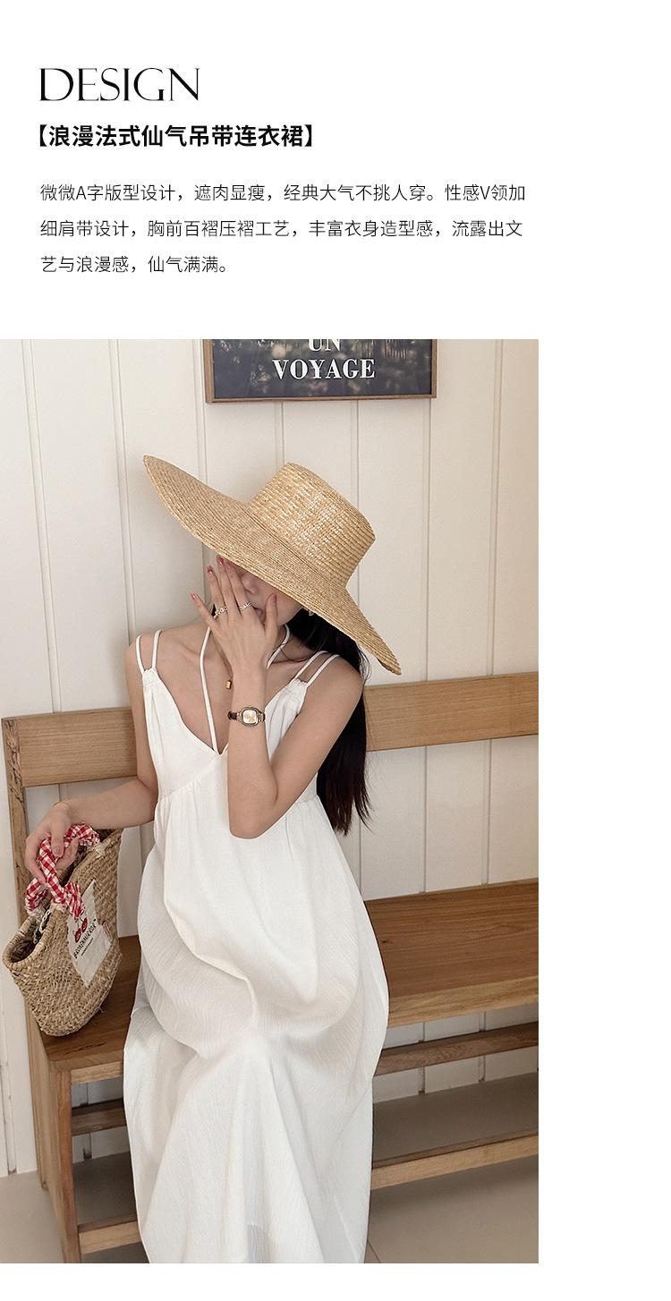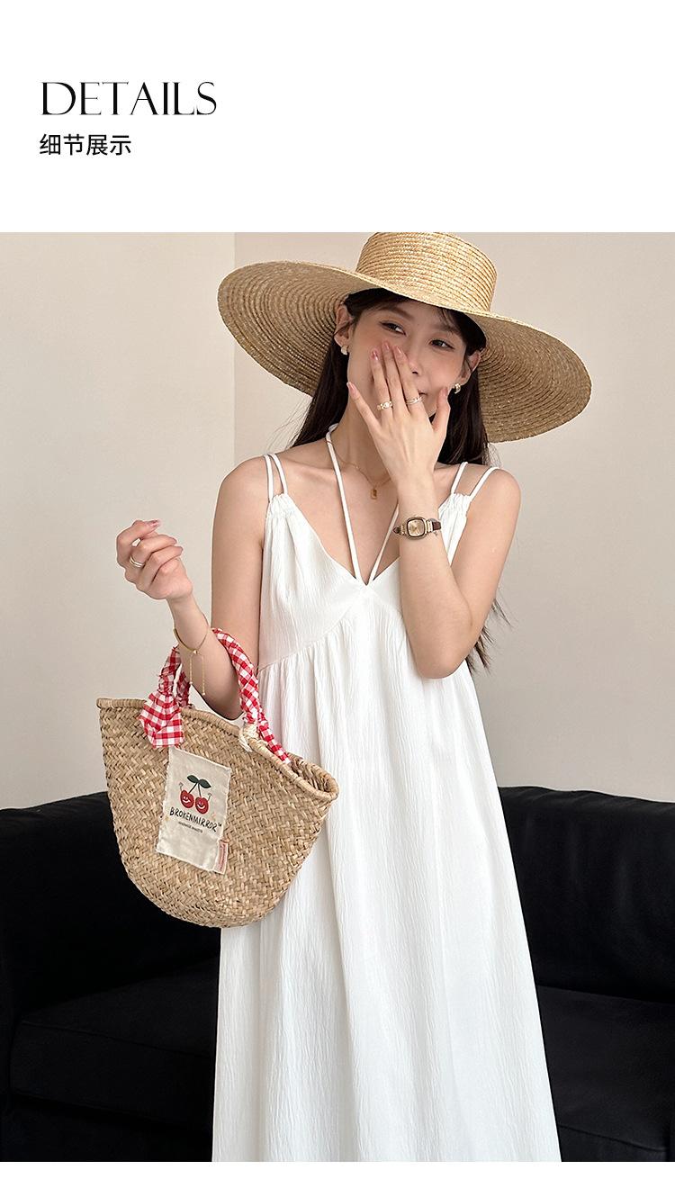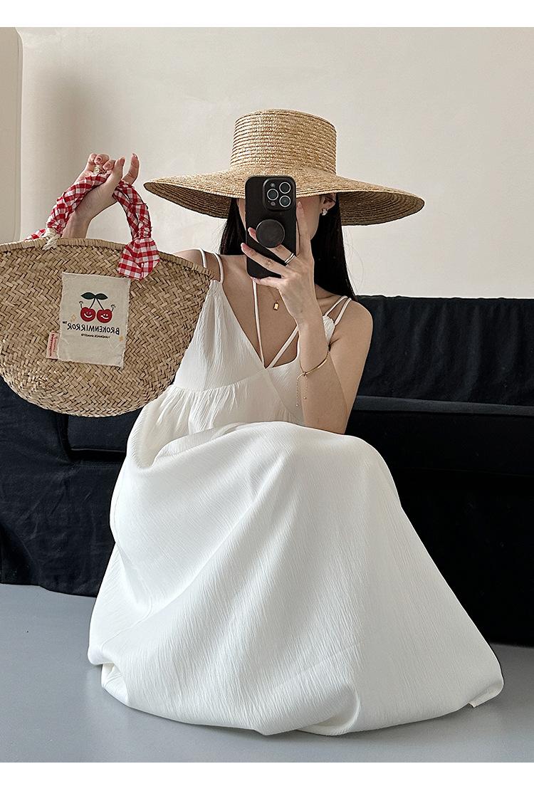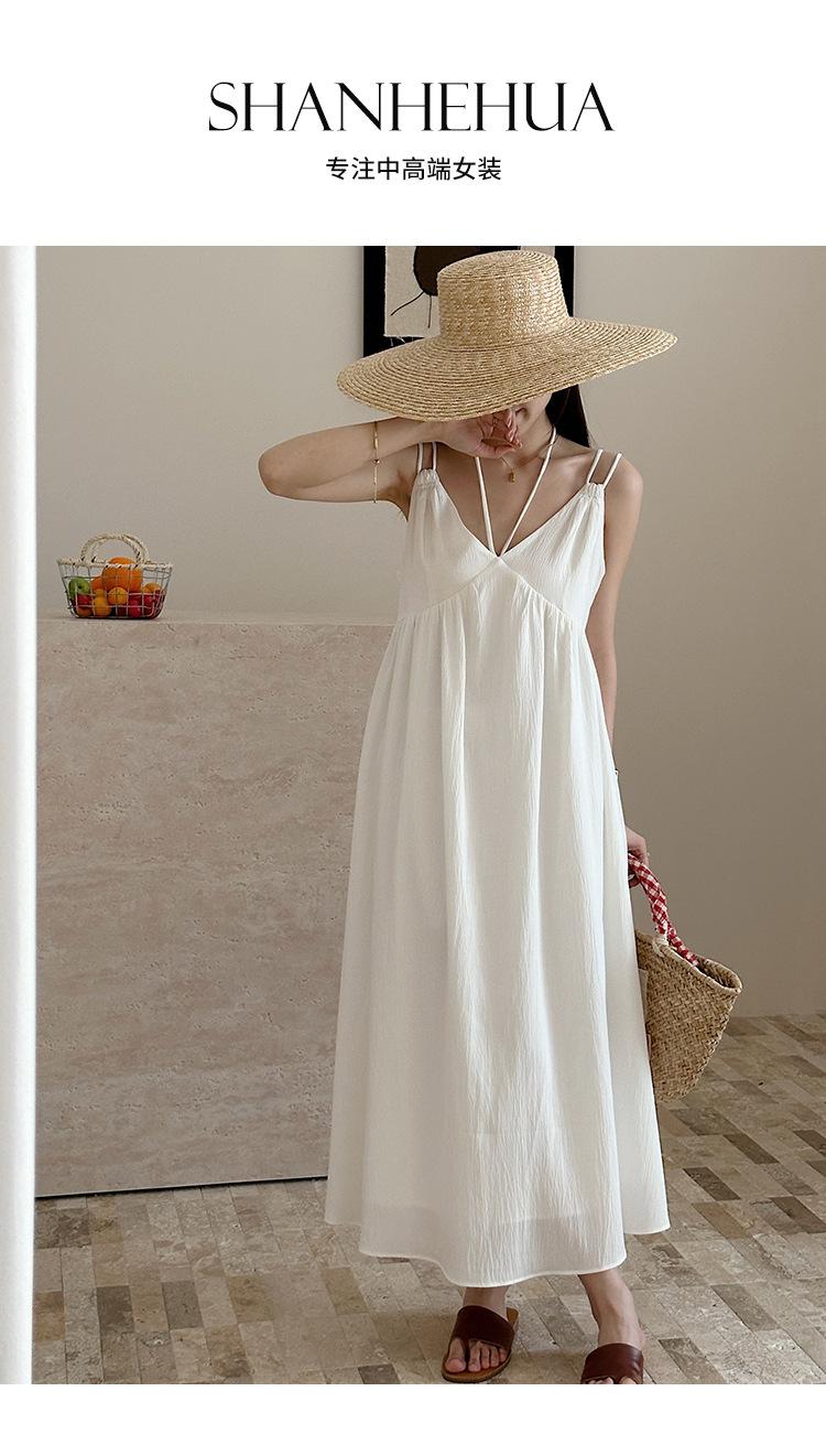 [Ben Chu] Vestido francés romántico blanco de verano para mujer, nuevo vestido largo con cuello en V y textura de alta gama.