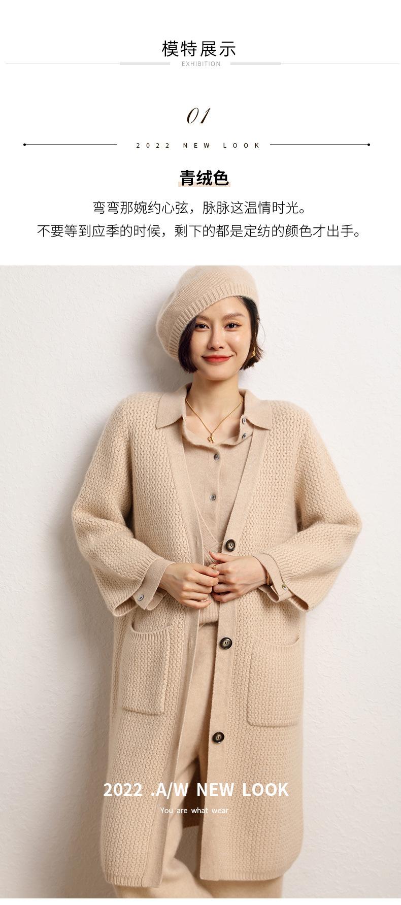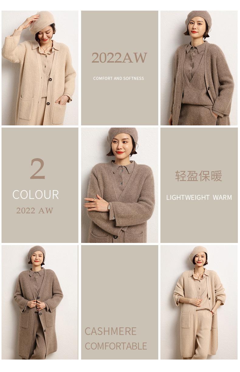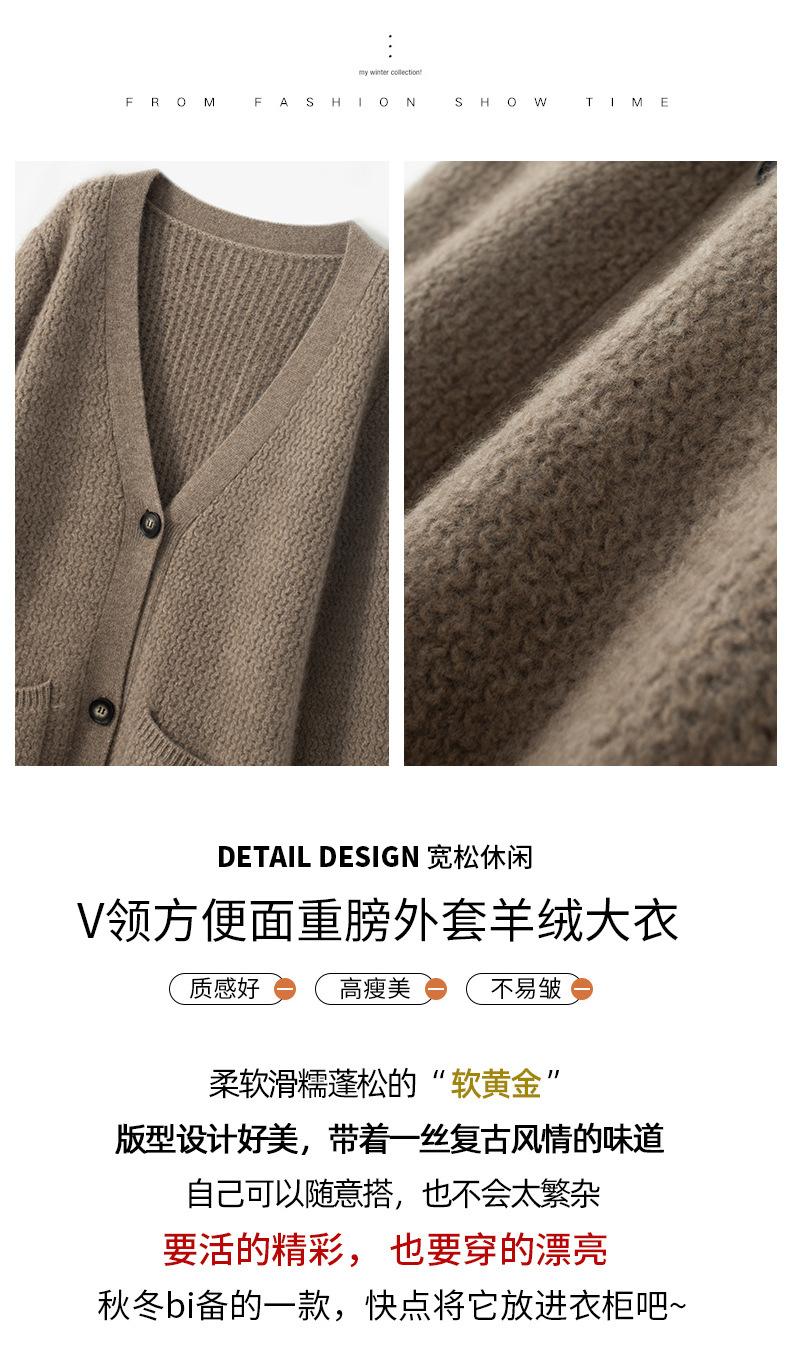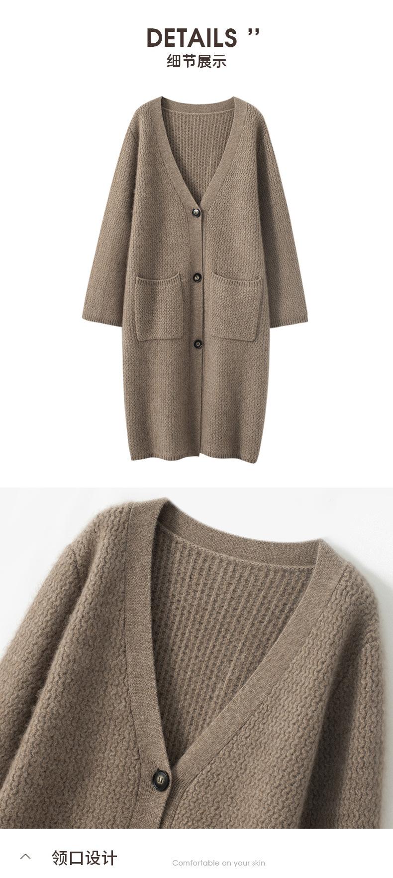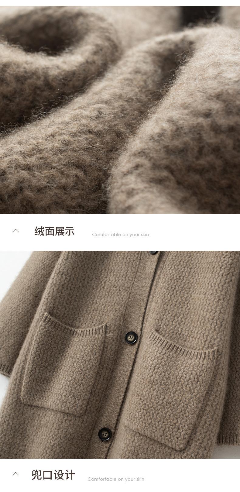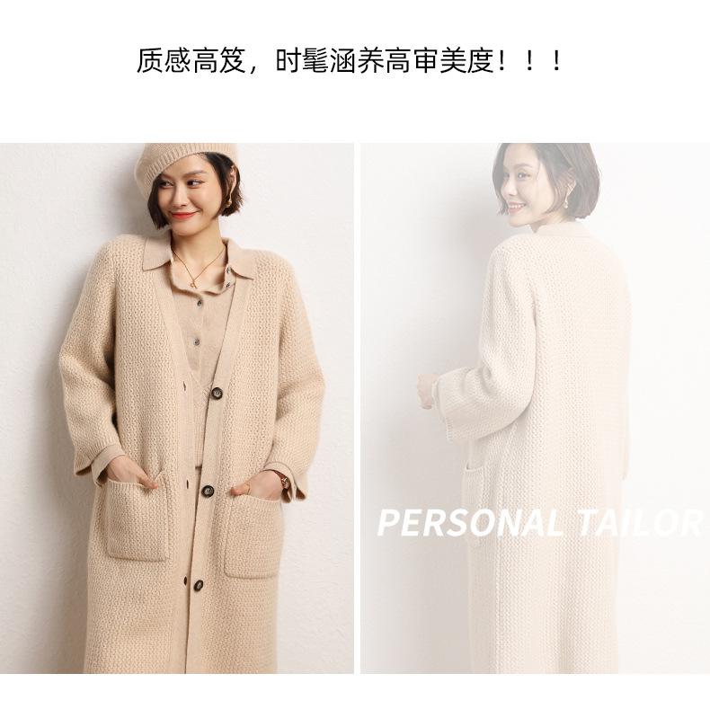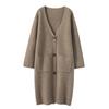 Cachmere Nueva Chaqueta de Punto Largo Medio para Mujer Cuello en V Hombro Pesado Versátil Doble Cara Cachmere Ropa Exterior con Diseño Moderno