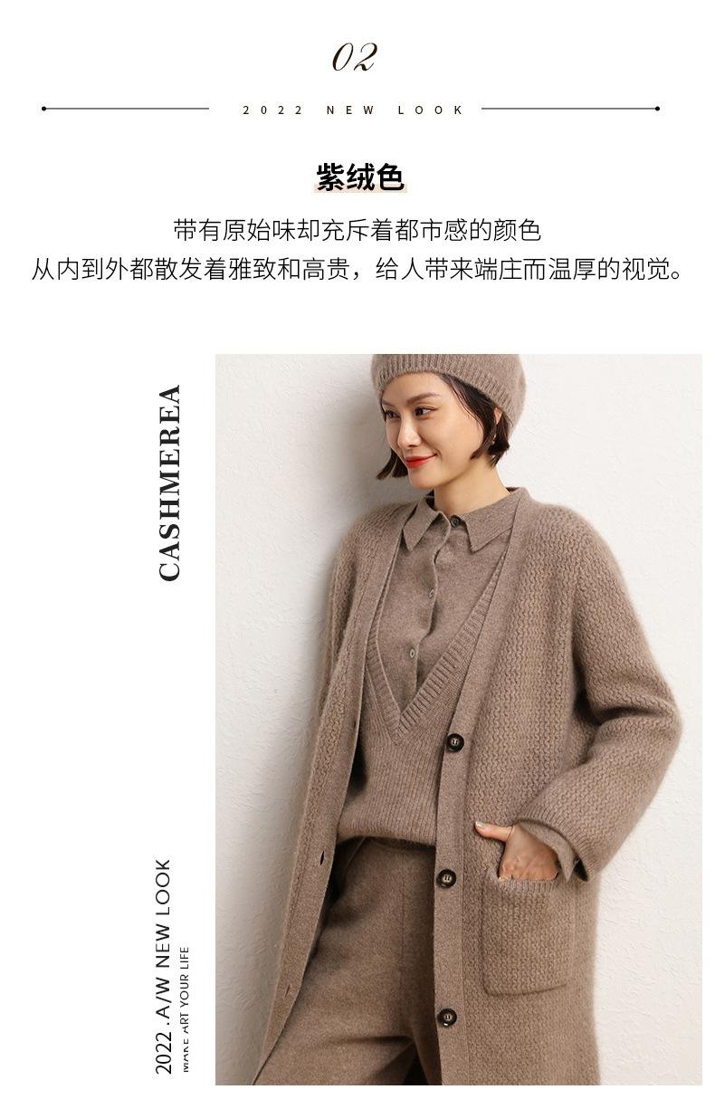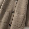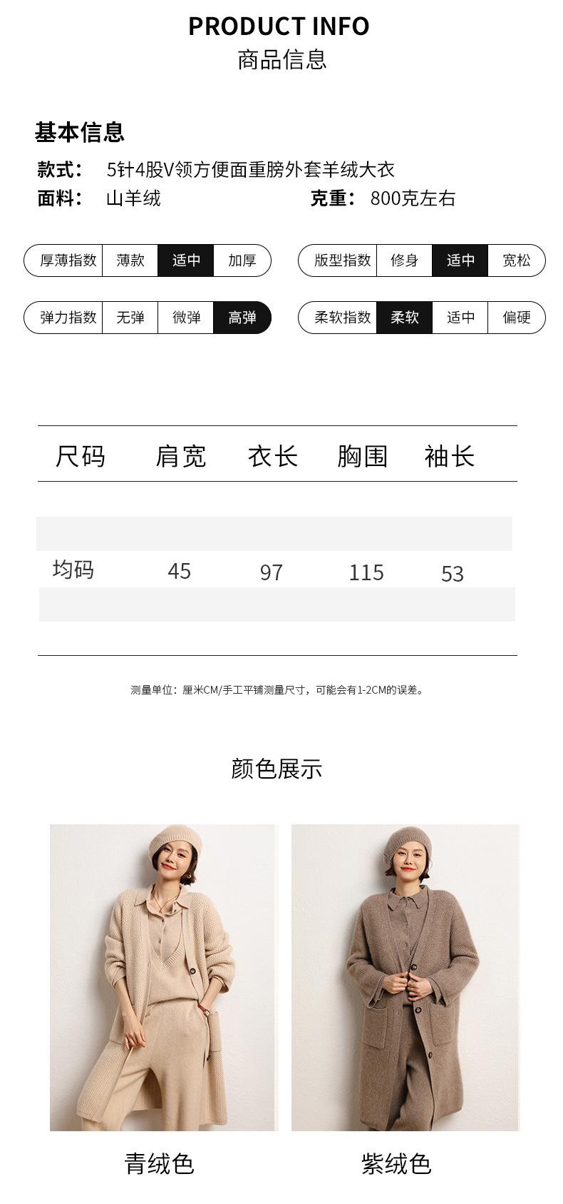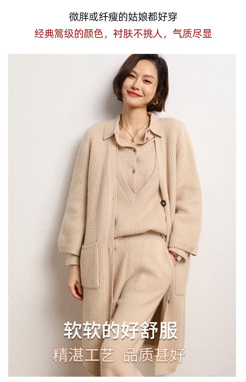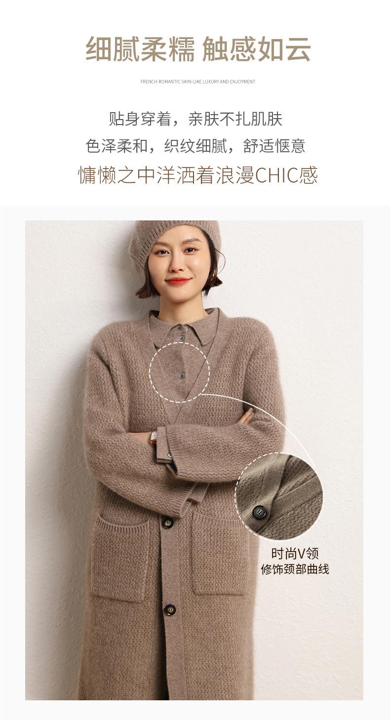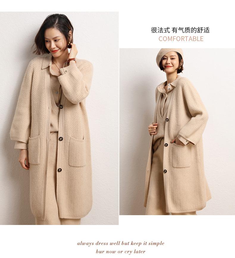 Cachmere Nueva Chaqueta de Punto Largo Medio para Mujer Cuello en V Hombro Pesado Versátil Doble Cara Cachmere Ropa Exterior con Diseño Moderno