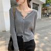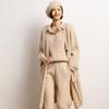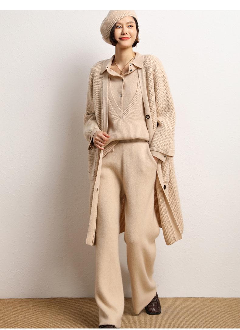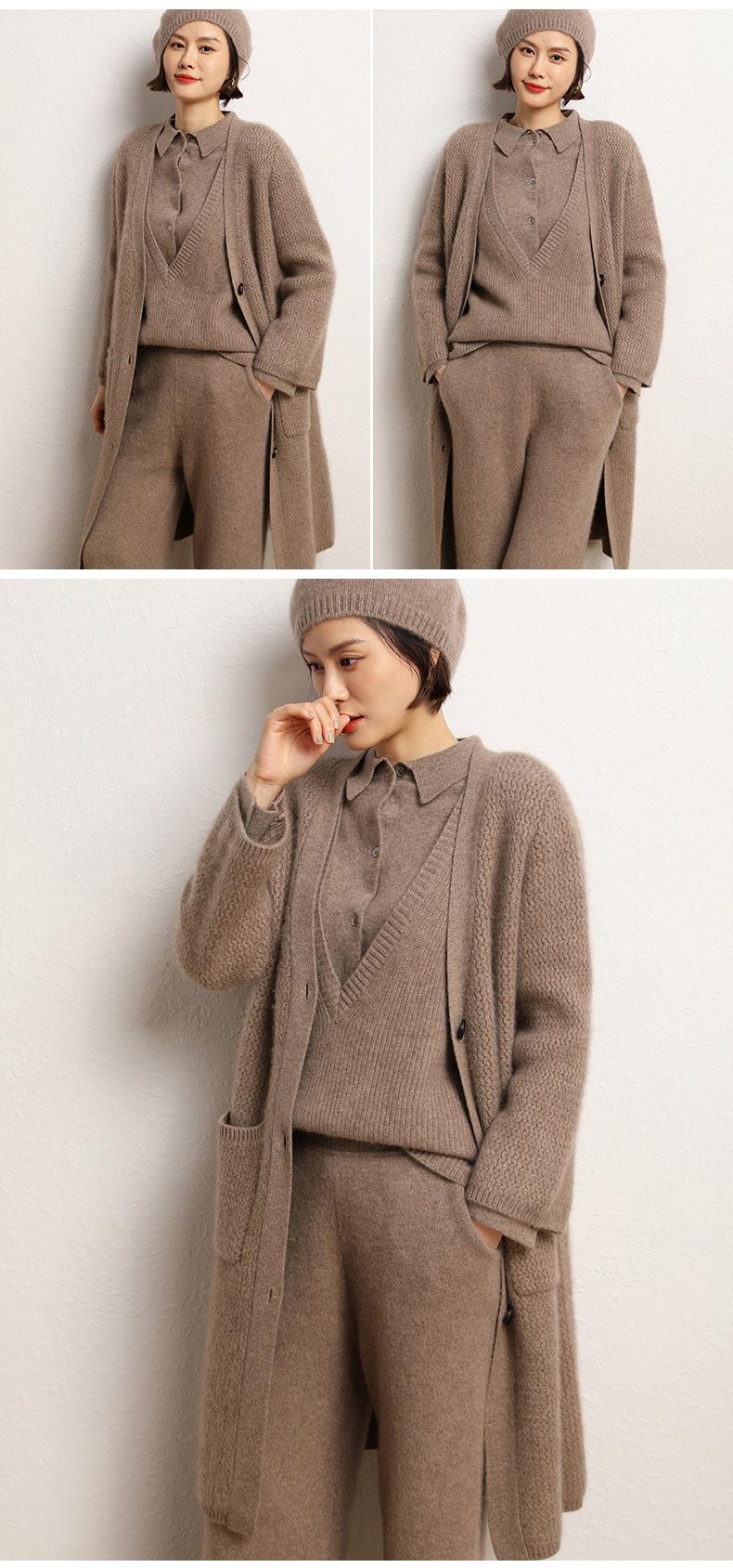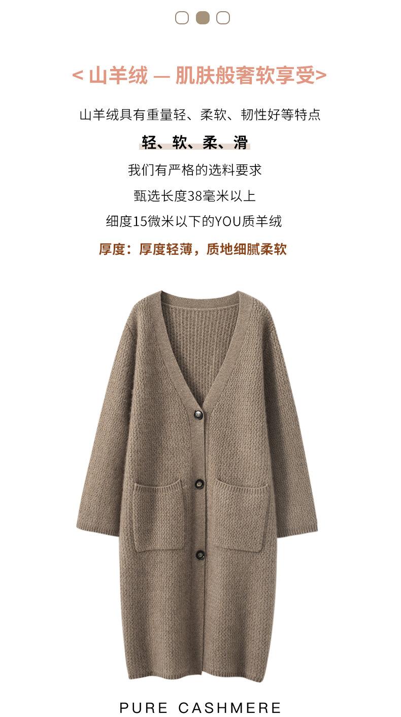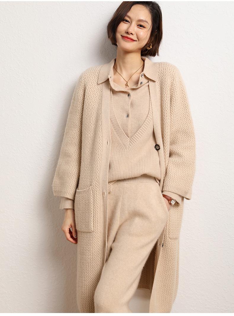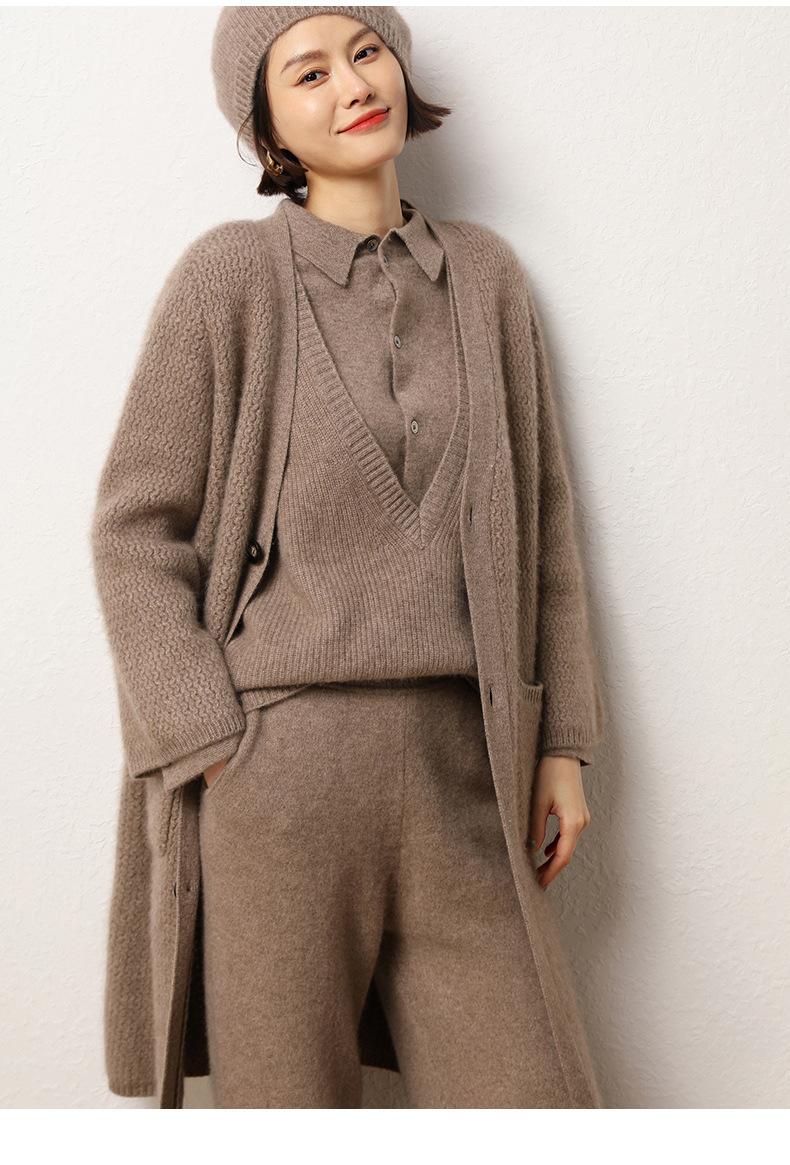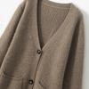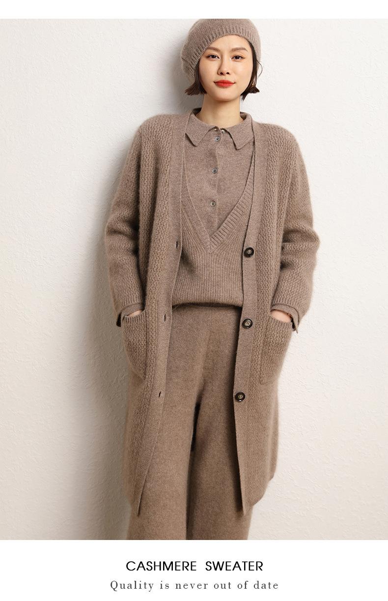 Cachmere Nueva Chaqueta de Punto Largo Medio para Mujer Cuello en V Hombro Pesado Versátil Doble Cara Cachmere Ropa Exterior con Diseño Moderno