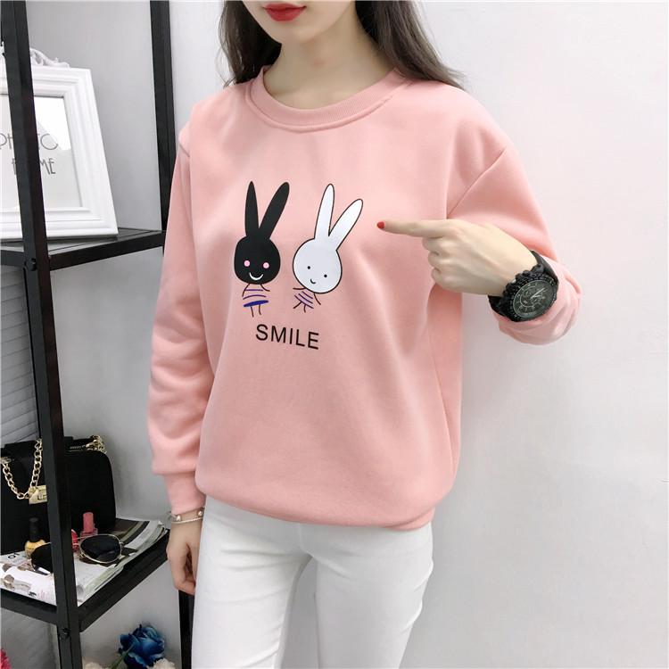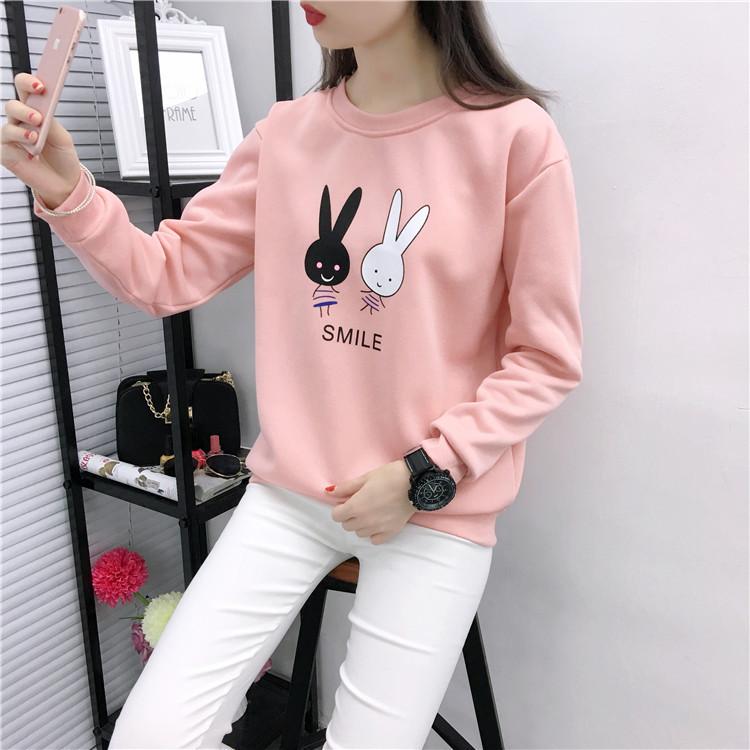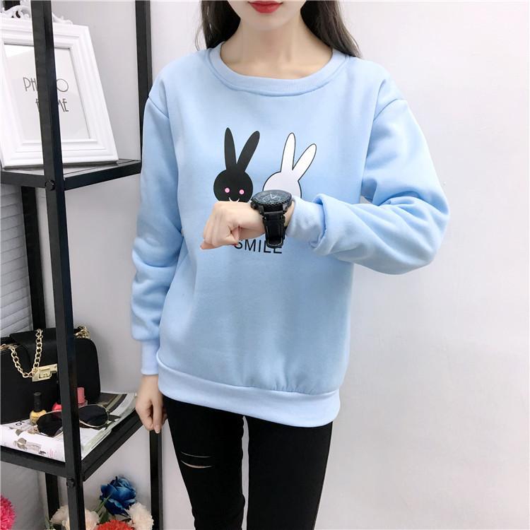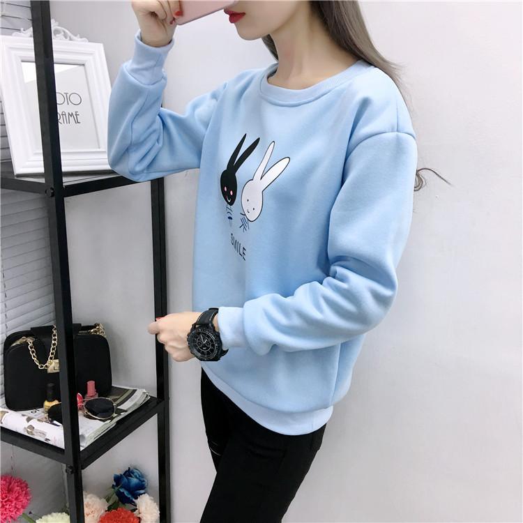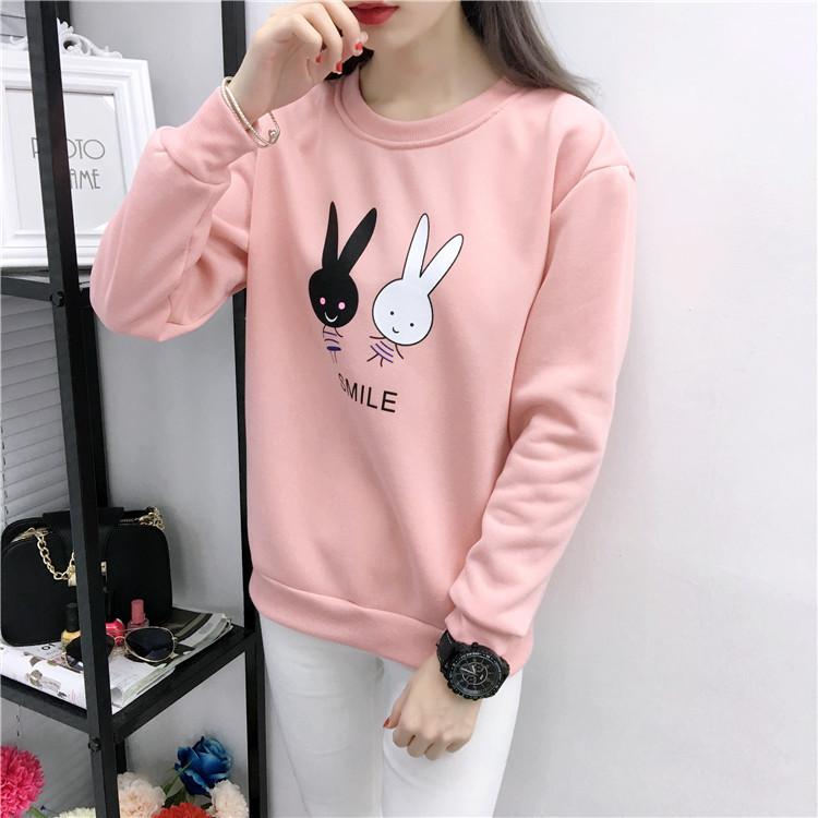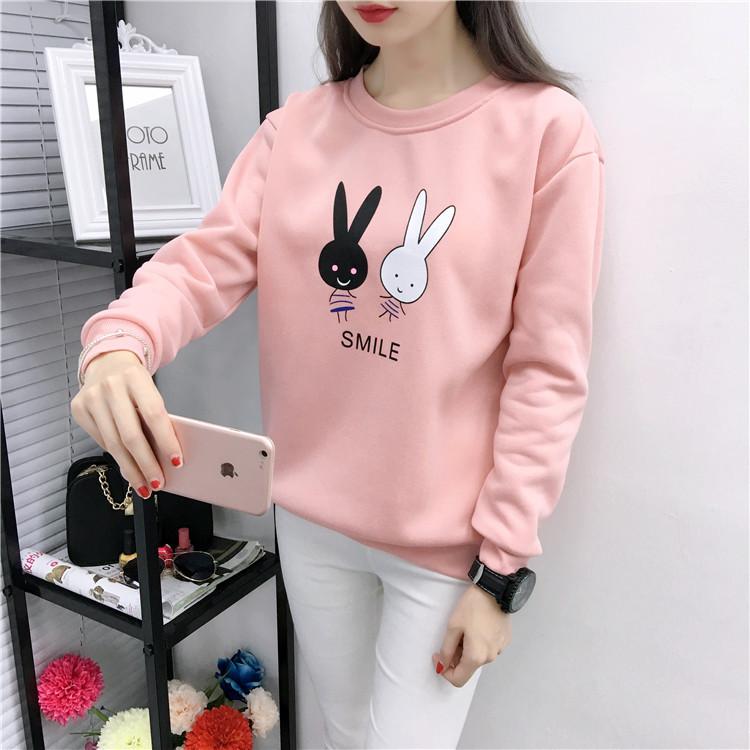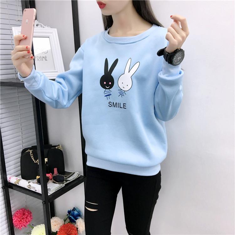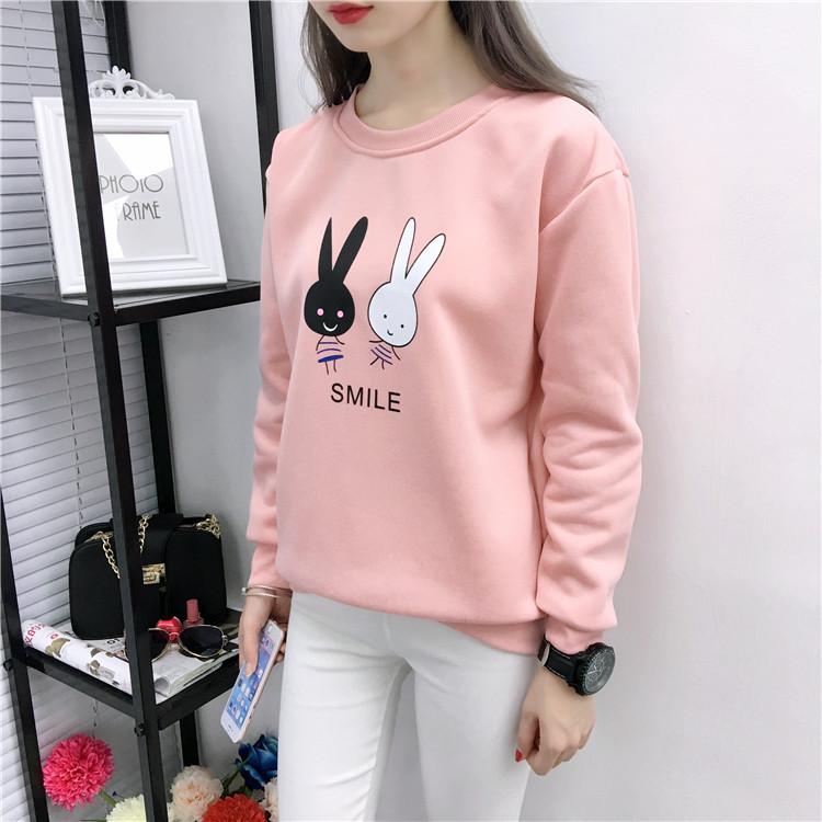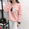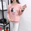 2025 Nuevo Estilo Coreano Suelto Dibujo Animado Conejo Otoño e Invierno Cuello Redondo Sudadera de Manga Larga para Mujer Gruesa y con Forro Polar para Mujer