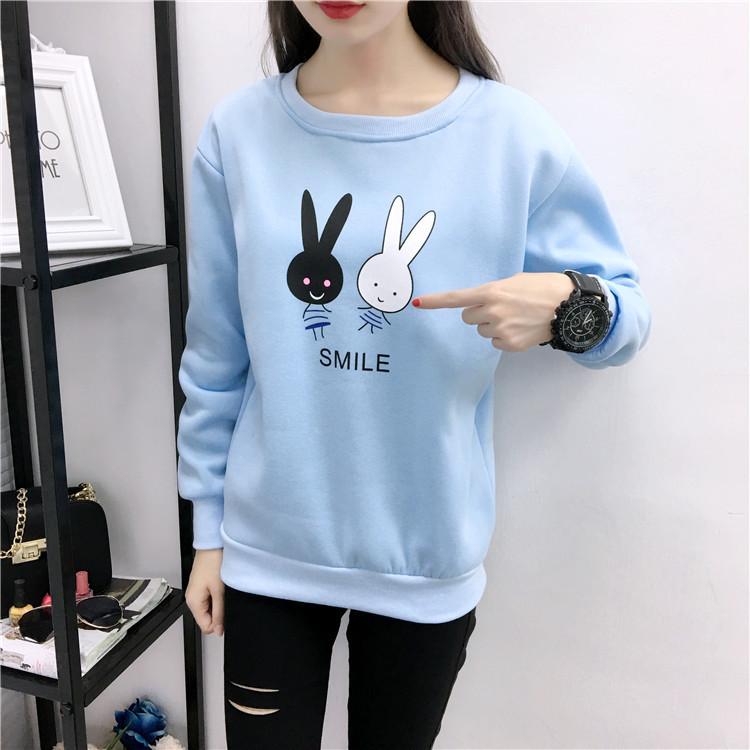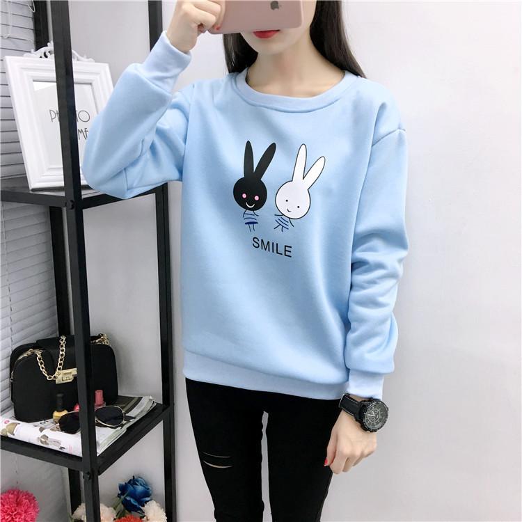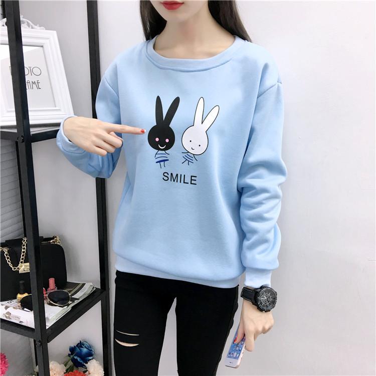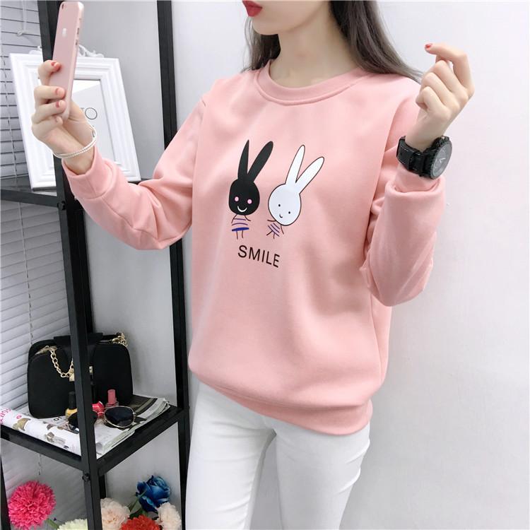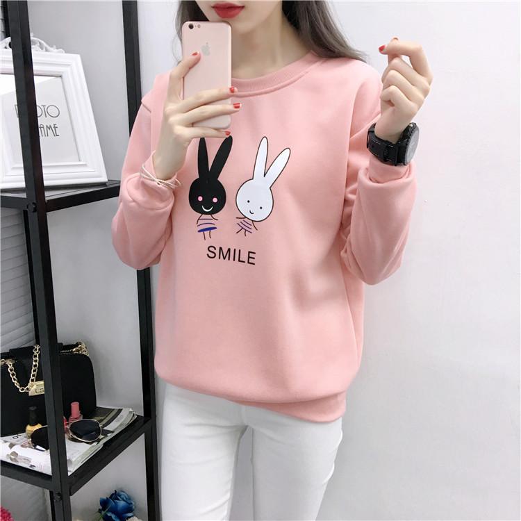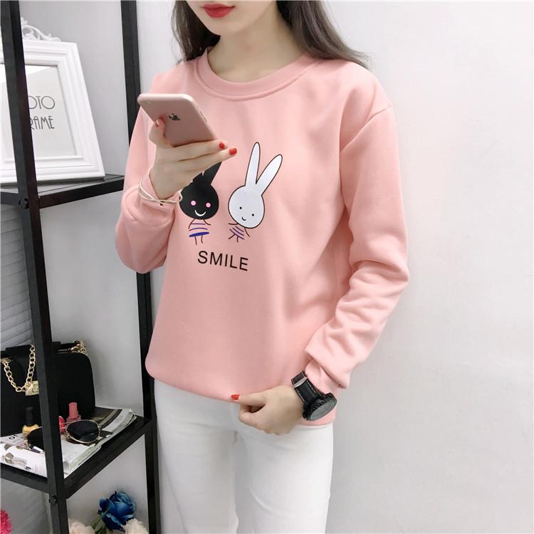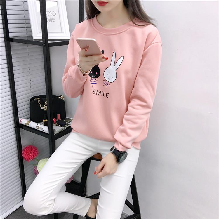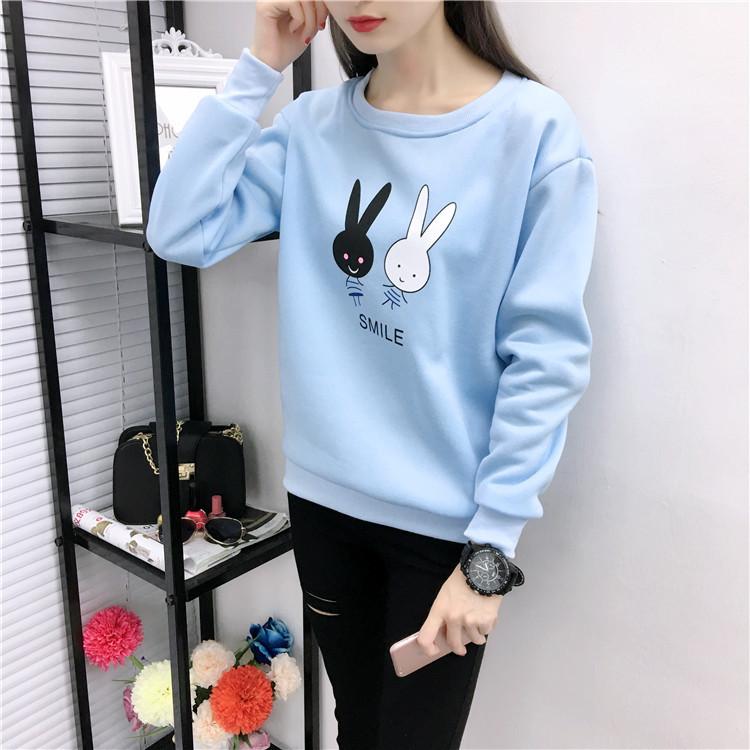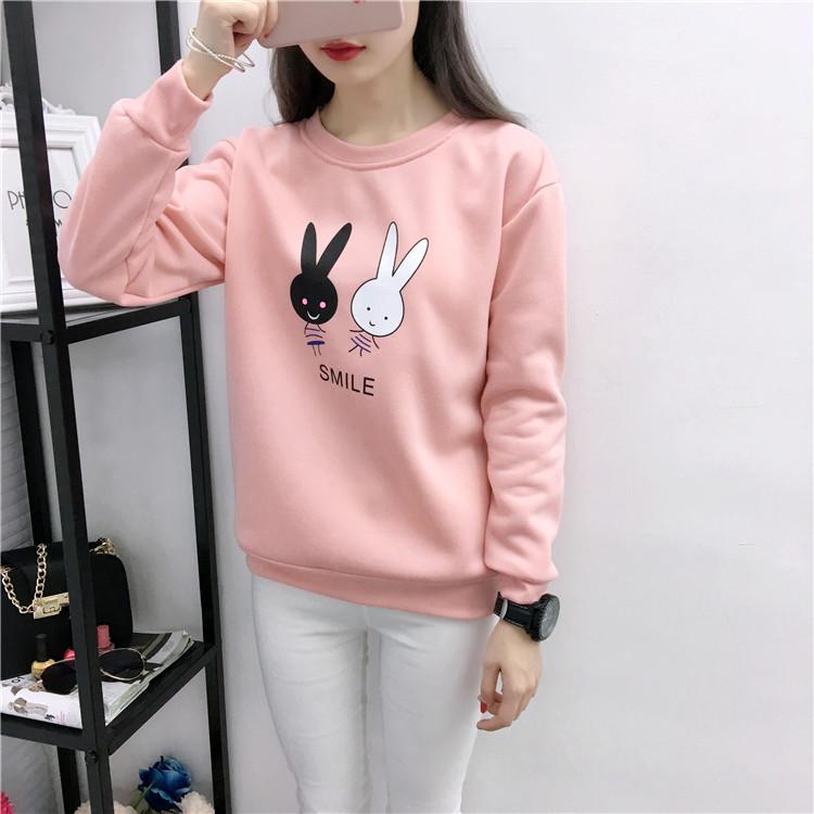 2025 Nuevo Estilo Coreano Suelto Dibujo Animado Conejo Otoño e Invierno Cuello Redondo Sudadera de Manga Larga para Mujer Gruesa y con Forro Polar para Mujer