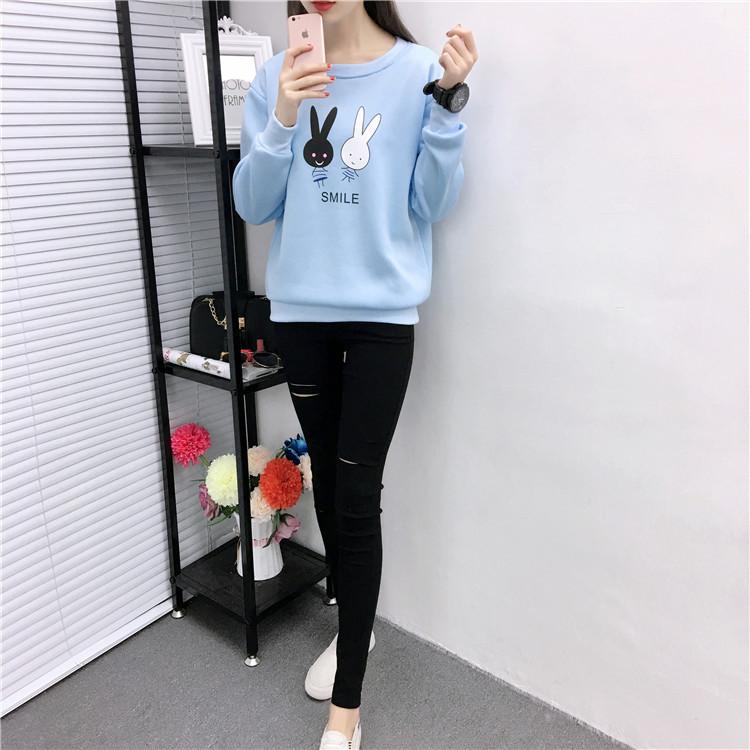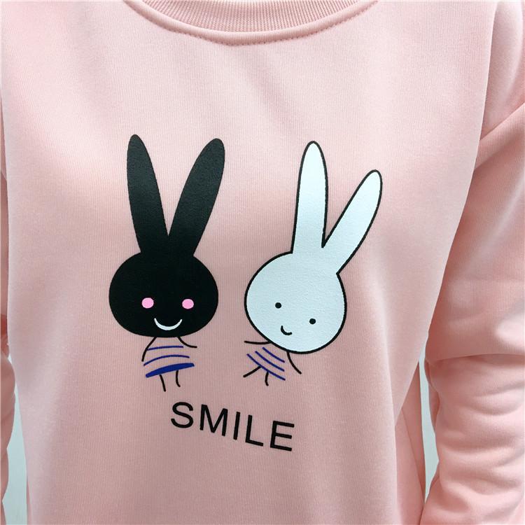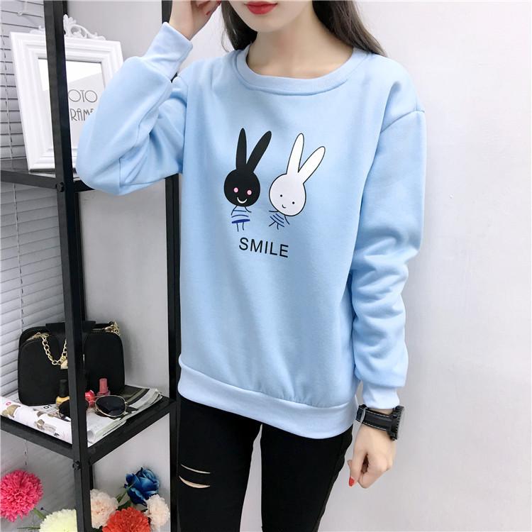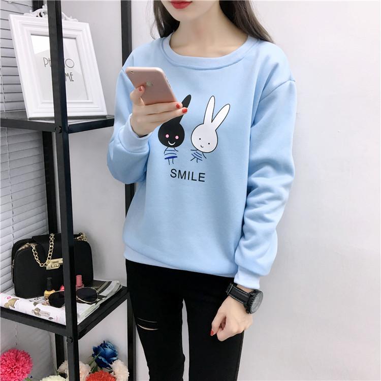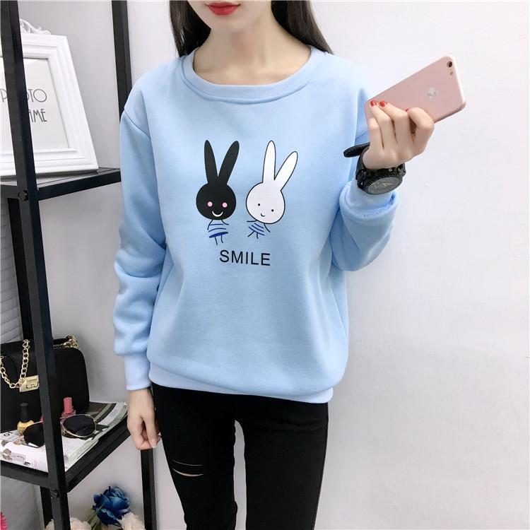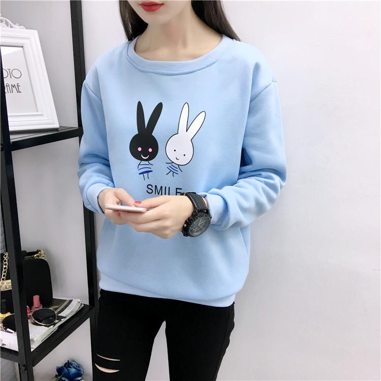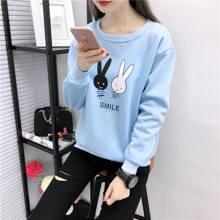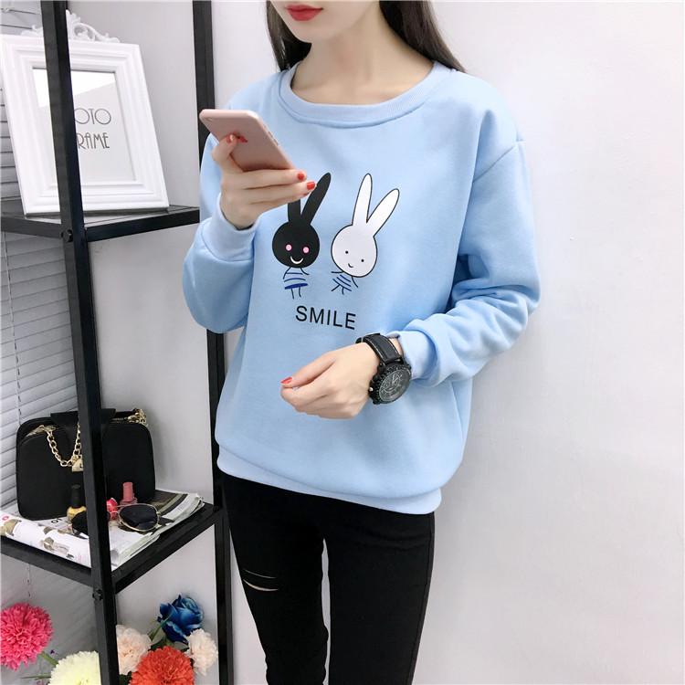 2025 Nuevo Estilo Coreano Suelto Dibujo Animado Conejo Otoño e Invierno Cuello Redondo Sudadera de Manga Larga para Mujer Gruesa y con Forro Polar para Mujer