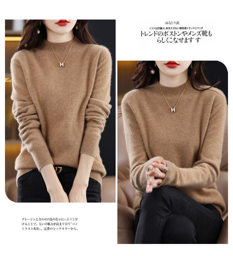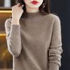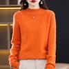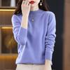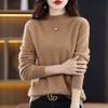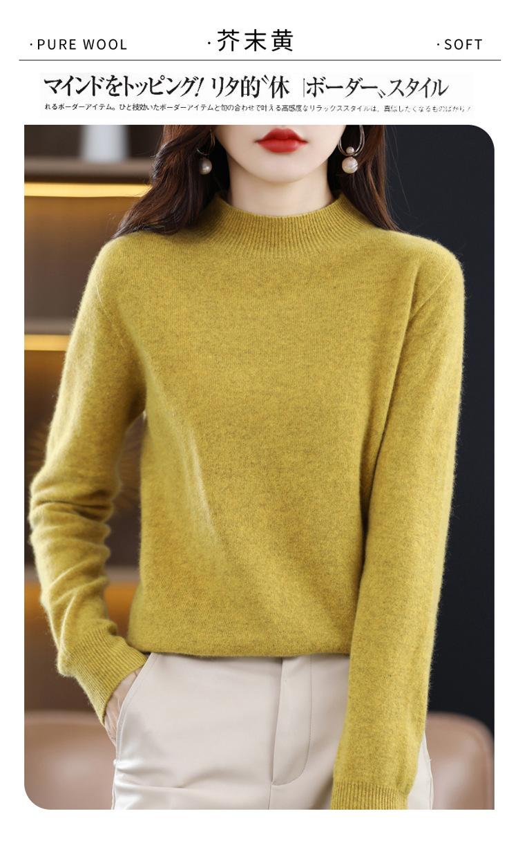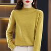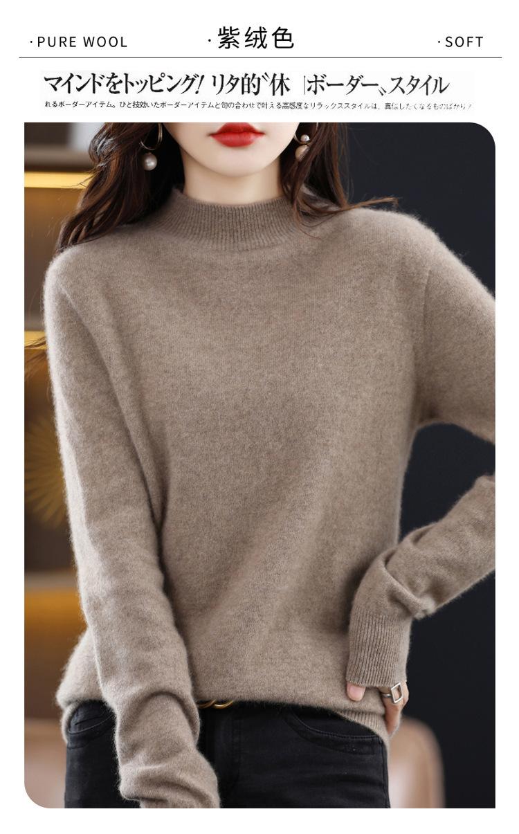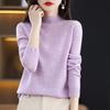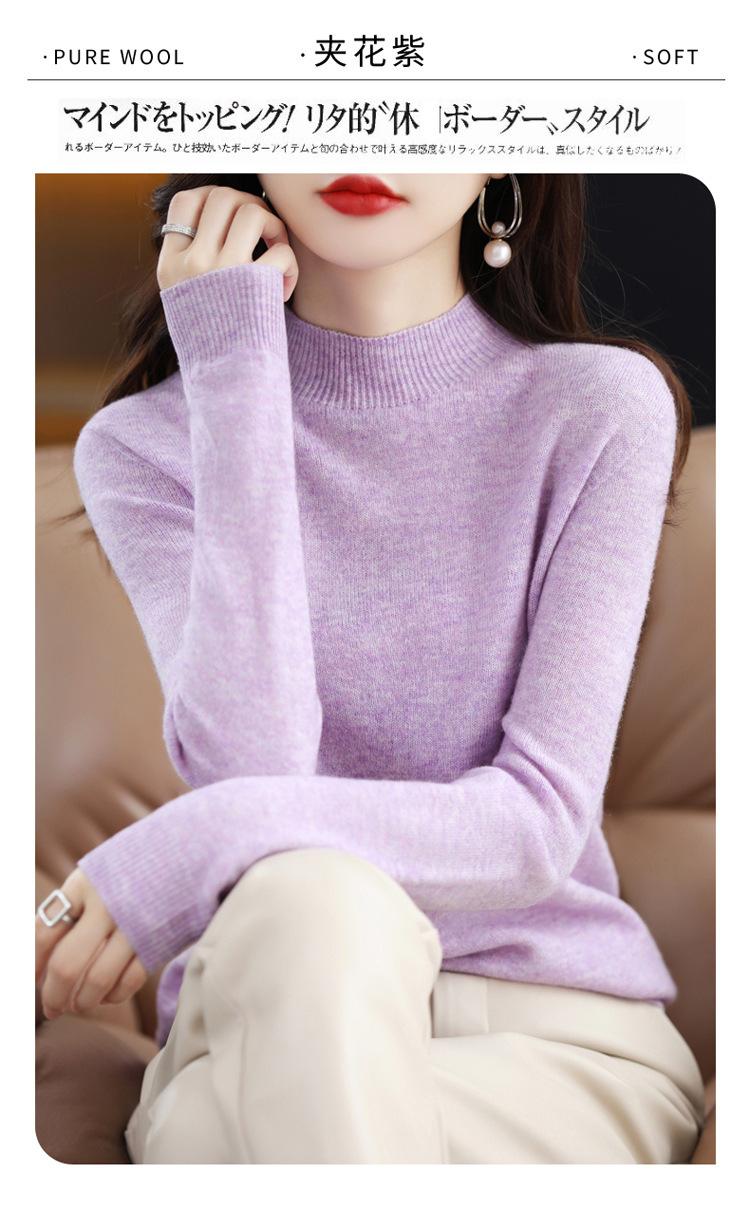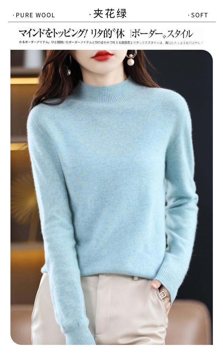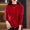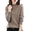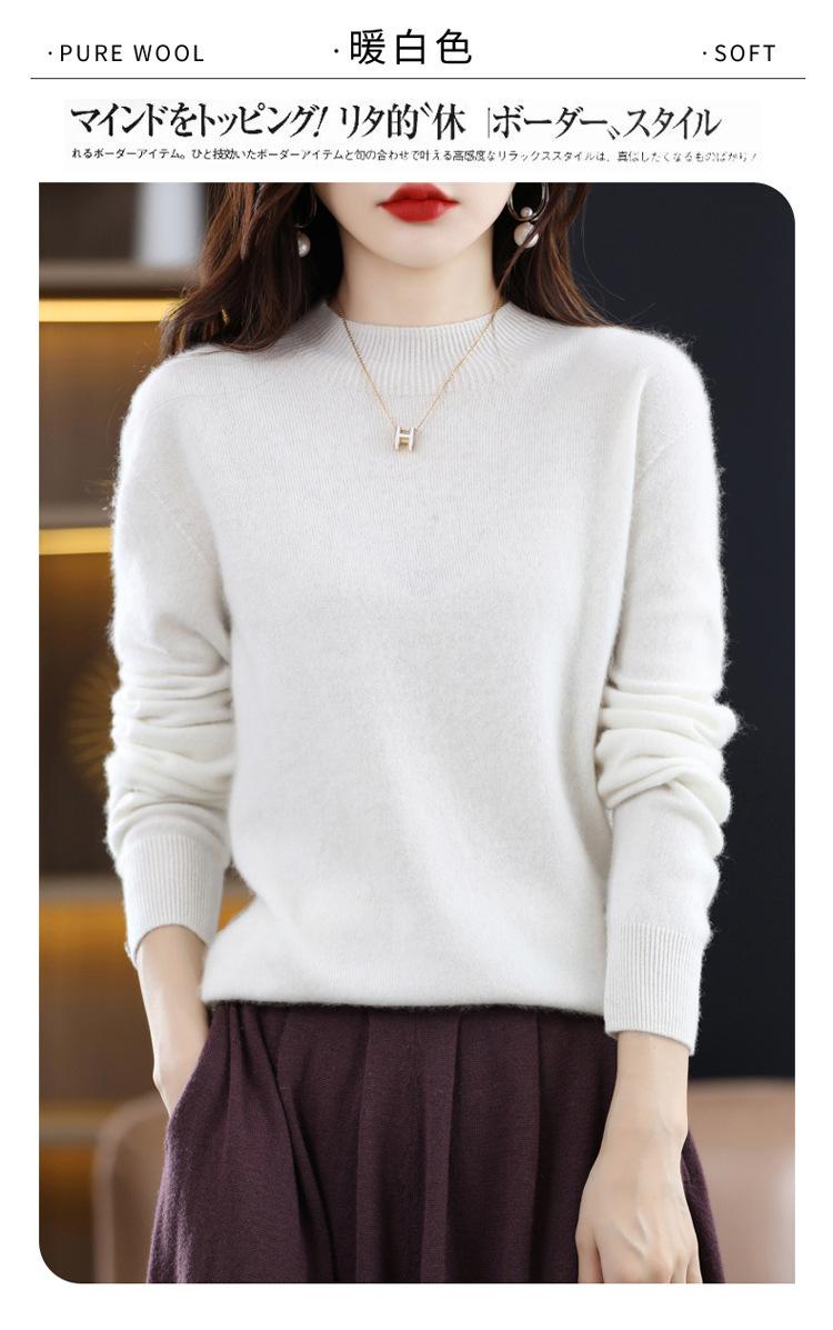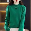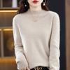 Suéter de lana merino confeccionado en una sola línea, cuello alto simulado, color liso, manga larga, camisa de punto, suéter suelto y sencillo.
