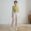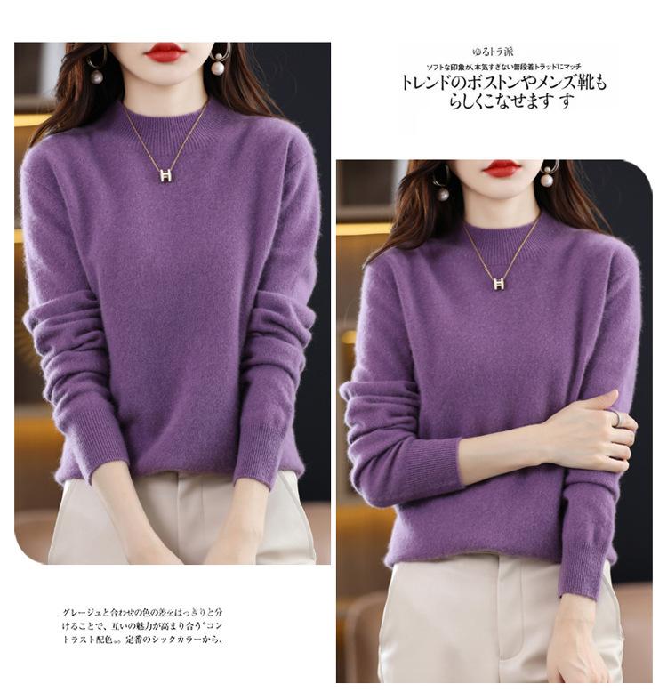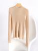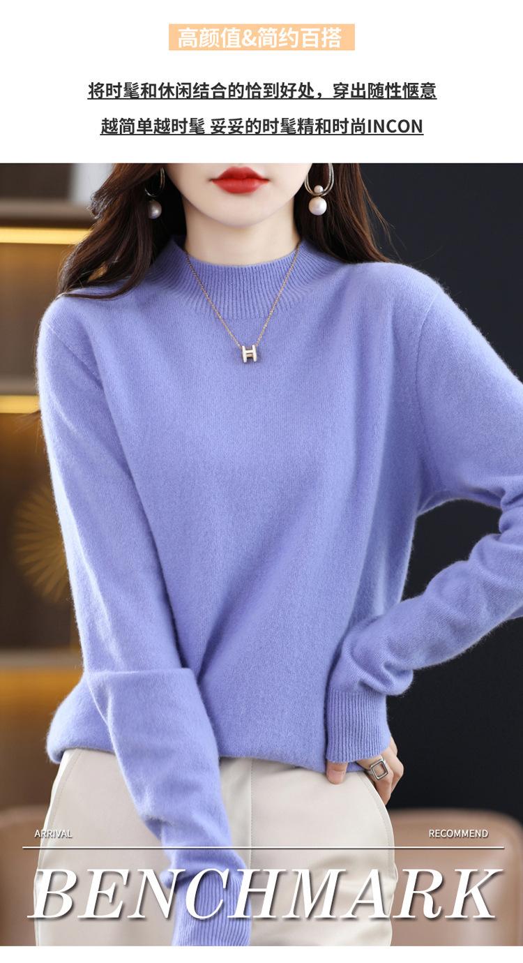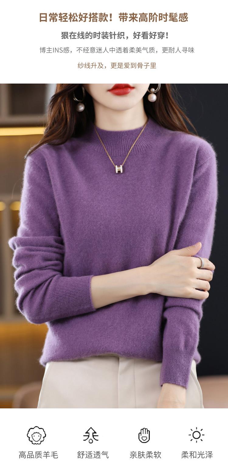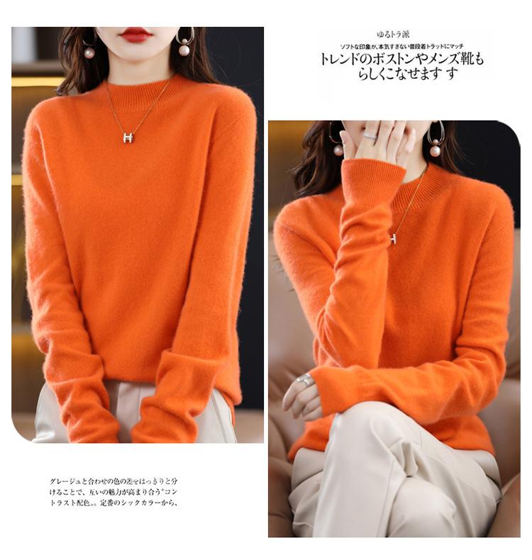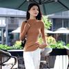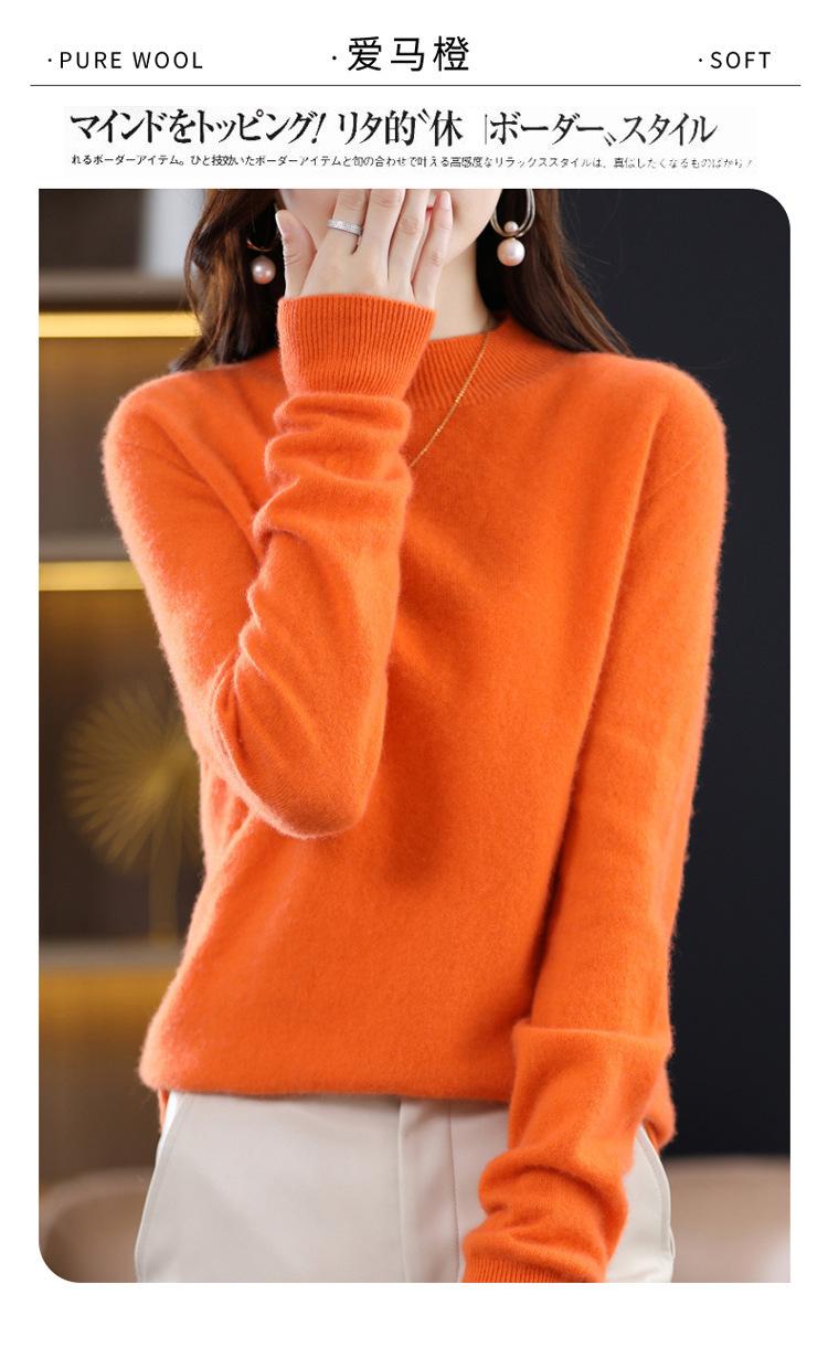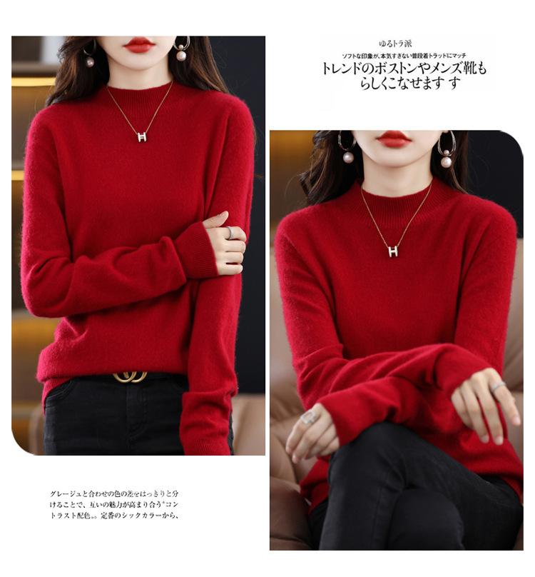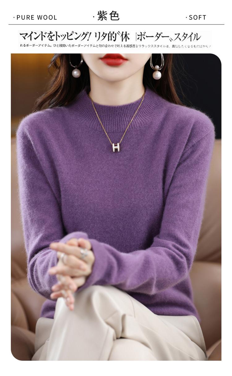Suéter de lana merino confeccionado en una sola línea, cuello alto simulado, color liso, manga larga, camisa de punto, suéter suelto y sencillo.