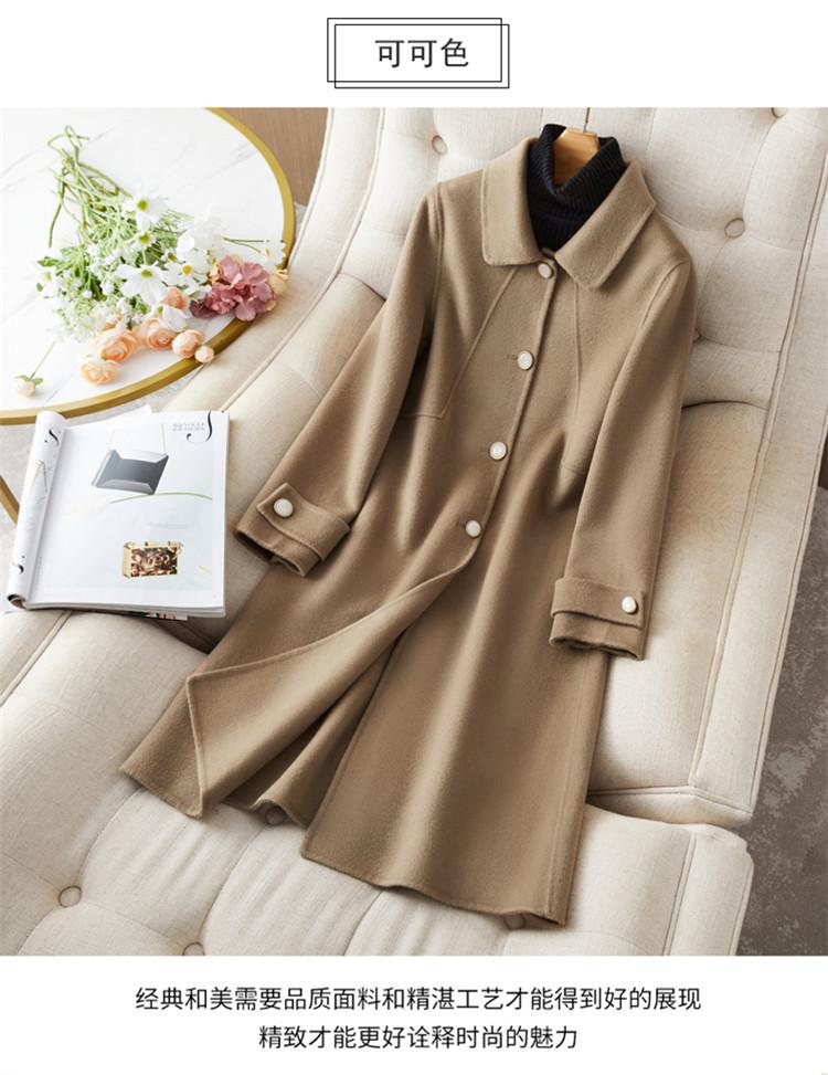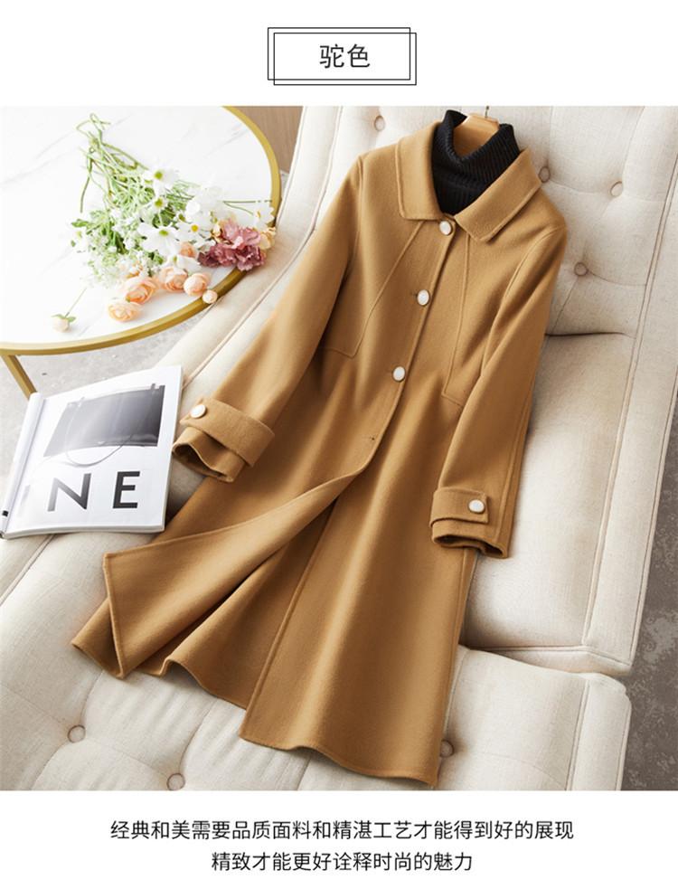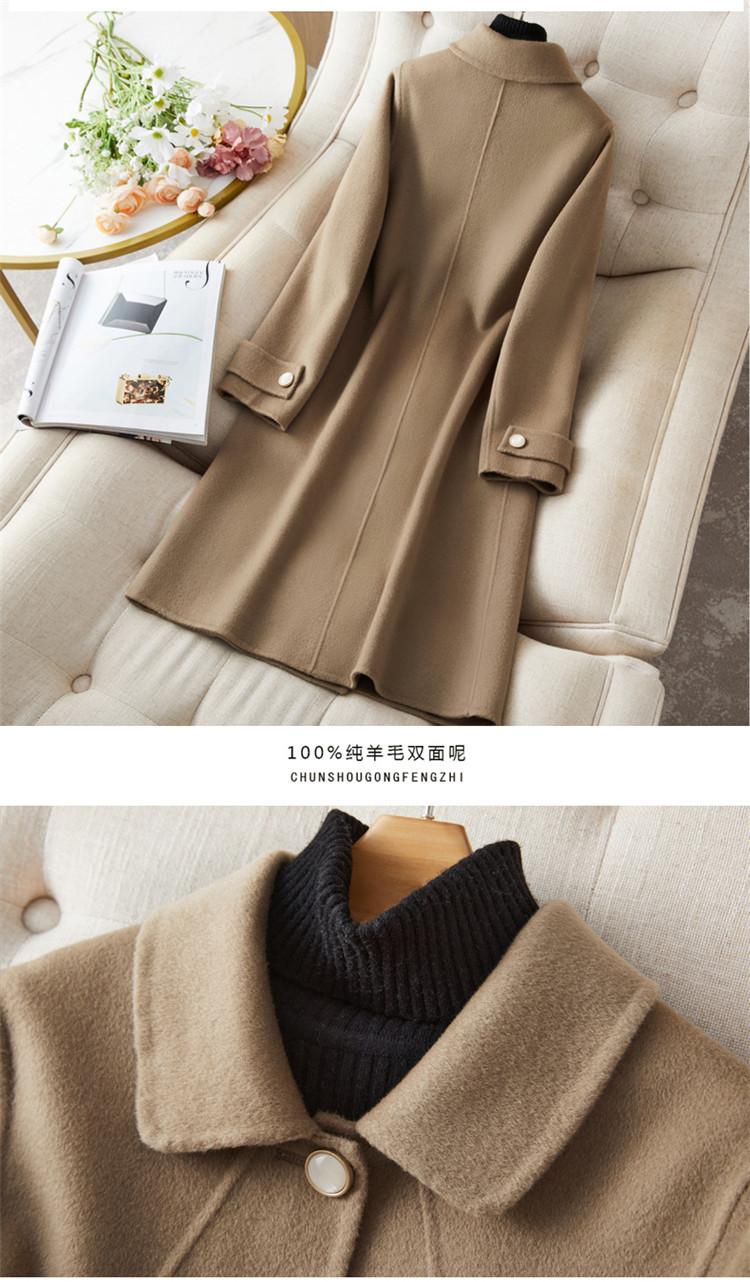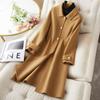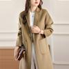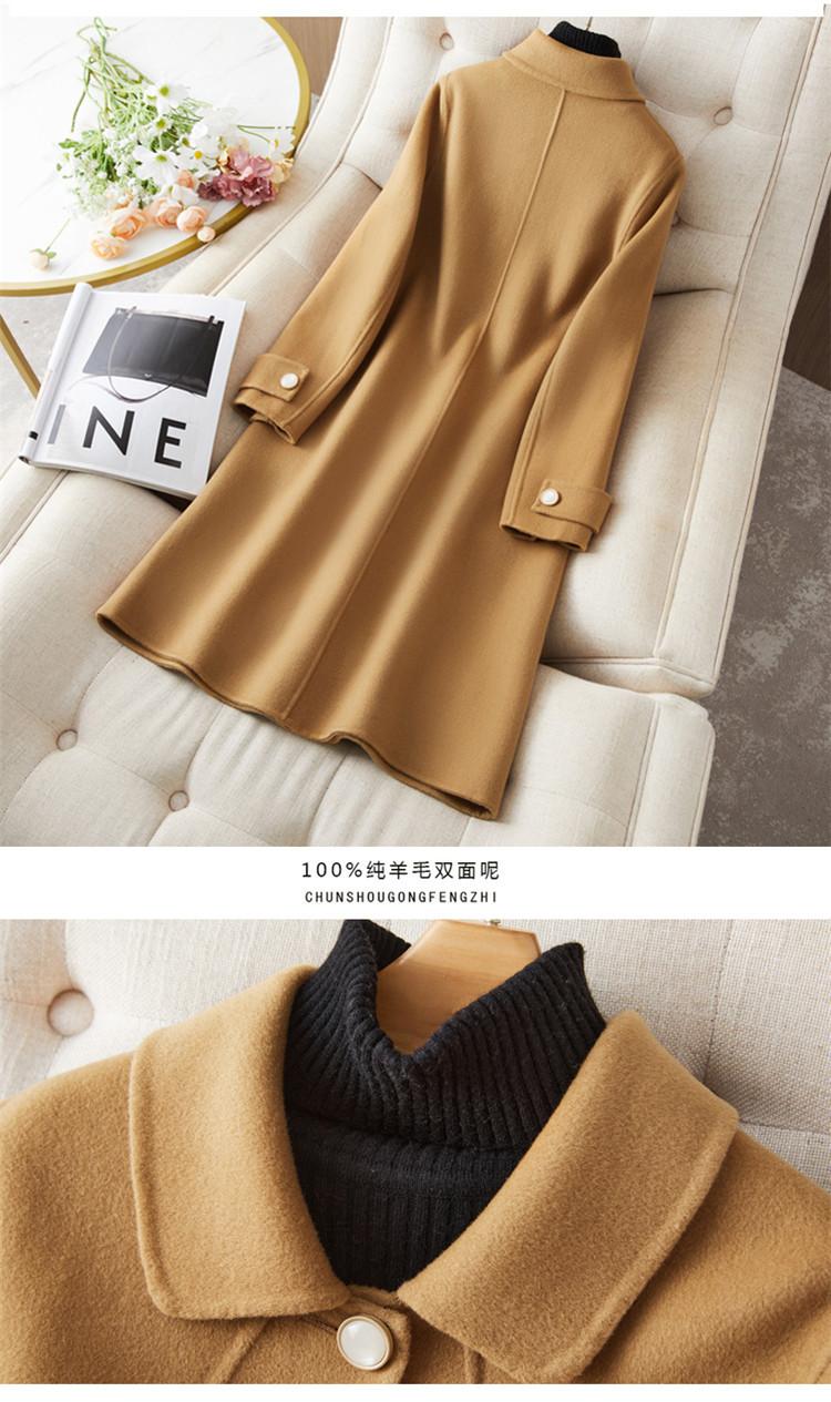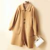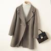 Abrigo de lana de doble cara para mujer, estilo coreano, otoño e invierno, cuello de traje de lana pura, longitud media, 2023