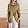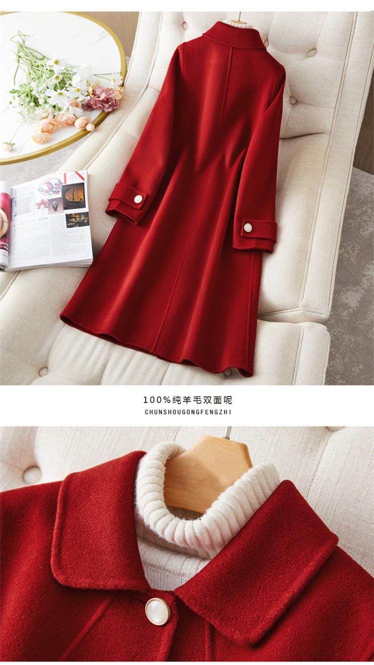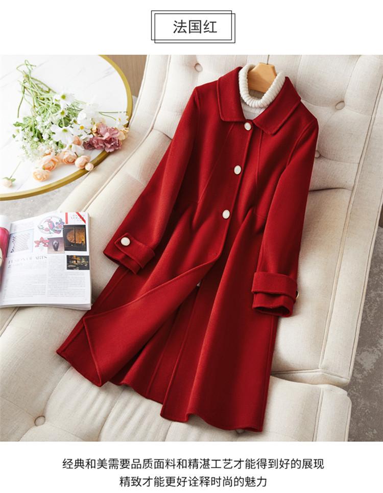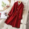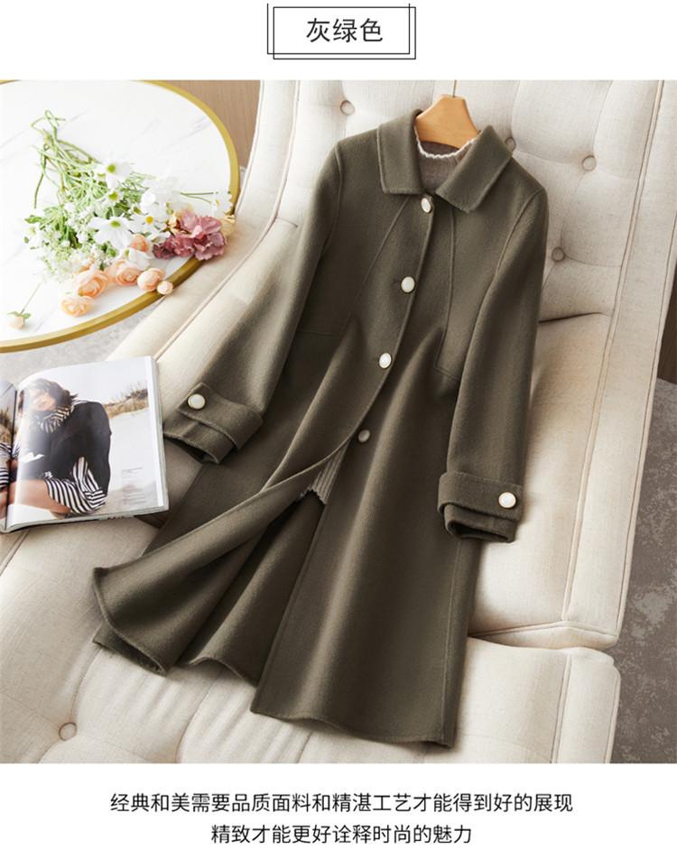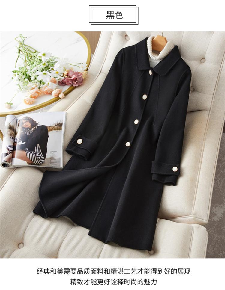 Abrigo de lana de doble cara para mujer, estilo coreano, otoño e invierno, cuello de traje de lana pura, longitud media, 2023