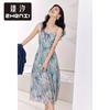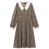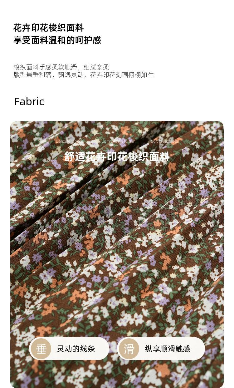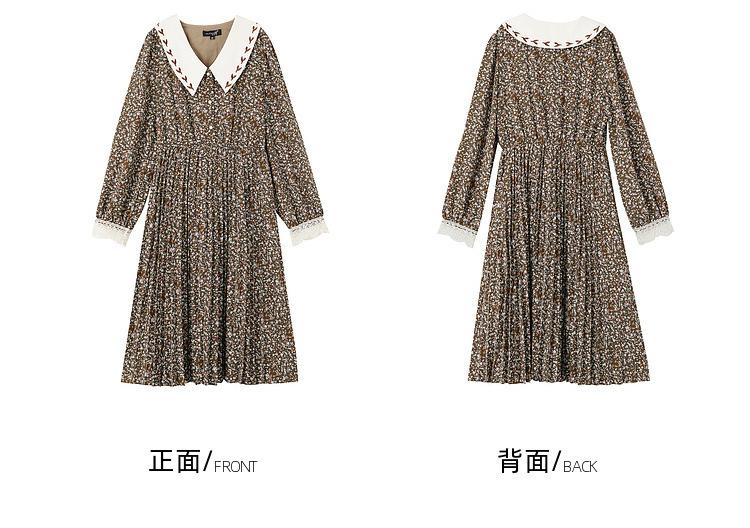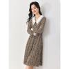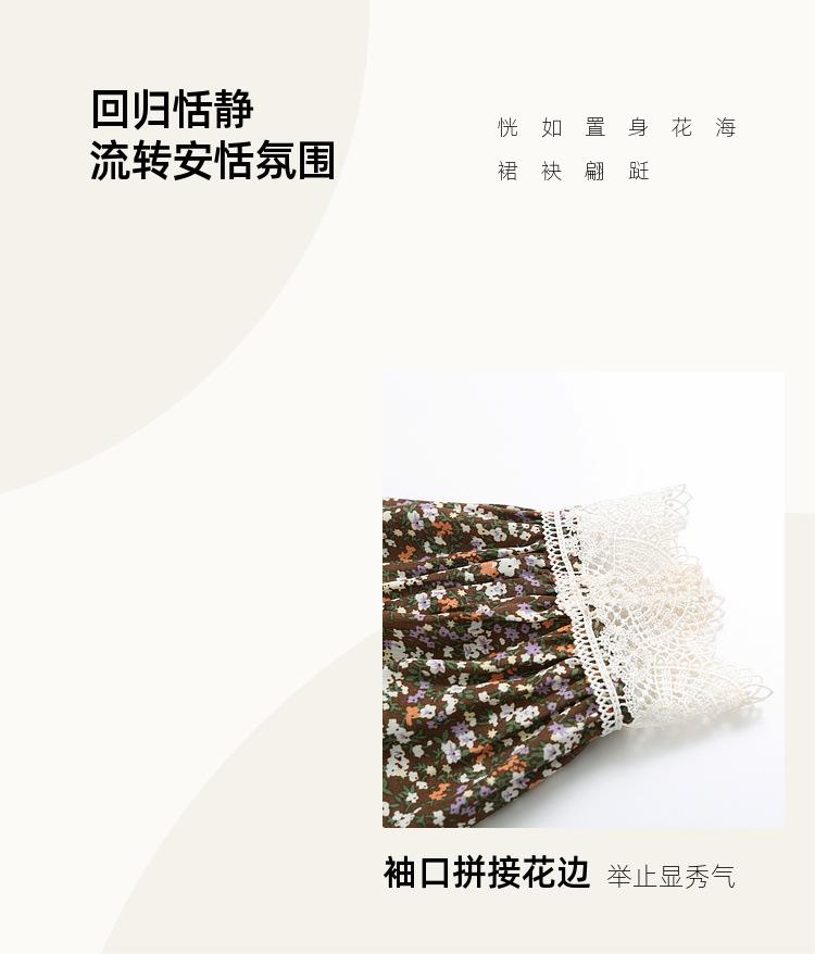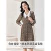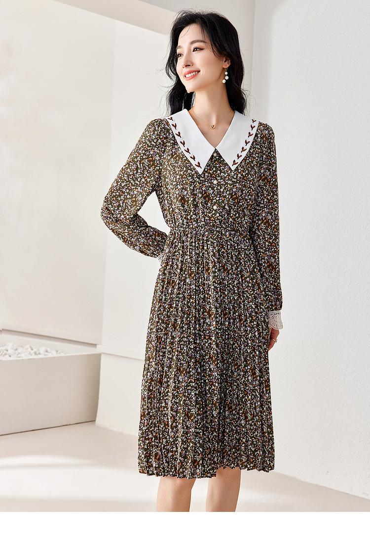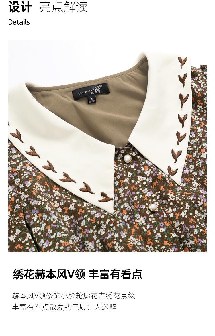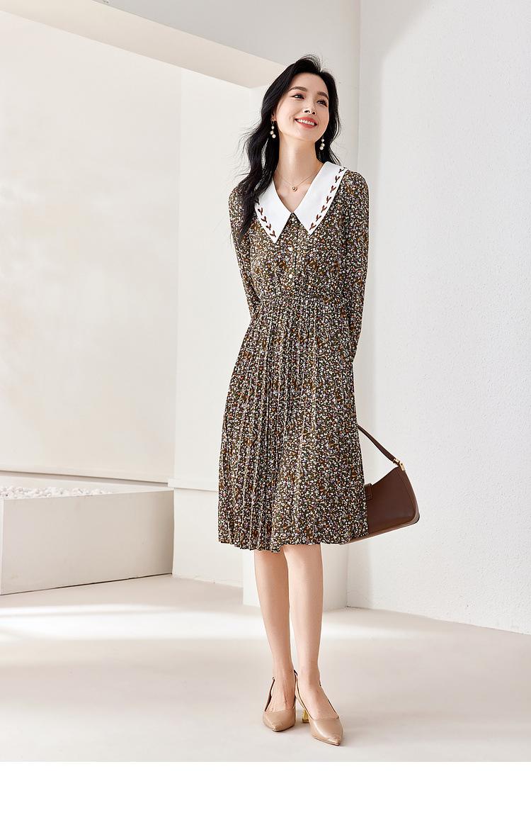 Zhenqi - Vestido estilo Hepburn con escote en V y estampado floral pequeño para mujer, cintura ajustada, manga larga, falda plisada adelgazante DE913
