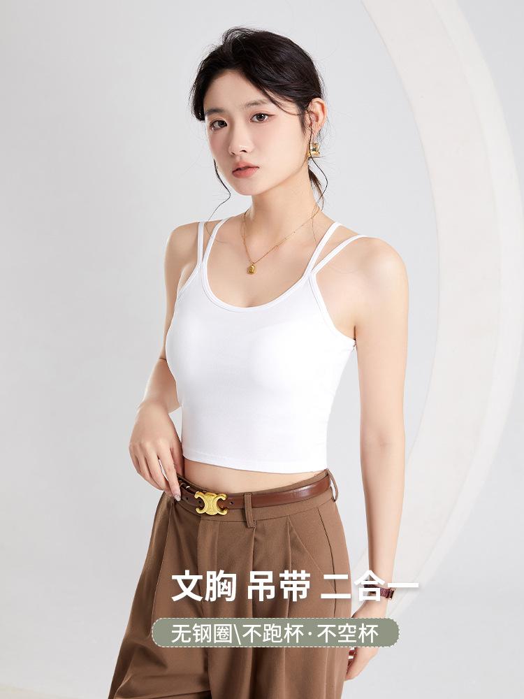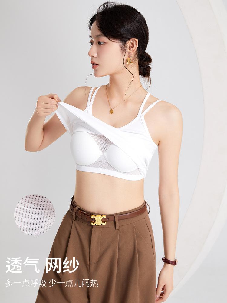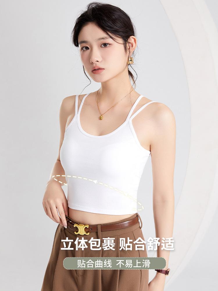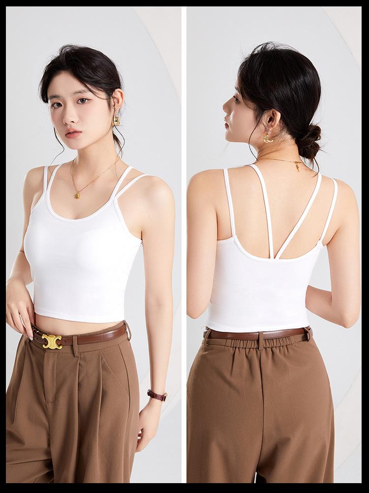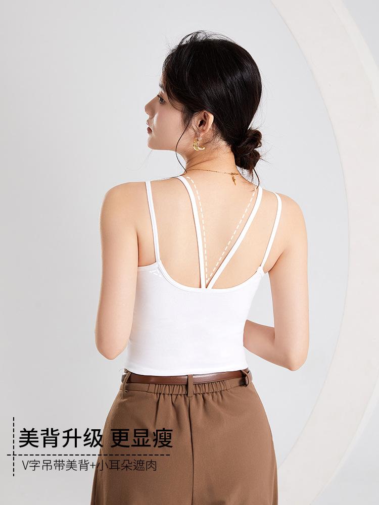 Chaleco de tirantes con almohadilla en el pecho, espalda bonita, ropa interior para mujer, nuevo de primavera y verano 2024, anti-exposición, se puede usar como prenda exterior, top de ropa interior con espalda bonita