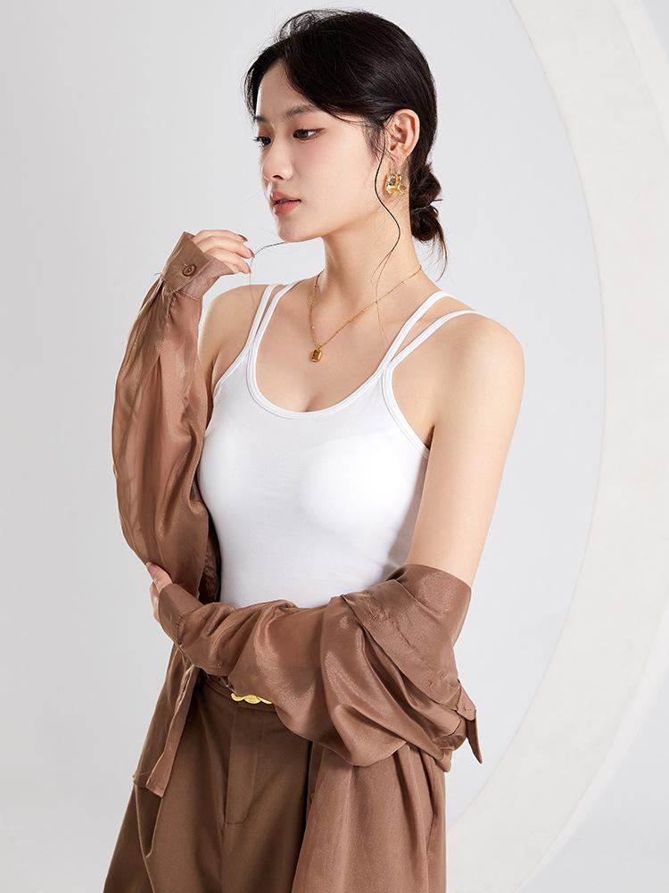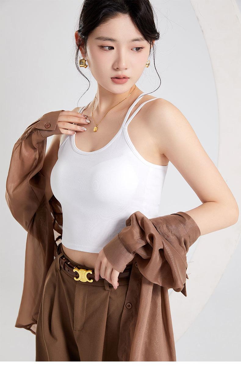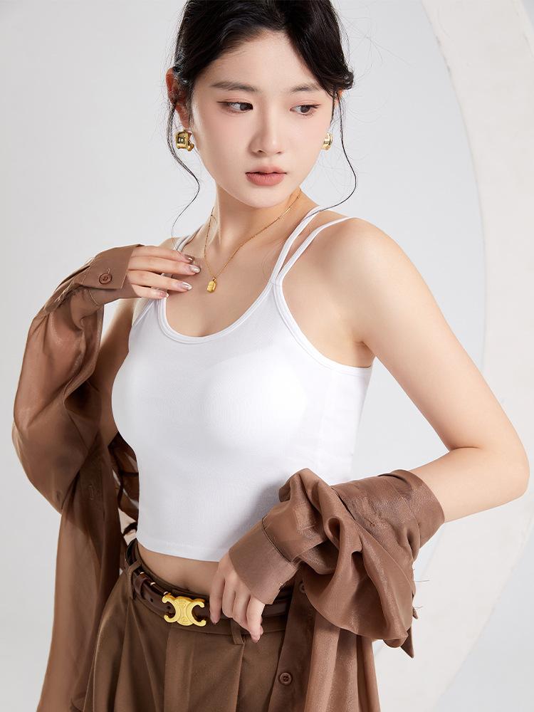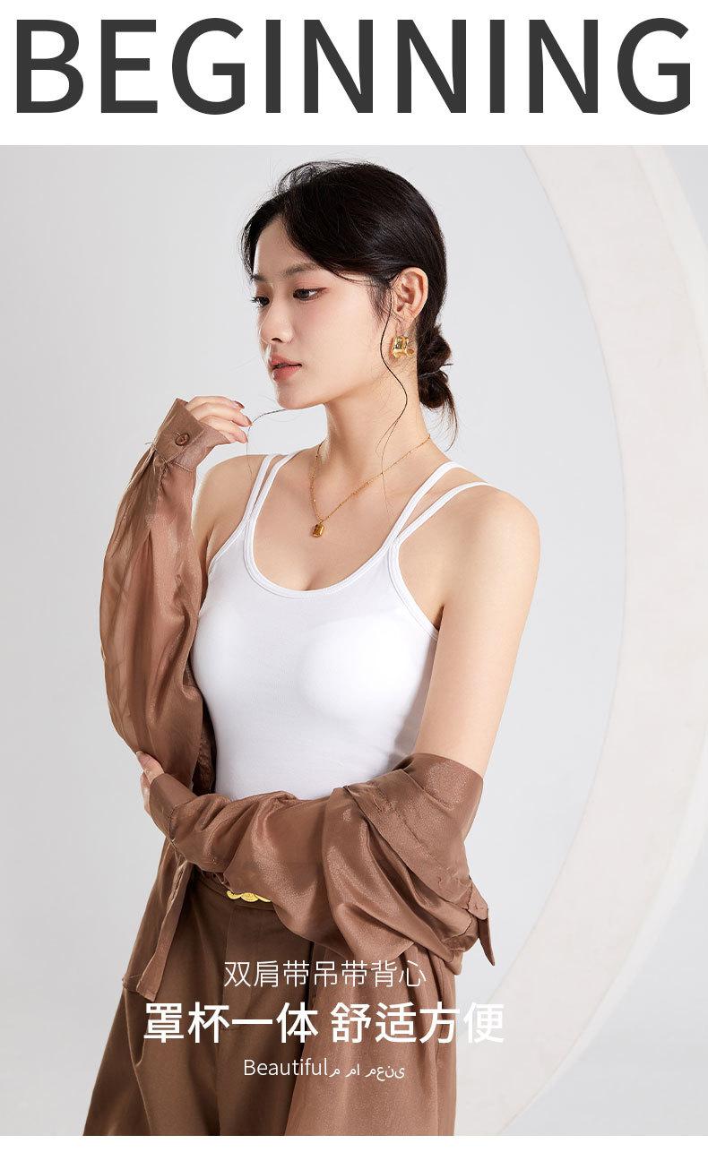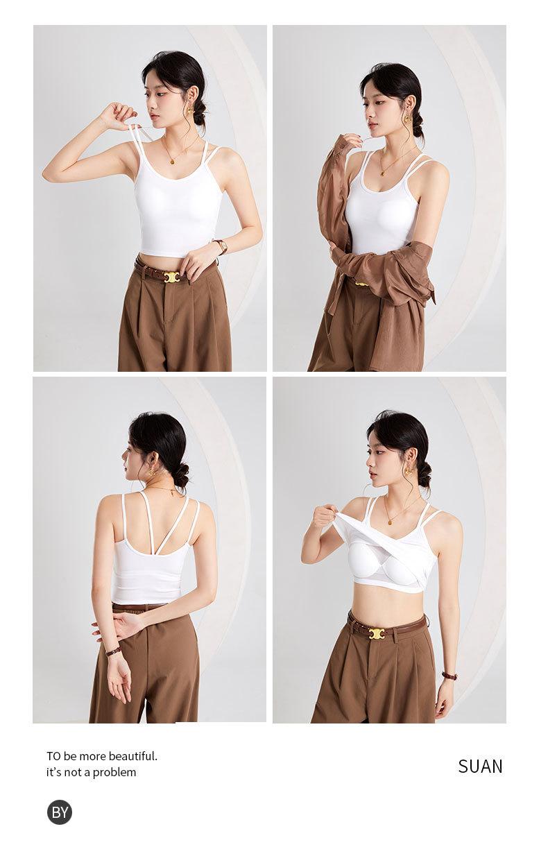 Chaleco de tirantes con almohadilla en el pecho, espalda bonita, ropa interior para mujer, nuevo de primavera y verano 2024, anti-exposición, se puede usar como prenda exterior, top de ropa interior con espalda bonita