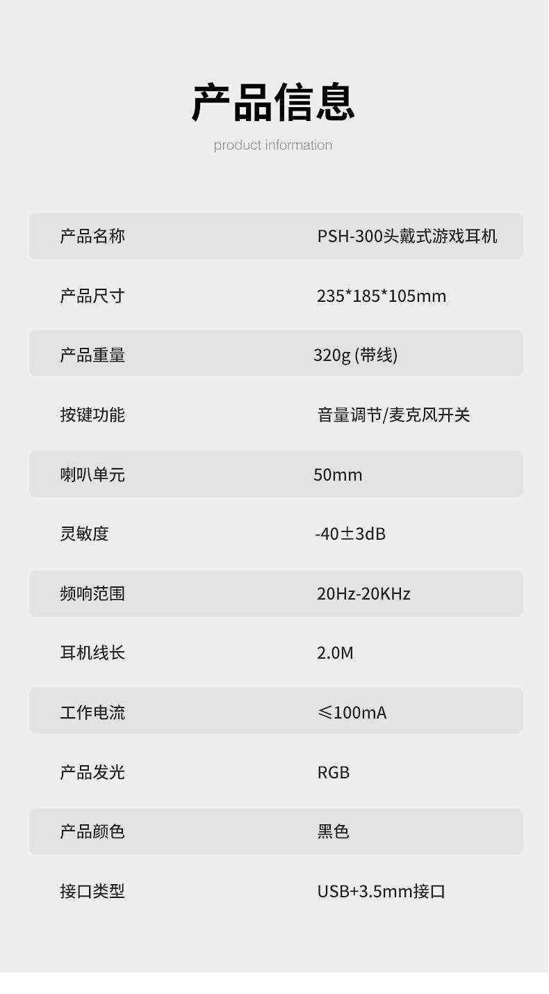 PSH-300 black 3.5mm plug RGB version, PSH-300 black 7.1 single USB version, PSH-300S black 3.5mm plug glare ve...