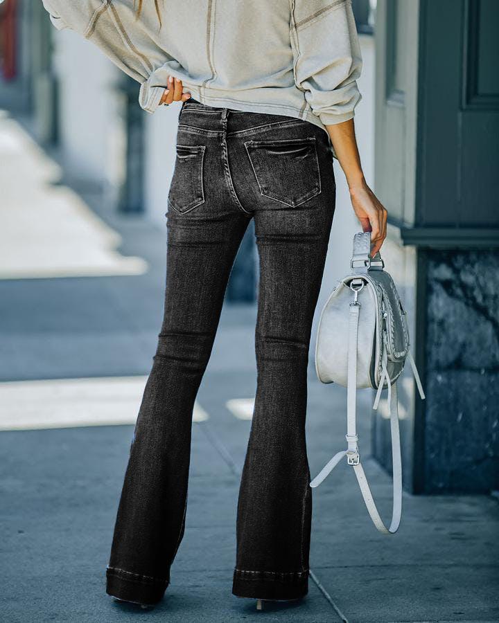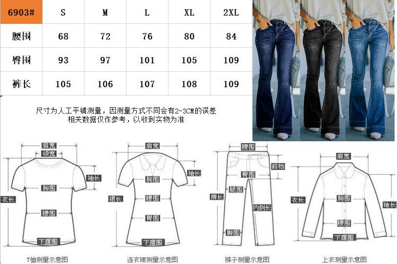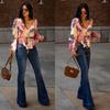 Jeans de Mujer Multicolor Otoño 2022 Europeos y Americanos Transfronterizos Retro Cintura Alta Elásticos Acampanados Adelgazantes Moda Versátiles