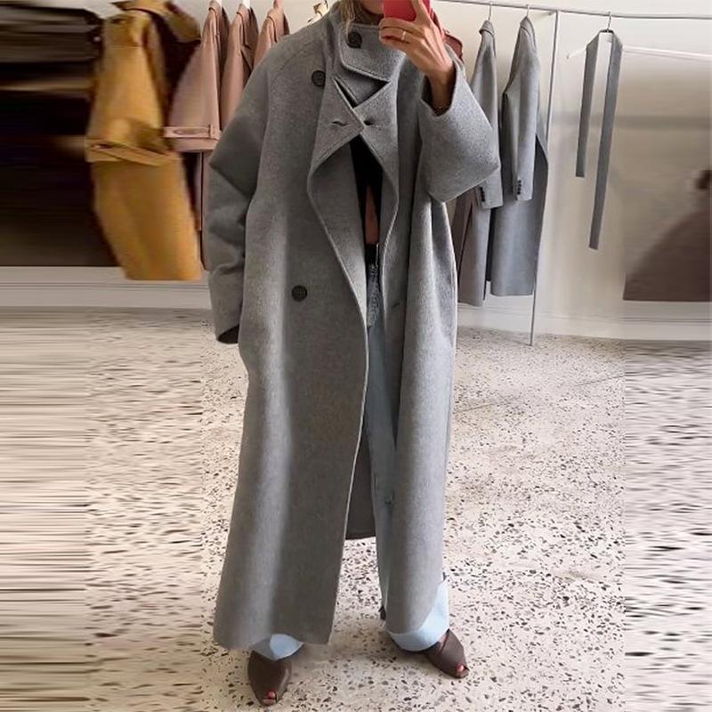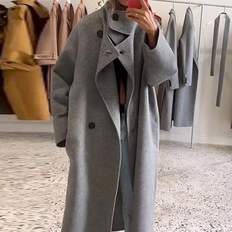 Abrigo de lana informal holgado con solapa y barra de gritos de color sólido transfronterizo de Amazon de Europa y América de otoño e invierno de 2023
