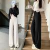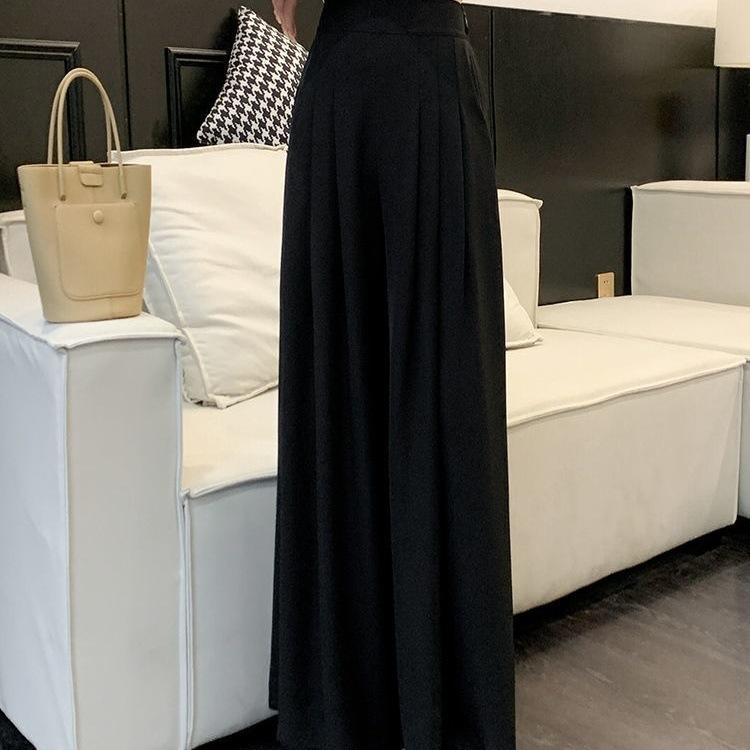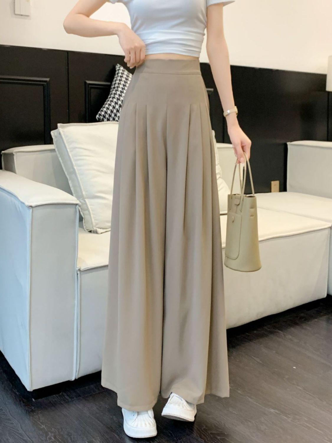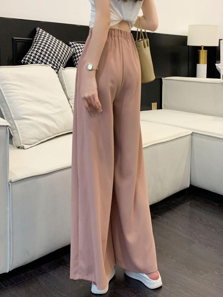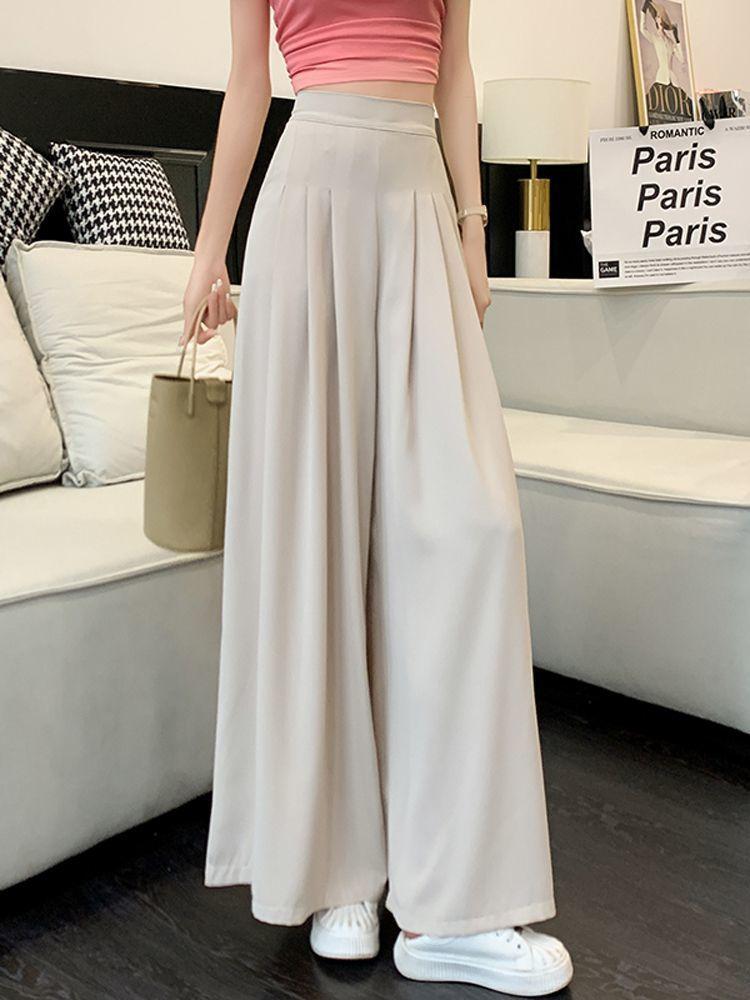 Pantalones rosas de pierna ancha para mujer Primavera y Otoño Delgados 2025 Nuevo Cintura alta Drapeados Look Adelgazante Figura de Pera Casuales Pantalones para Barrer el Piso