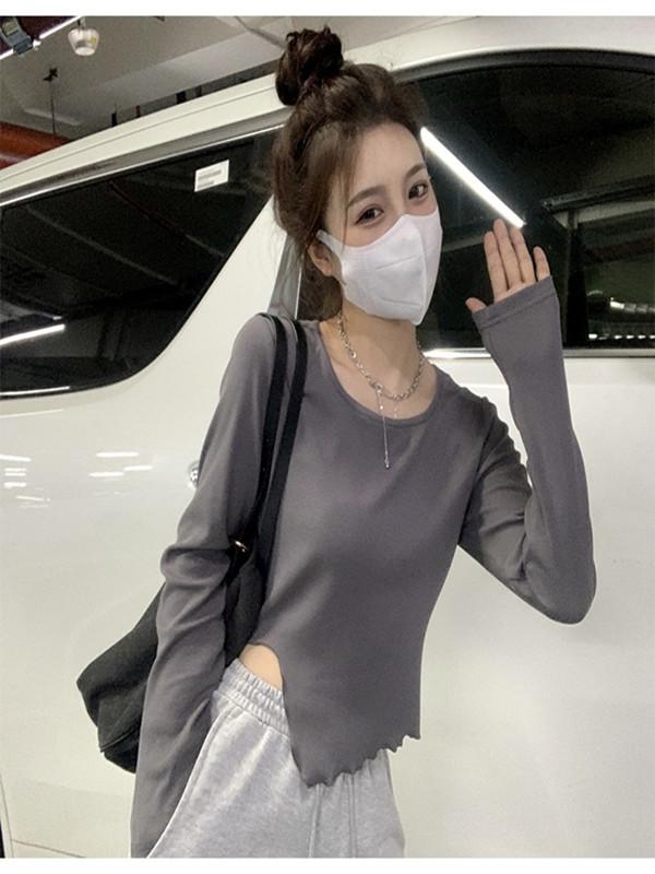 Camiseta de Manga Larga para Mujer Primavera Nueva Estilo Coreano Nicho Asimétrica Capa Interior Camisa Estudiante Slim Versátil Top para Chica