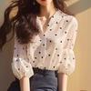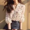 Camisa de gasa de verano para mujer, estilo occidental, fina, de alta gama, ligera, madura, con lunares blancos y ondas, estilo francés nicho