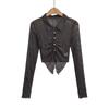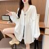 Ropa de verano nueva para mujer europea y americana, moda de malla retro, protector solar, camisa holgada, cárdigan, top C74255