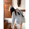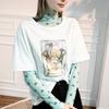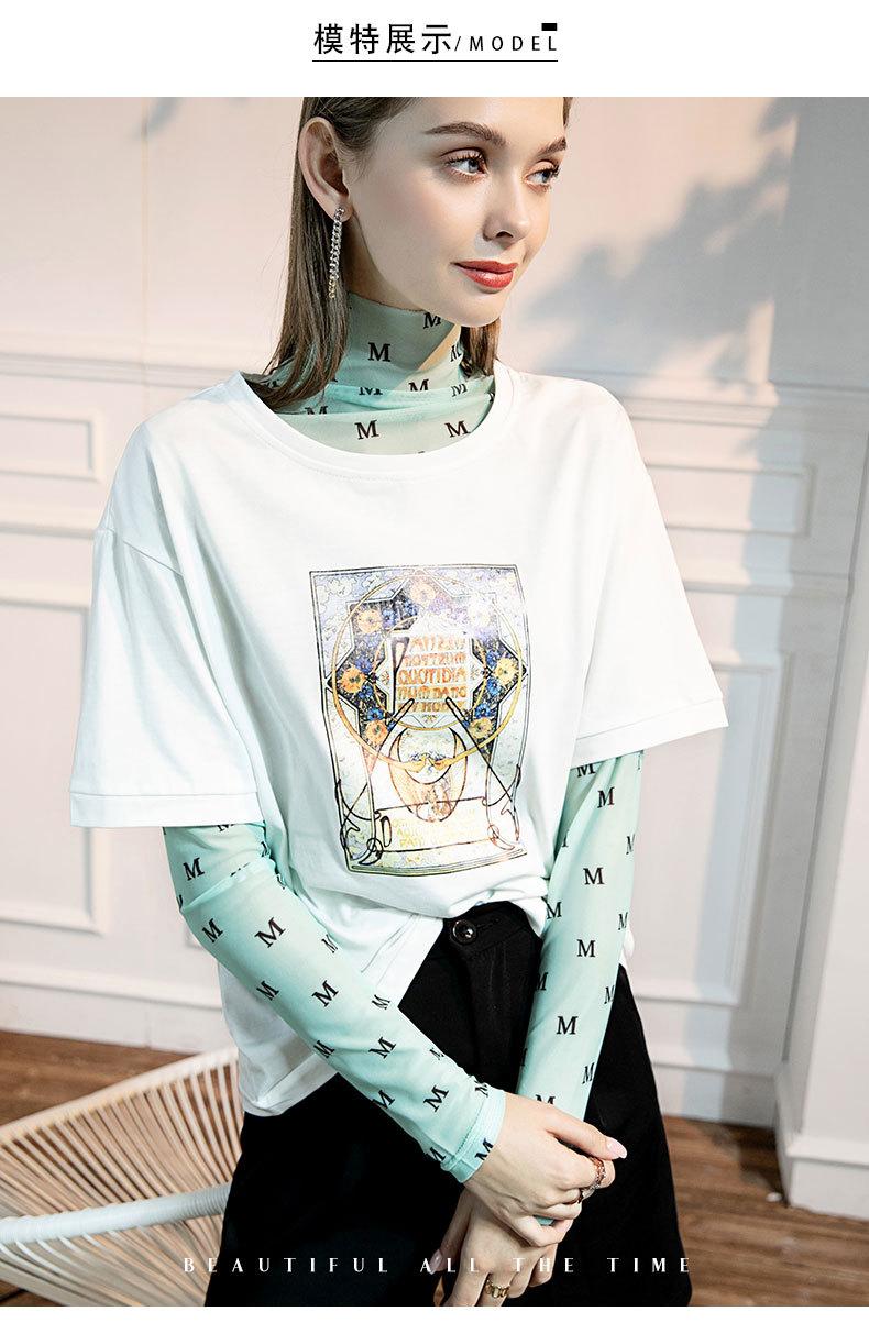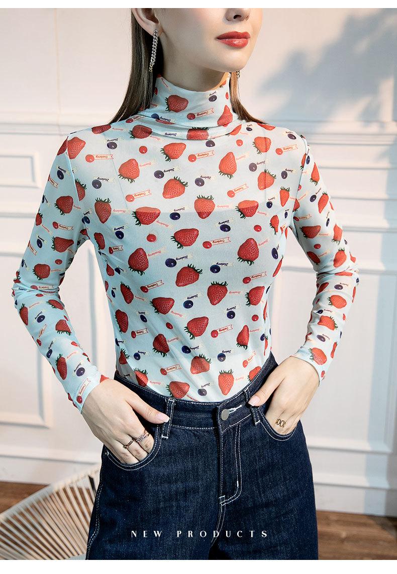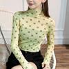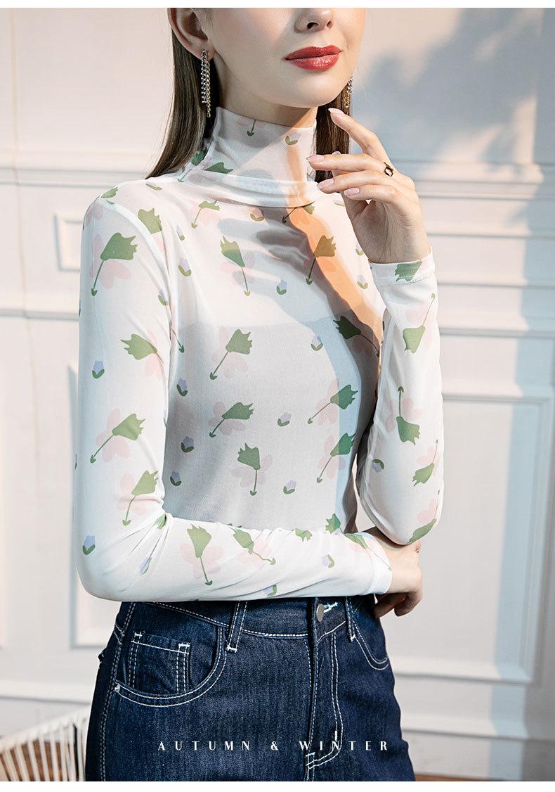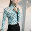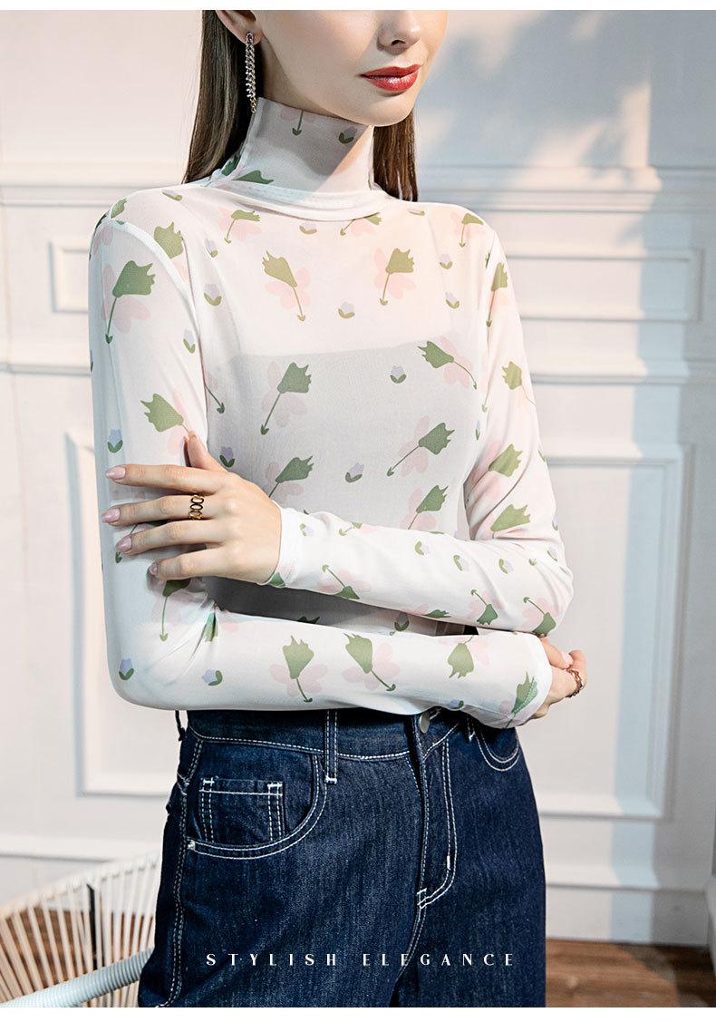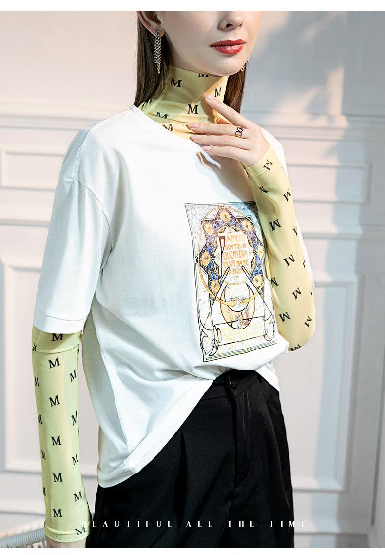 Camiseta Base de Verano de Cuello Alto con Protección Solar para Mujer, Malla Versión Coreana, Sexy Transparente con Letras Versátil de Manga Larga