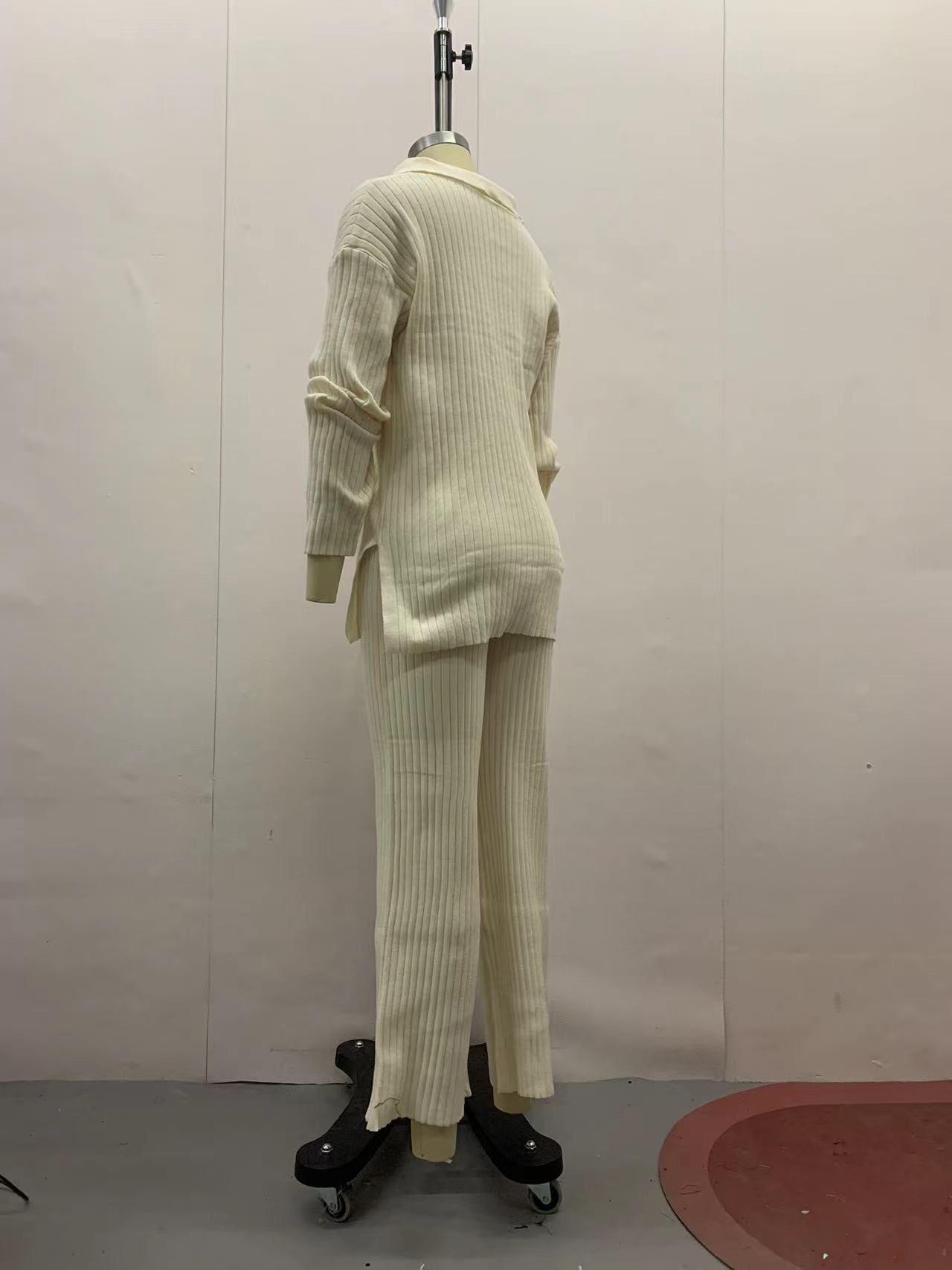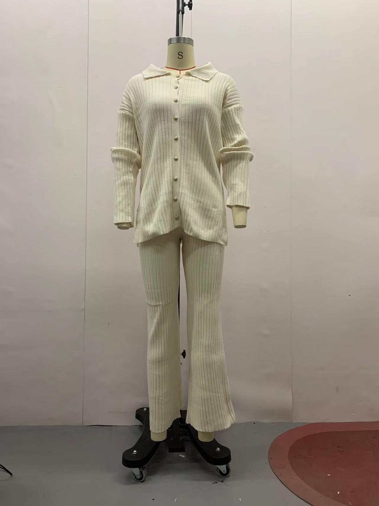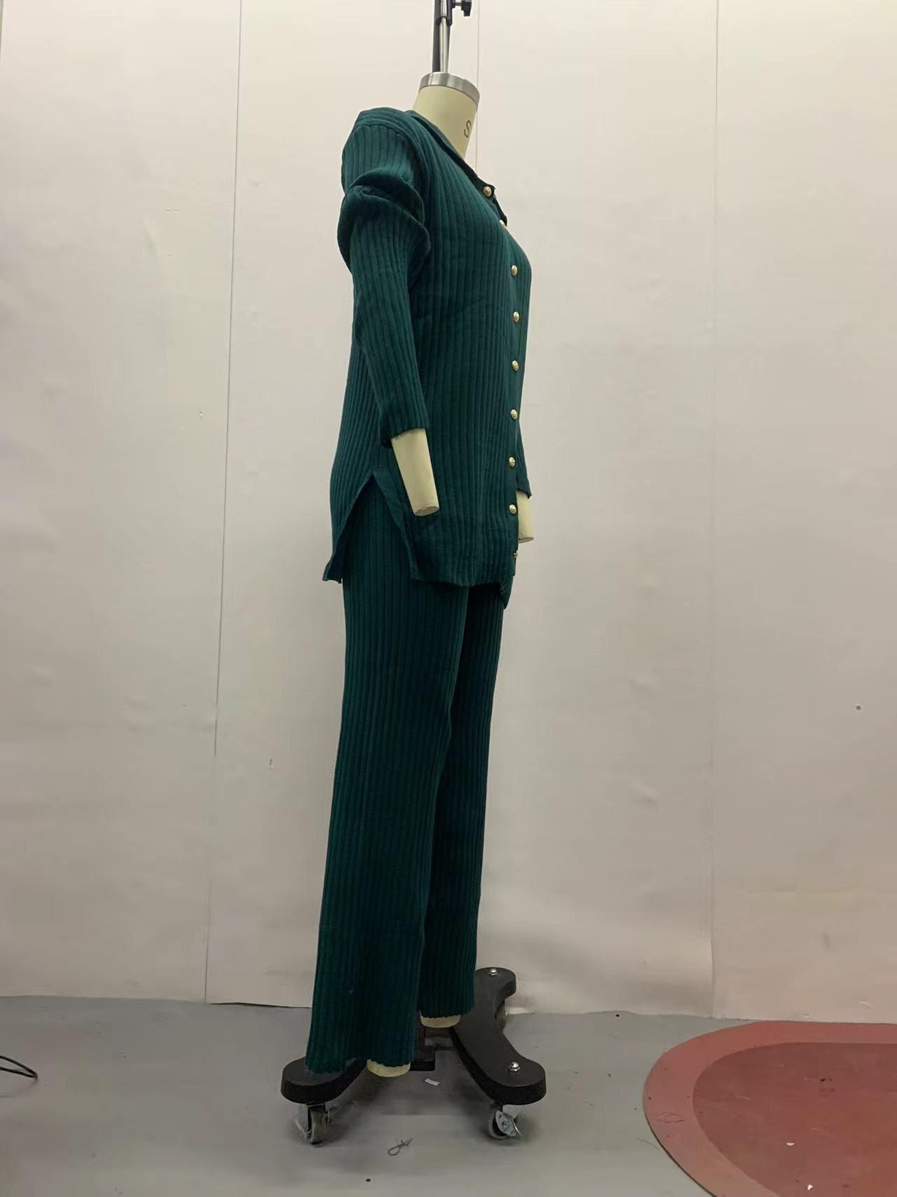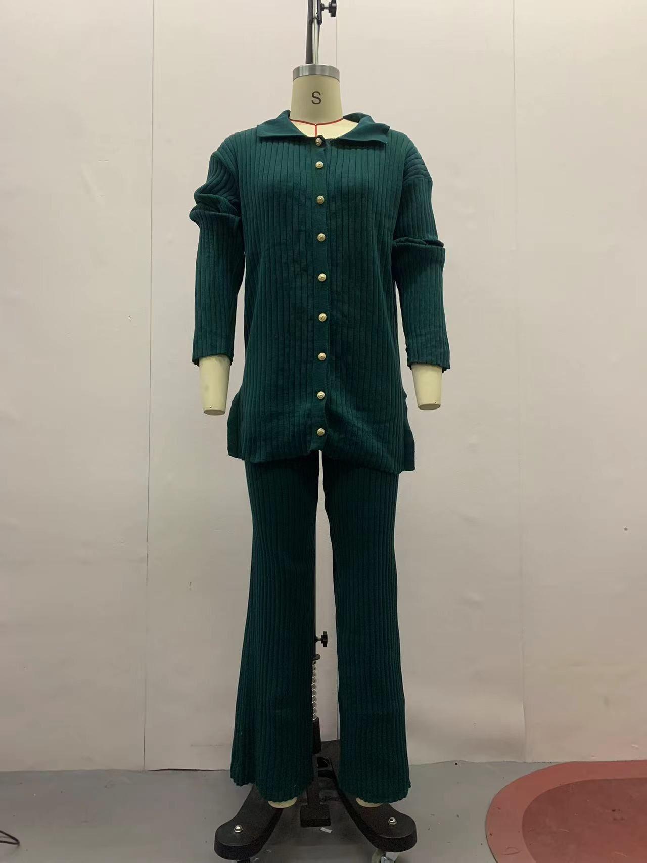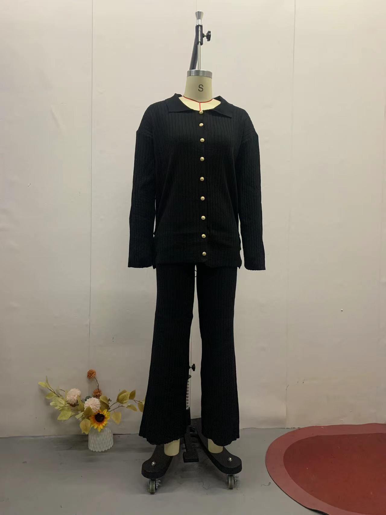 Otoño 2023 nuevo diseño europeo y americano transfronterizo de Amazon color sólido botón moda casual traje de casa moda femenina