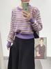 Suéter suave Nuo para mujer nuevo de principios de primavera 2024 Estilo retro japonés holgado a rayas cuello redondo manga larga top de punto morado