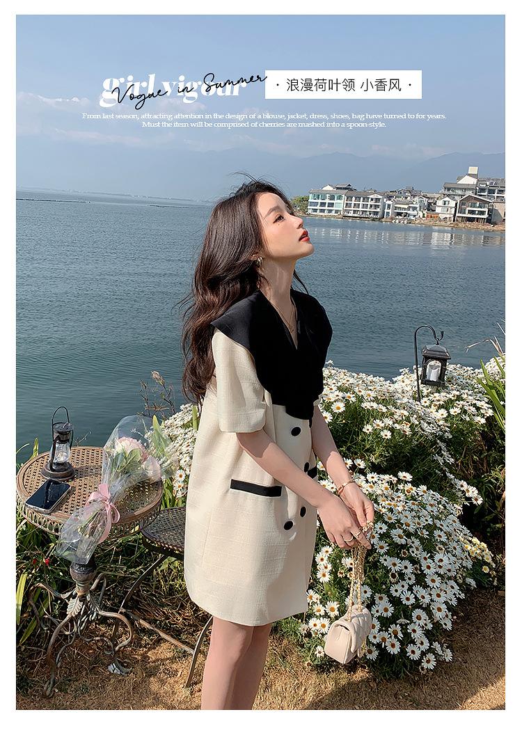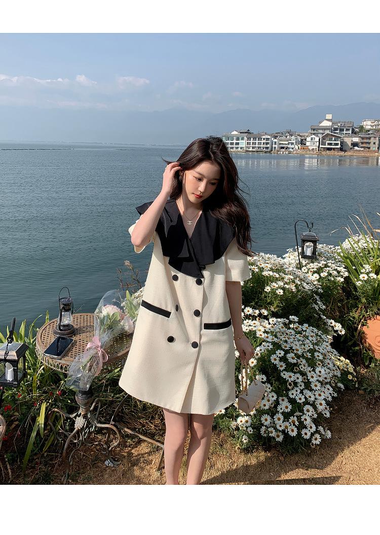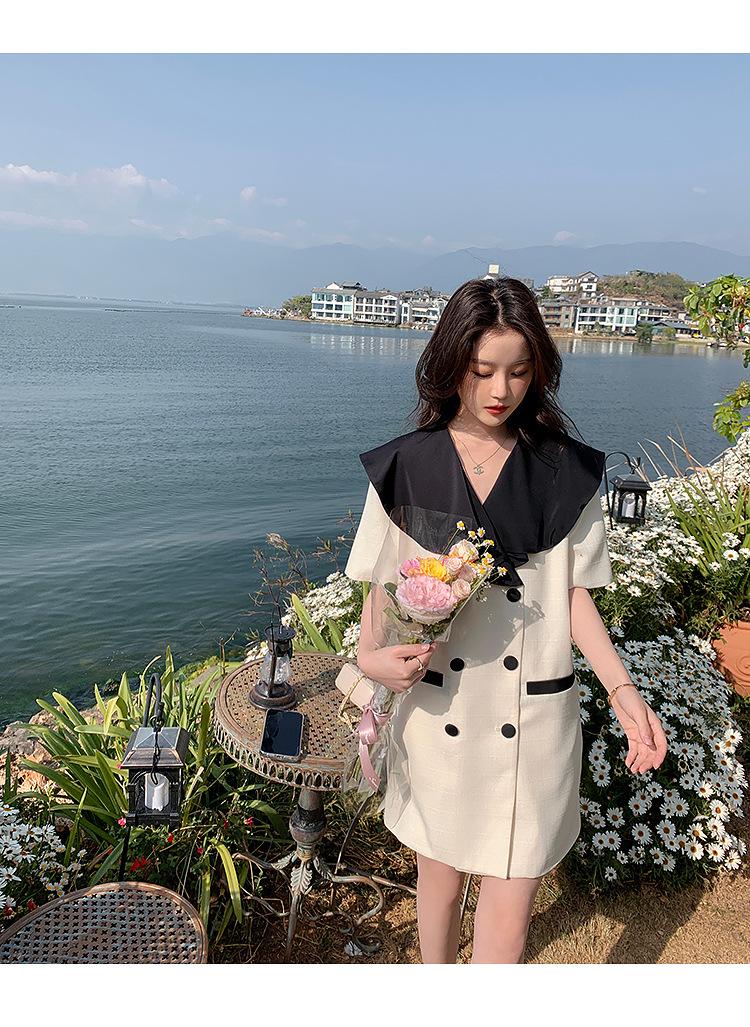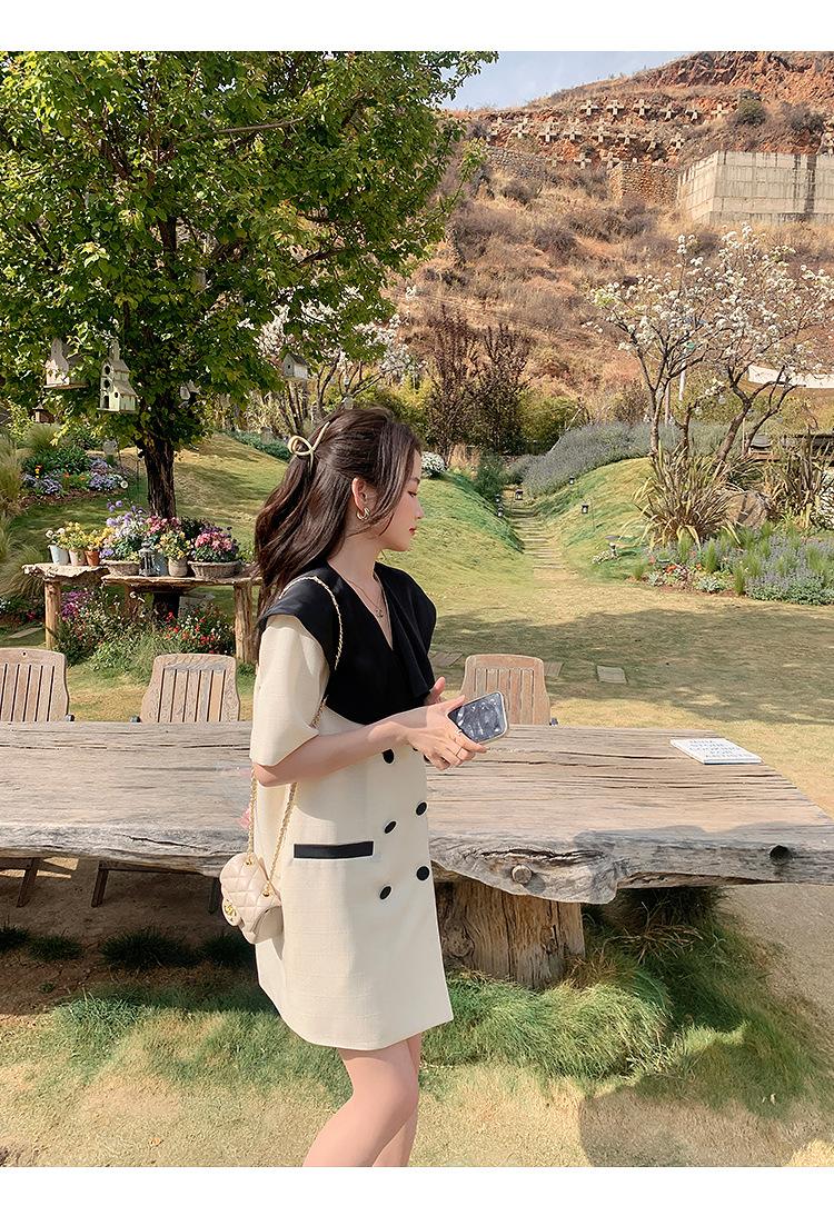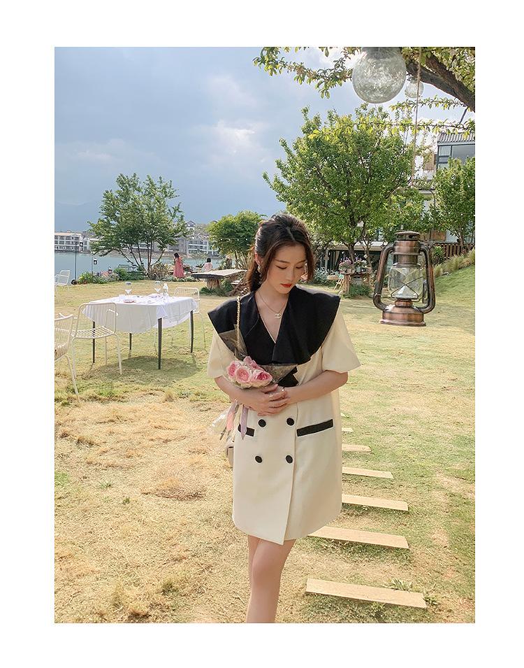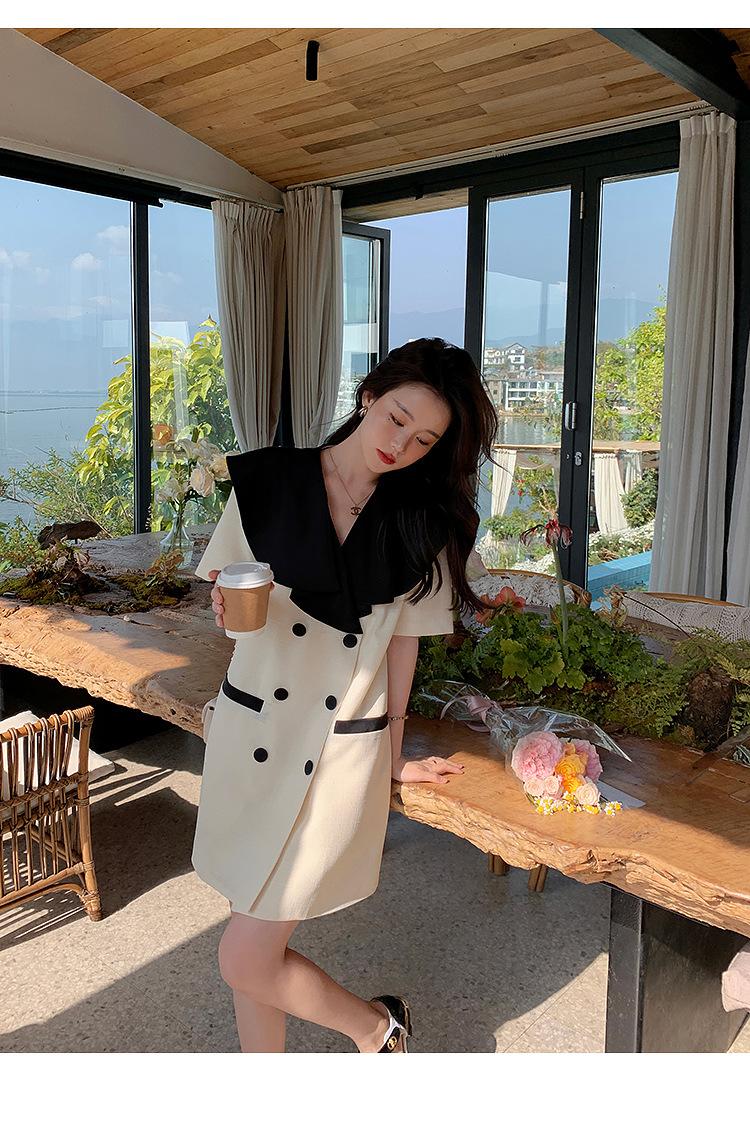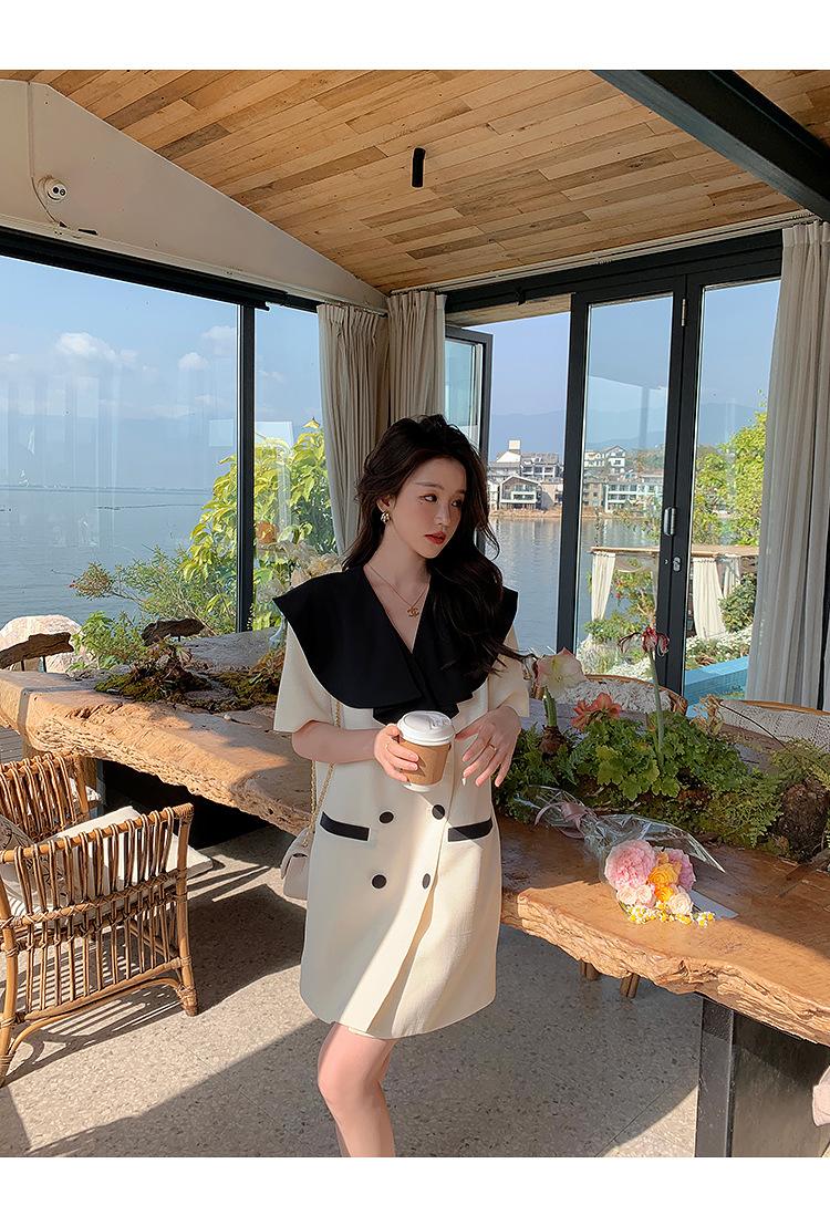Vestido de traje cruzado con cuello de muñeca, estilo coreano, estilo francés Hepburn, falda adelgazante, tiro real, novedad de verano de 2024