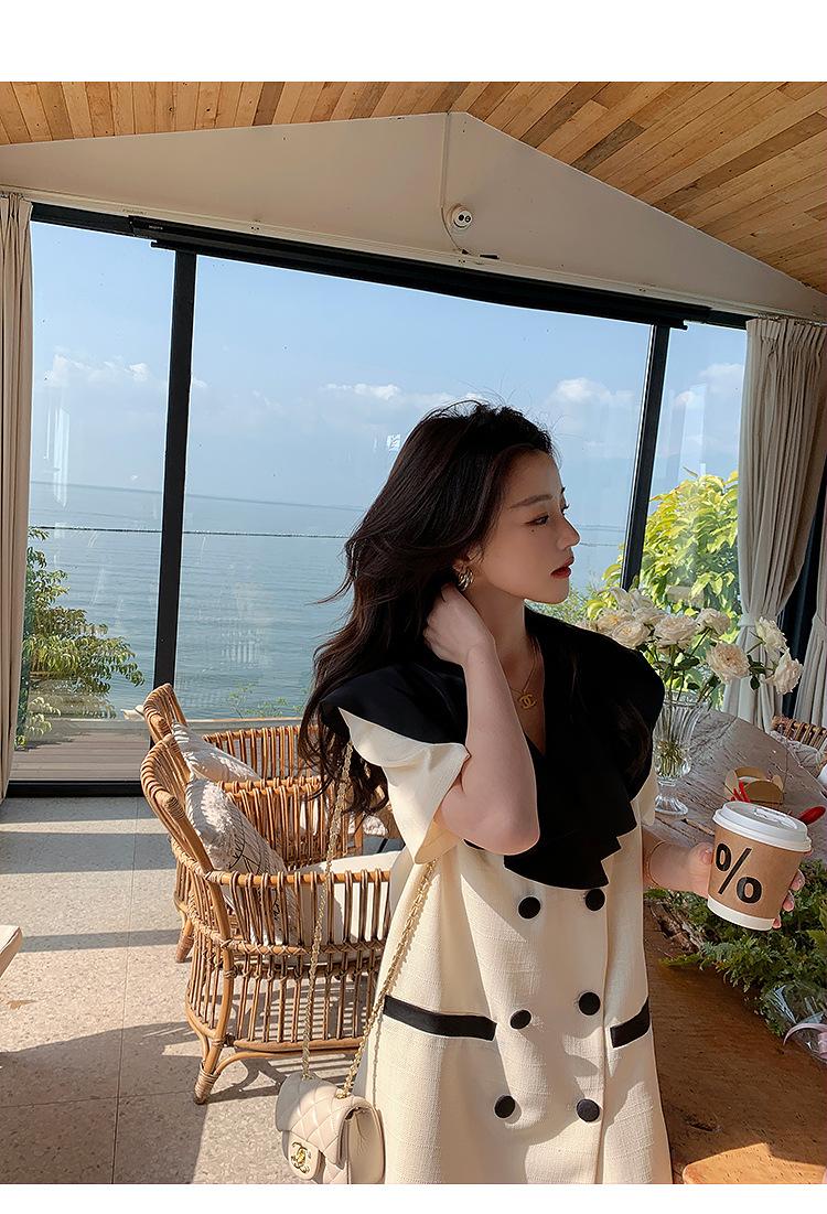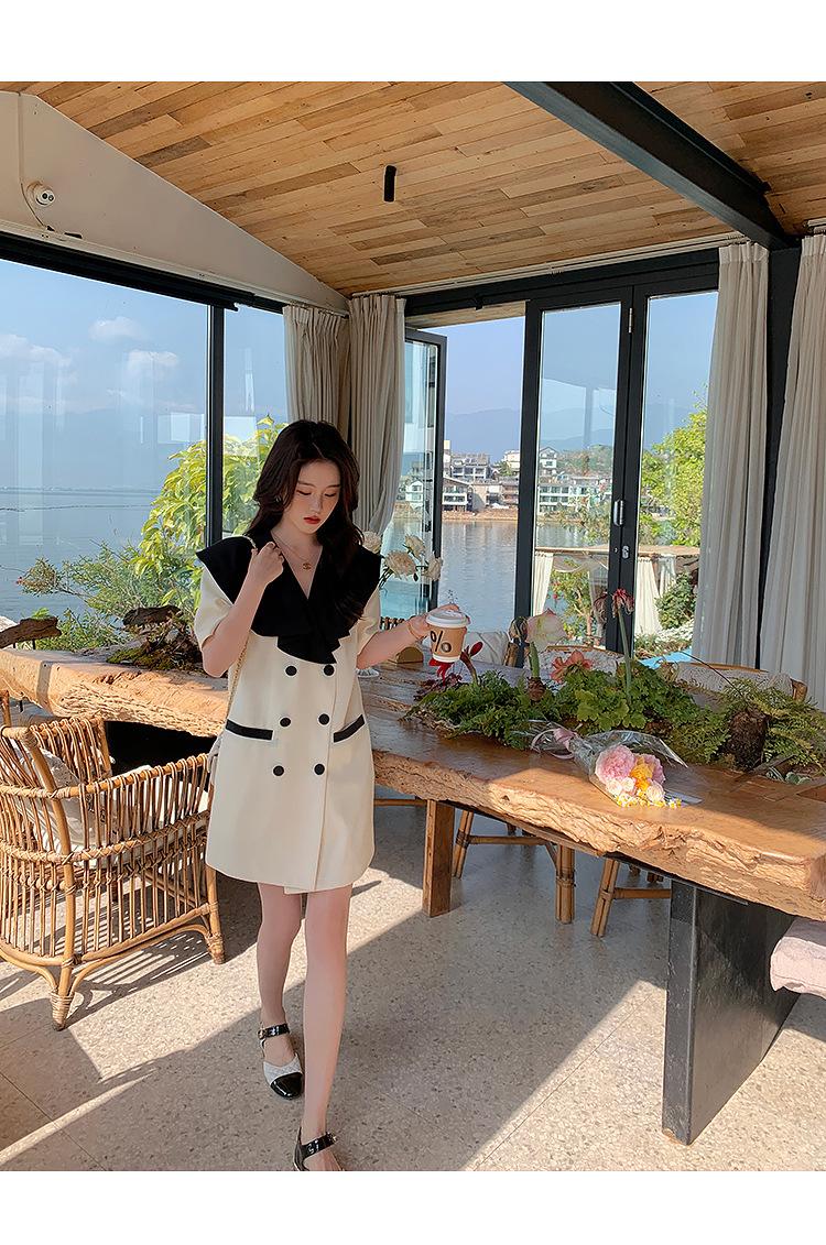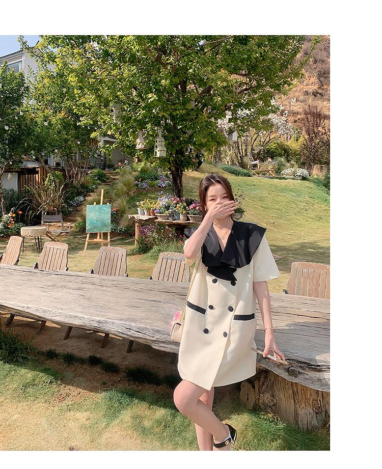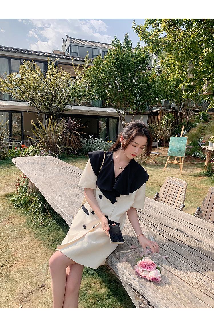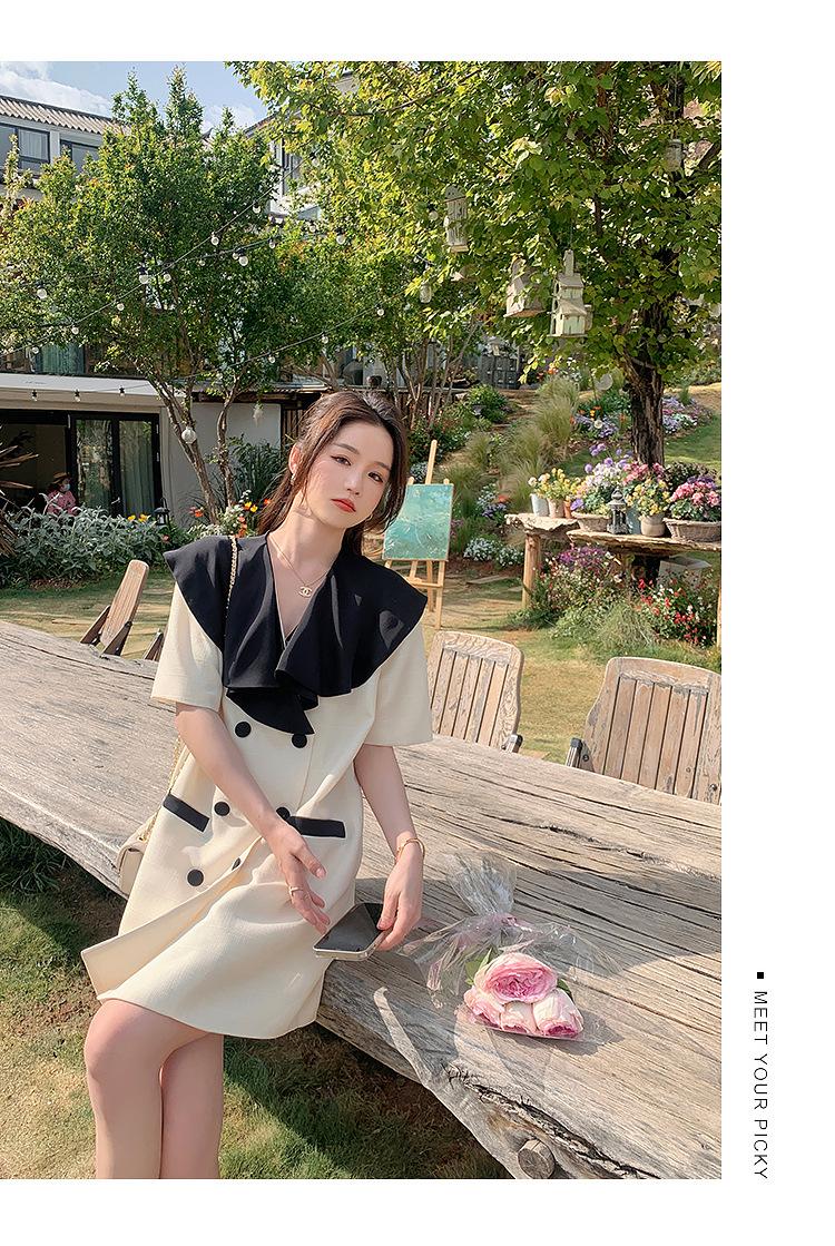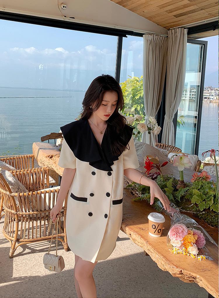 Vestido de traje cruzado con cuello de muñeca, estilo coreano, estilo francés Hepburn, falda adelgazante, tiro real, novedad de verano de 2024