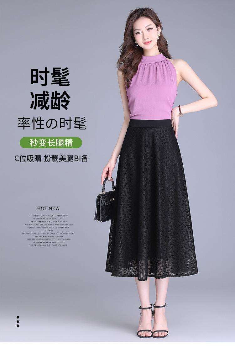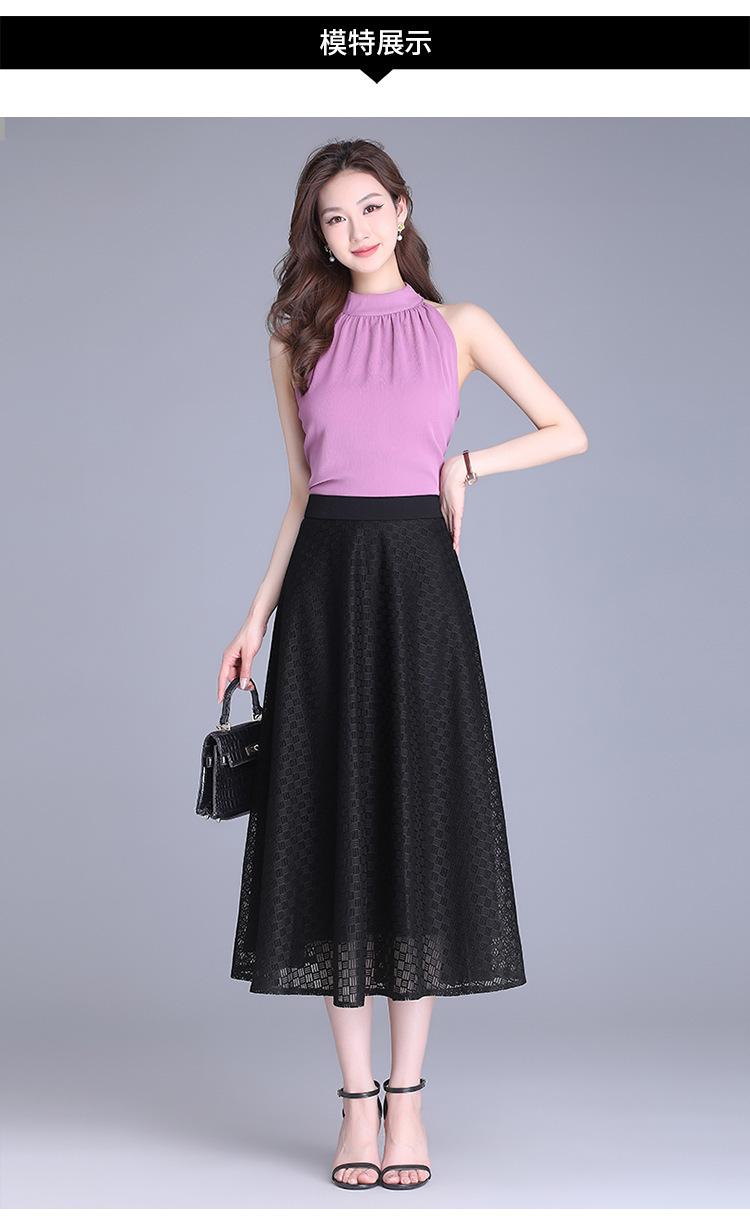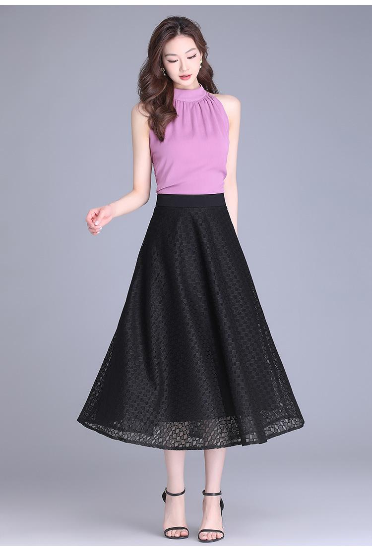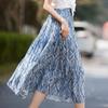 Falda elegante de malla con vuelo grande para mujer, verano 2024, nueva falda plisada, adelgazante, drapeada, línea A, elegante, de longitud media