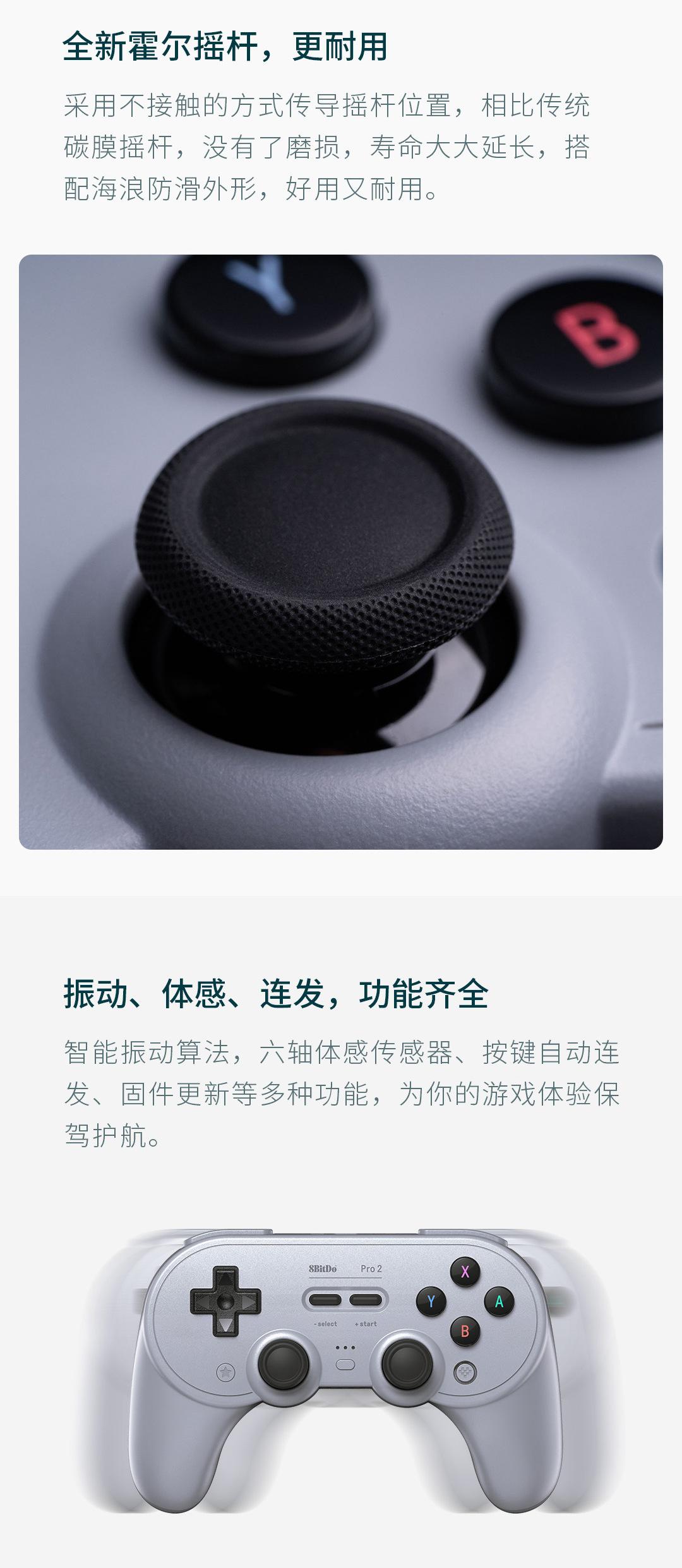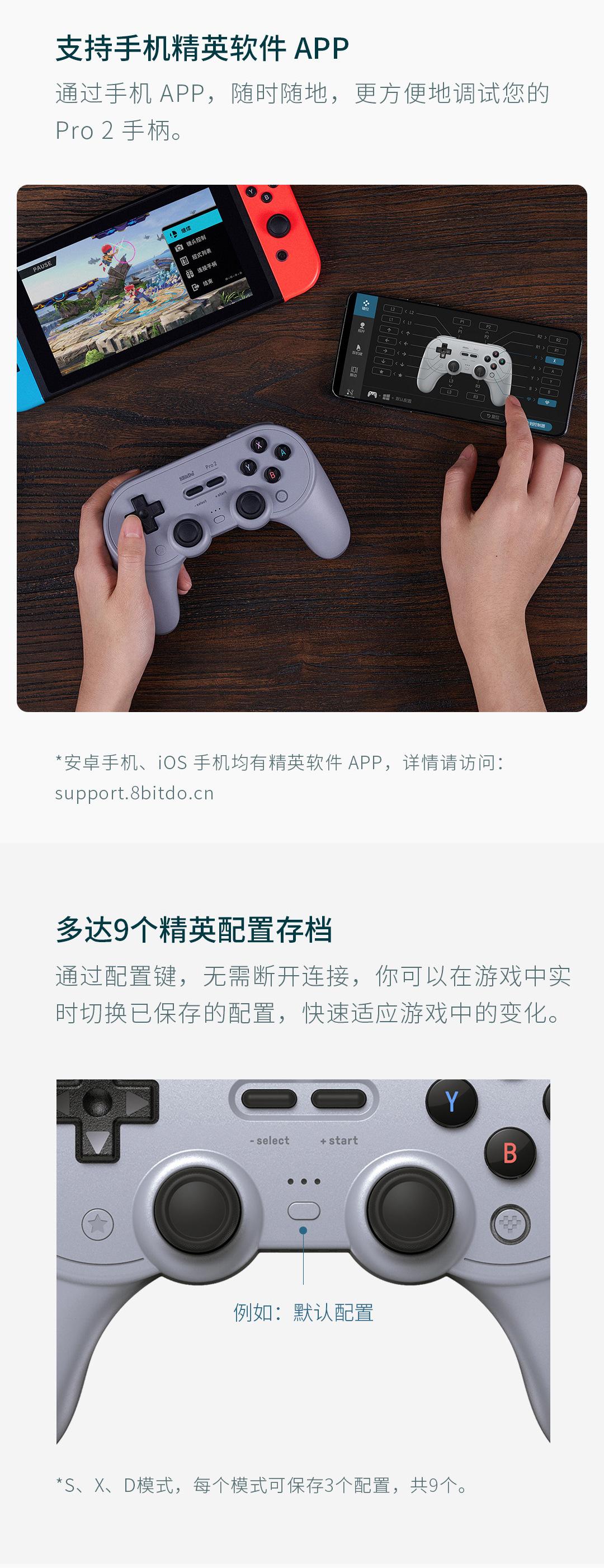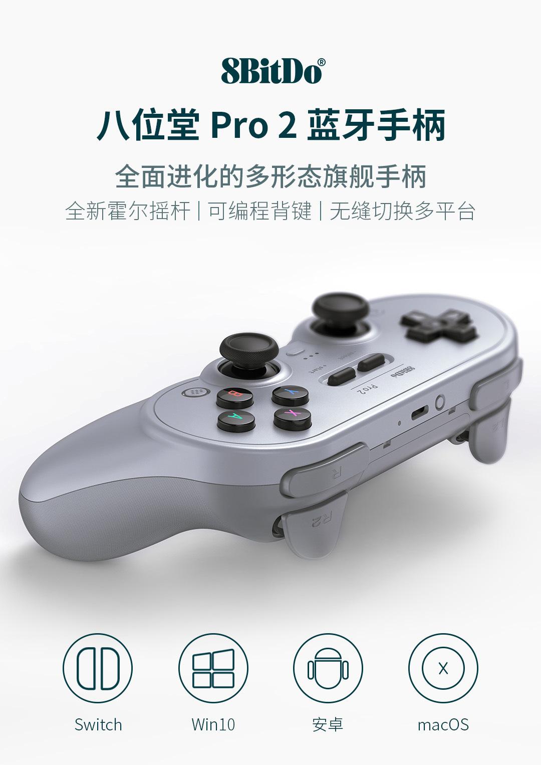 8Bitdo Empuñadura Inalámbrica Bluetooth de Ocho Ranuras Hall Pro 2 Balancín Hall Computadora PC Android Ns Black Myth