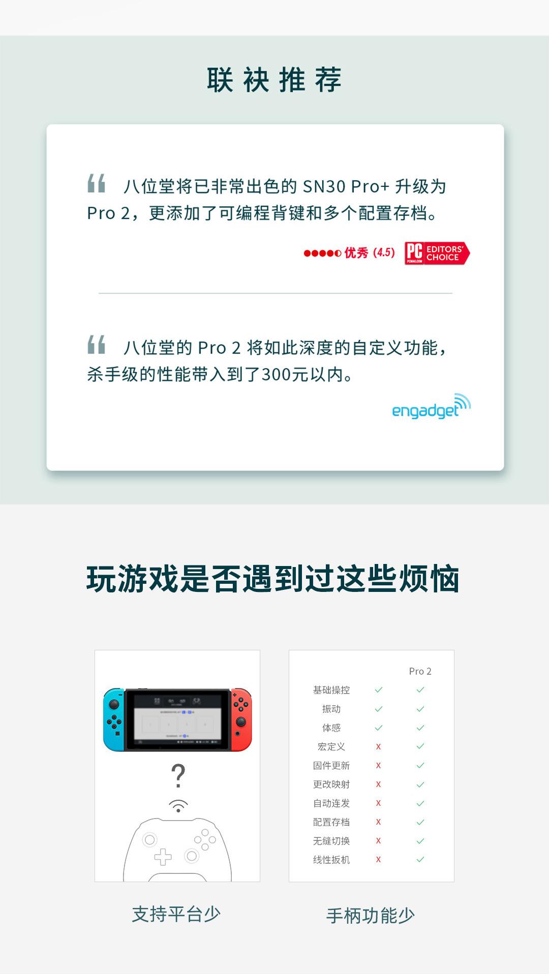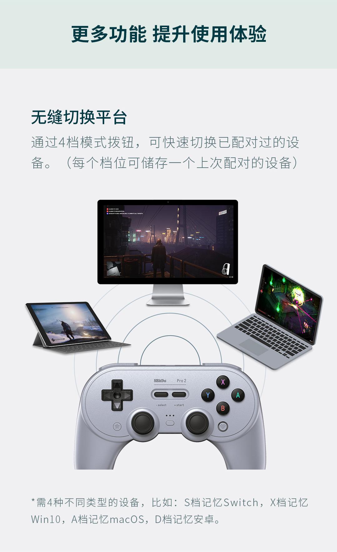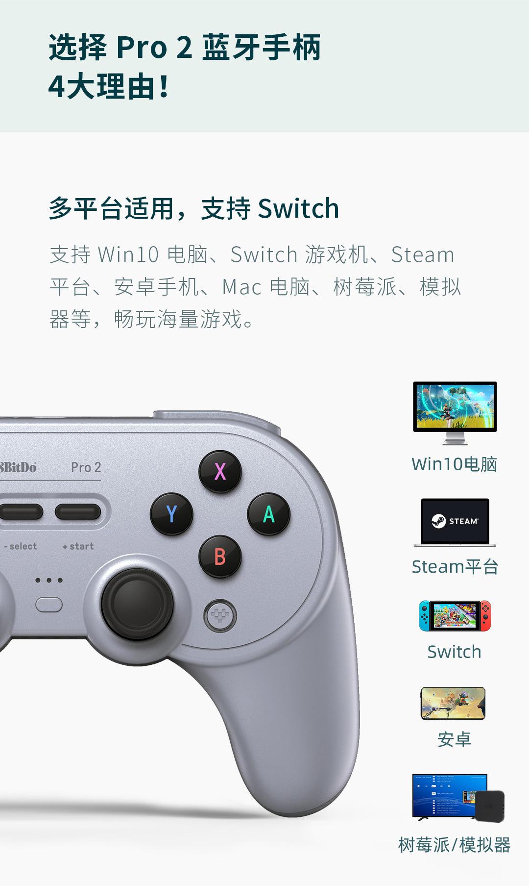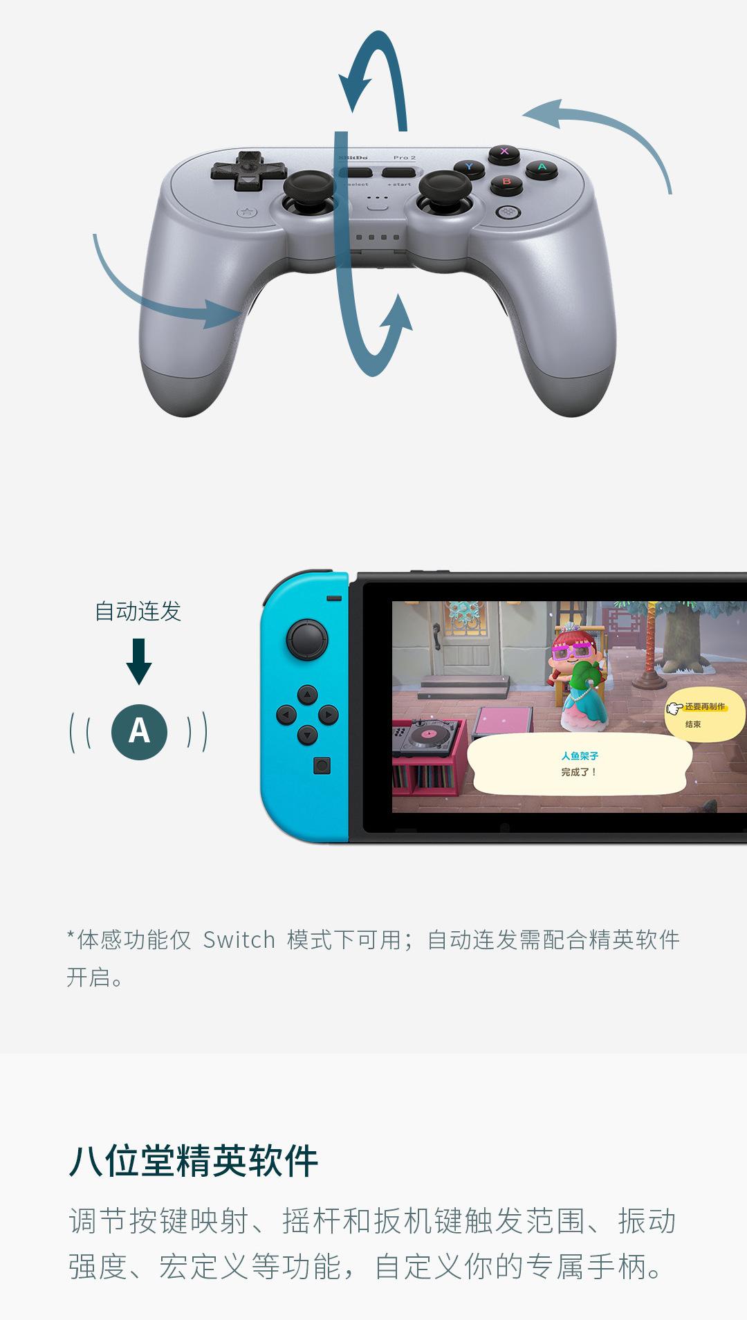 8Bitdo Empuñadura Inalámbrica Bluetooth de Ocho Ranuras Hall Pro 2 Balancín Hall Computadora PC Android Ns Black Myth