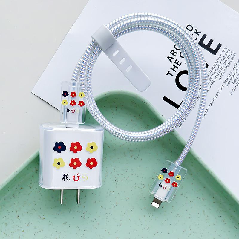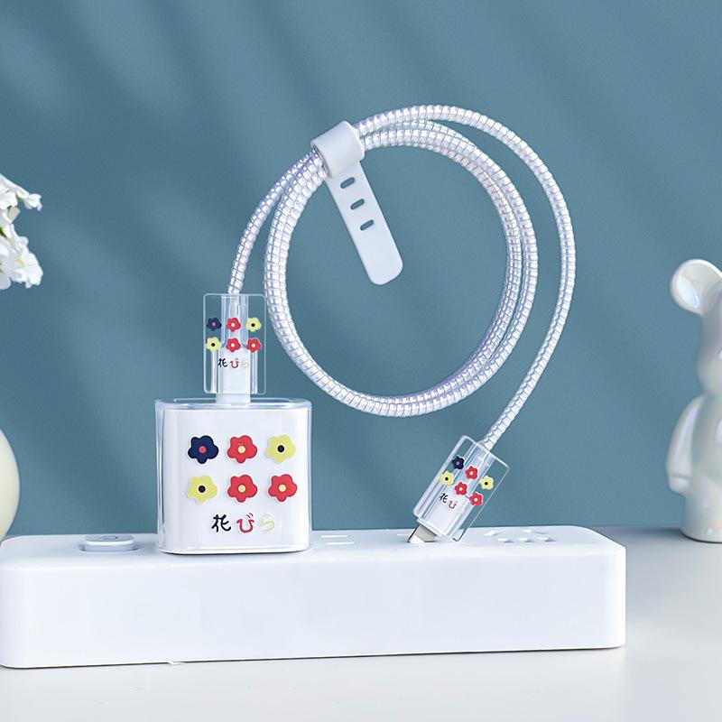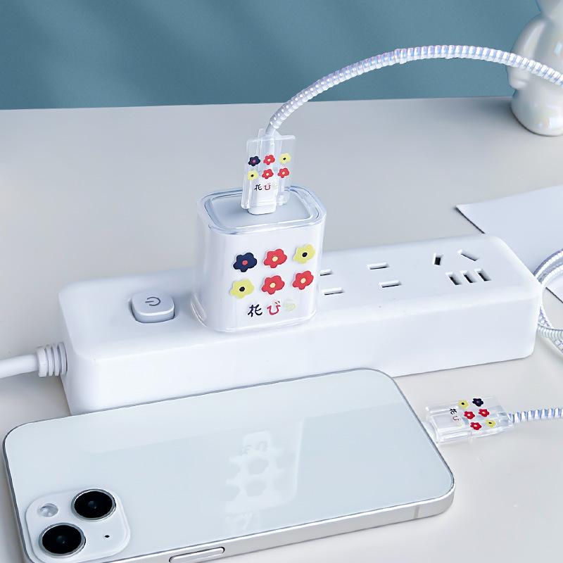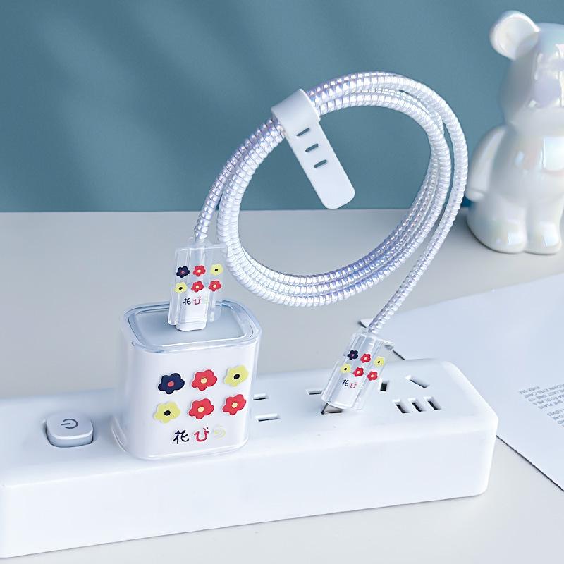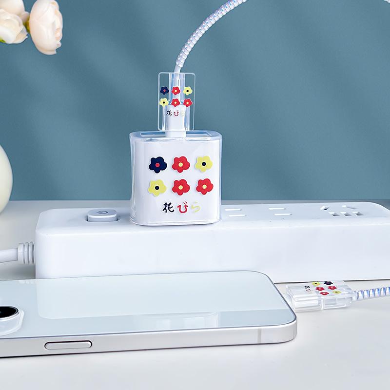 Adecuado para Cubierta Protectora de Cargador Apple 16/15/14 Cable de Datos de Carga Rápida Clip de Cable Transparente Dispositivo Mordedor de Cable 6 Flores