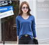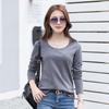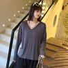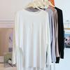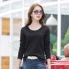 Camiseta de manga larga de primavera y verano para mujer, camisa básica de cuello redondo de algodón flameado, versión holgada, top dividido de talla grande para mujer 1838-1