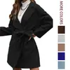 2026 Nuevo Estilo Europeo y Americano Marca Independiente Amazon Otoño e Invierno Sencillo Abrigo de Manga Larga con Solapa Botones Cinturón Dividido en la Cintura para Mujer