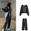 2025 Primavera y Otoño Nuevo Estilo Coreano Algodón Puro Sudadera Corta Conjunto Deportivo Casual Personalizado de Moda de Dos Piezas para Mujer