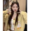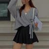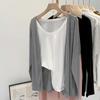 Cárdigan Suéter Chaqueta Tejida Coreana Chic Otoño Estilo Perezoso Cuello en V Versátil Holgado Casual Color Puro Manga Linterna