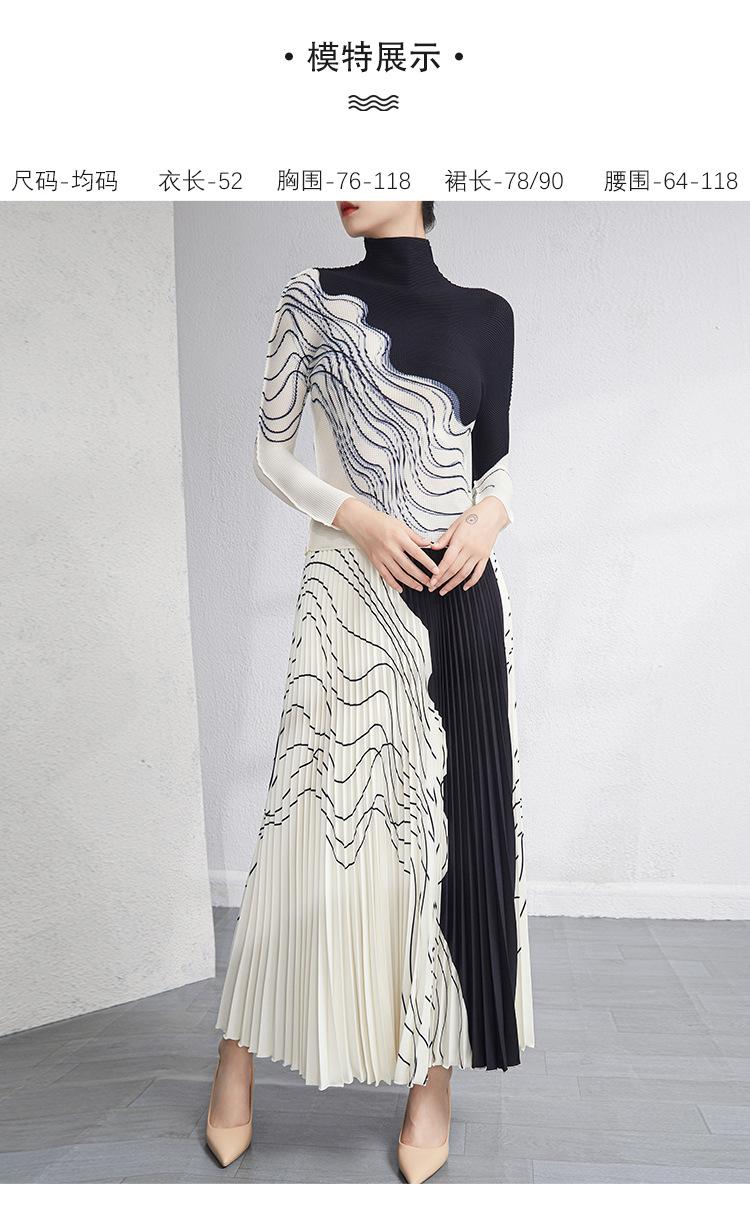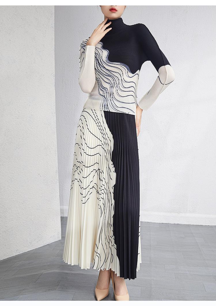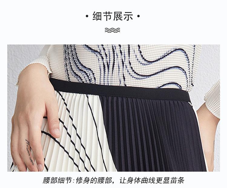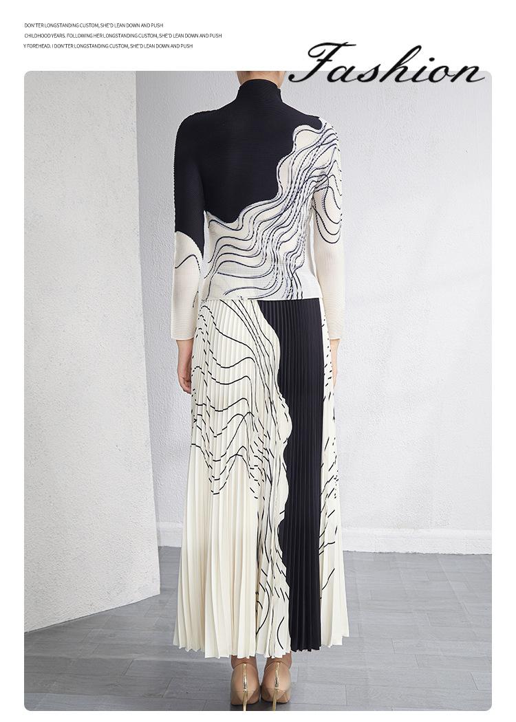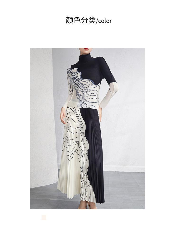 Traje de Moda Miyake para Mujer de Dos Piezas Primavera Nuevo de Alta Gama Estampado Top Curva Falda Falda Plisada