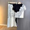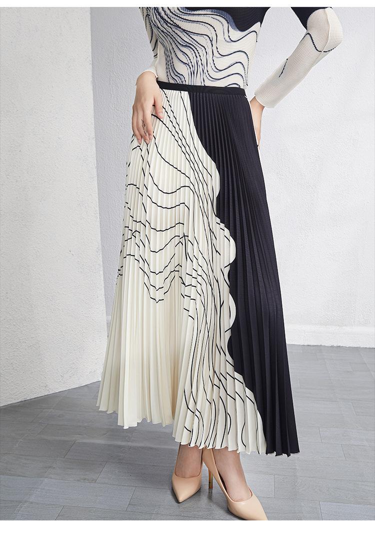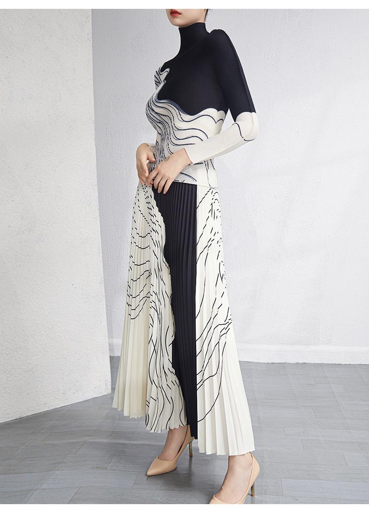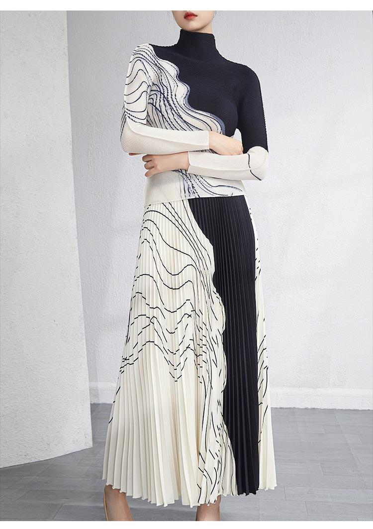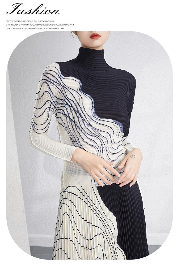 Traje de Moda Miyake para Mujer de Dos Piezas Primavera Nuevo de Alta Gama Estampado Top Curva Falda Falda Plisada