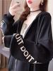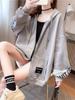Suéter con capucha y cremallera tipo cárdigan para mujer, primavera y otoño de 2023, nuevo abrigo popular, estilo coreano, holgado, estilo perezoso, top grueso
