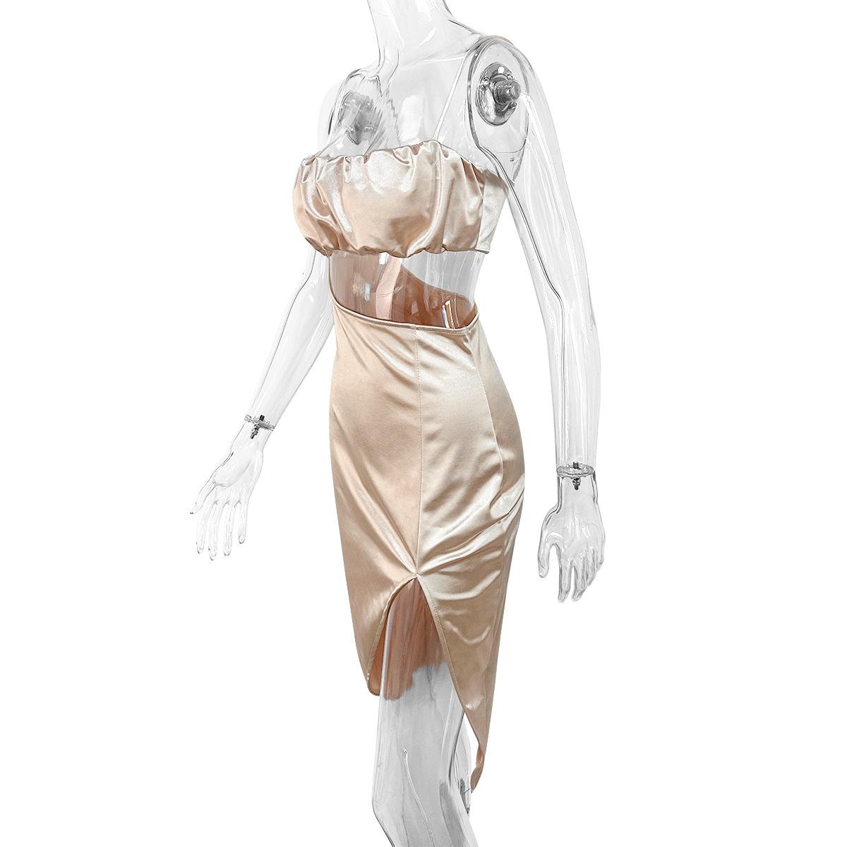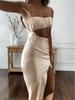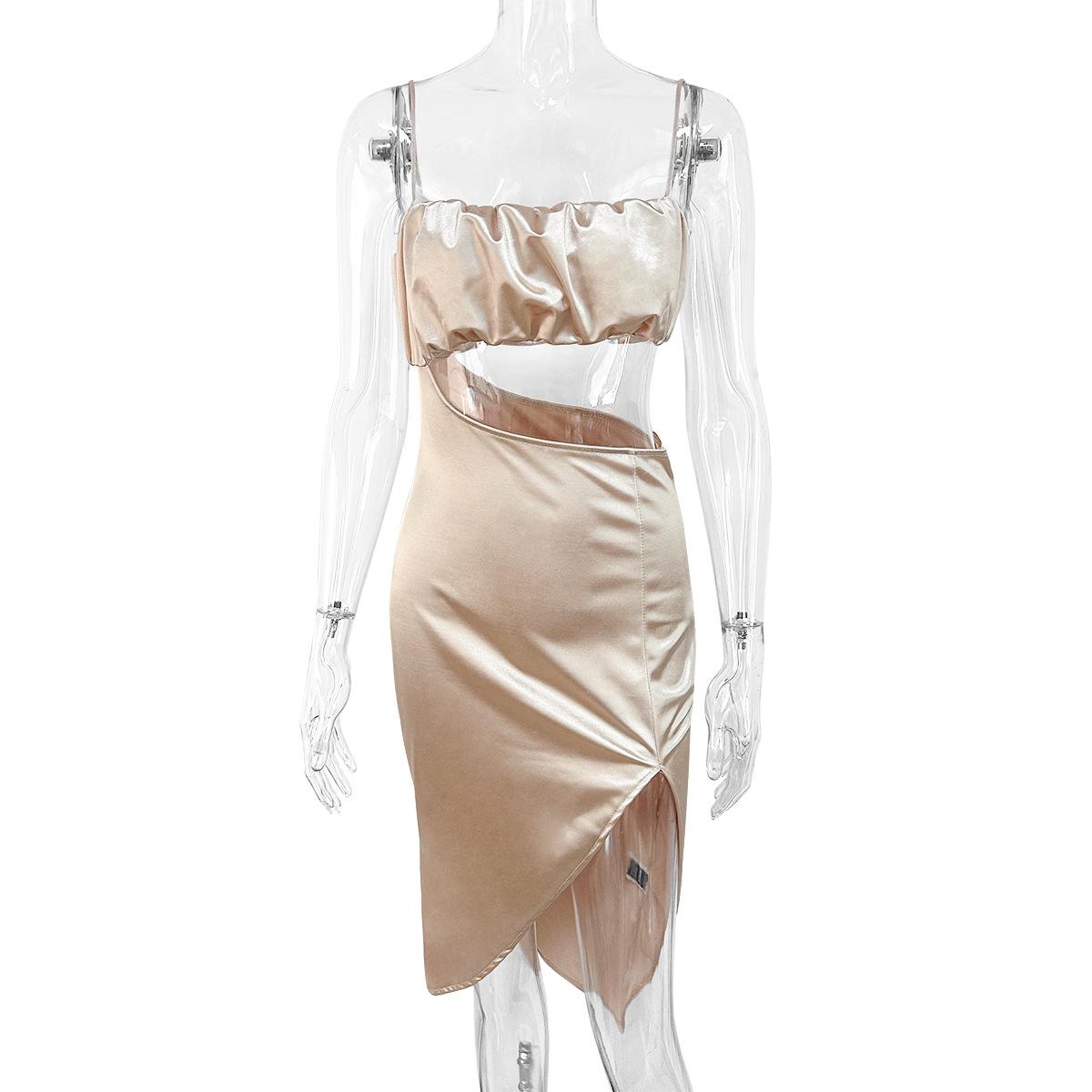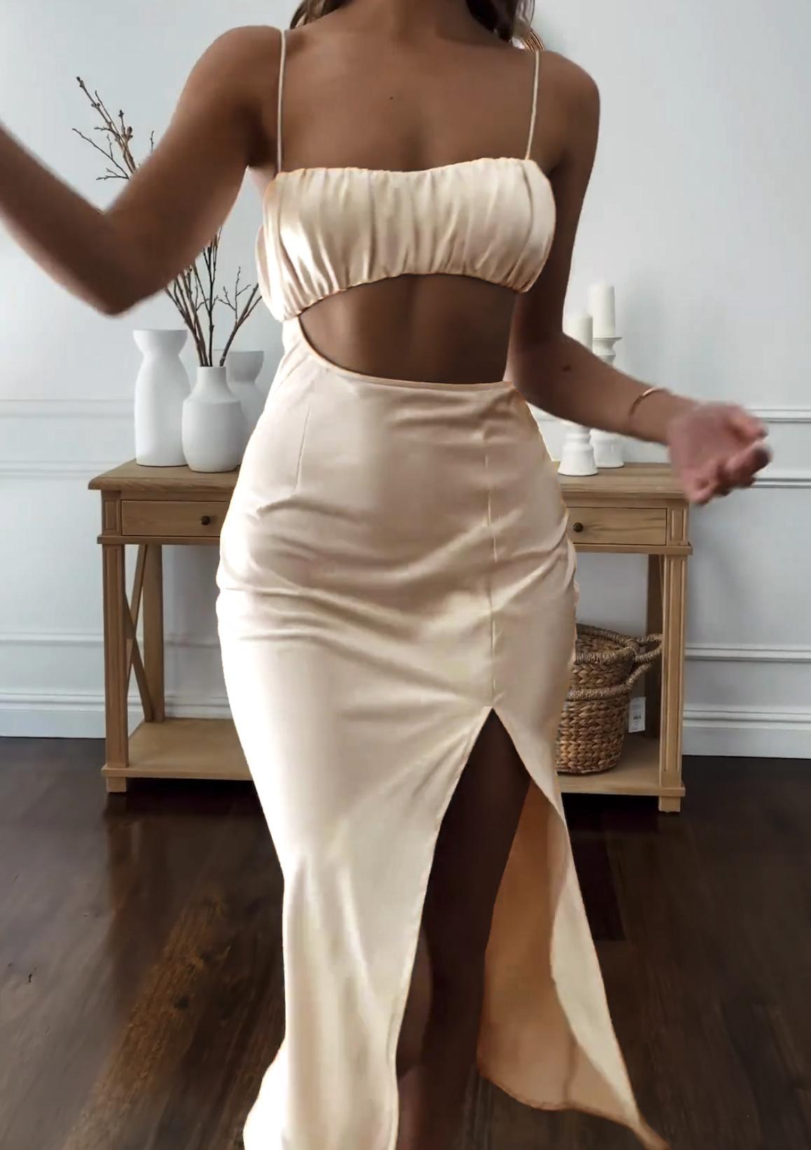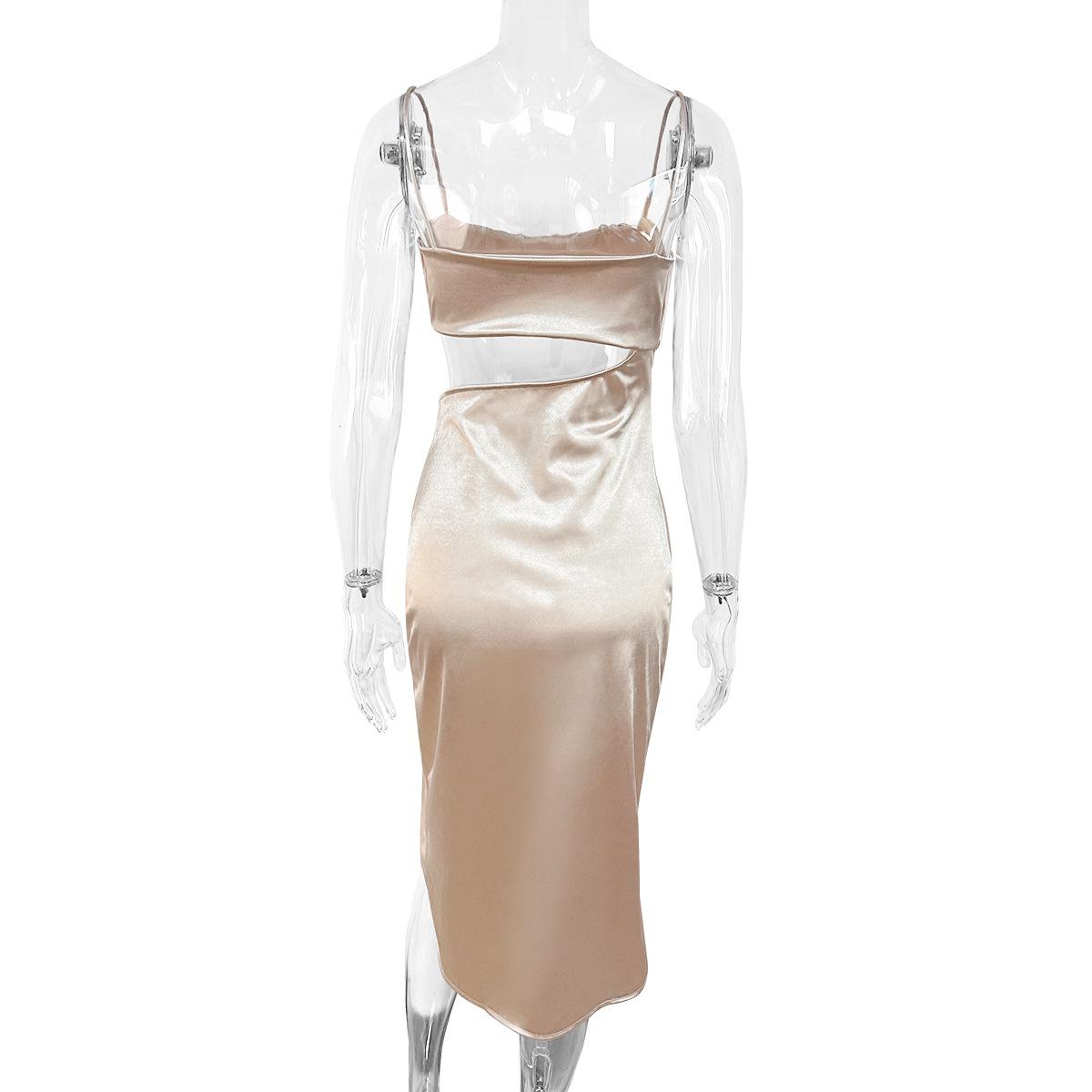 Nuevo vestido de tirantes de verano europeo y americano 2024, cintura hueca, diseño con abertura,