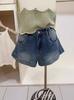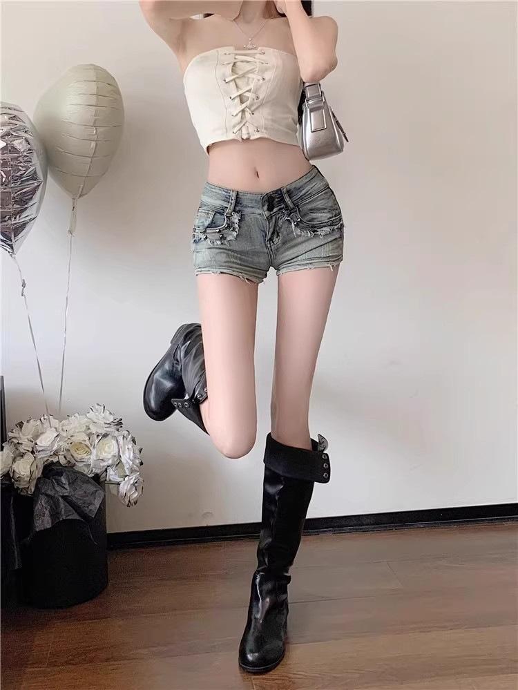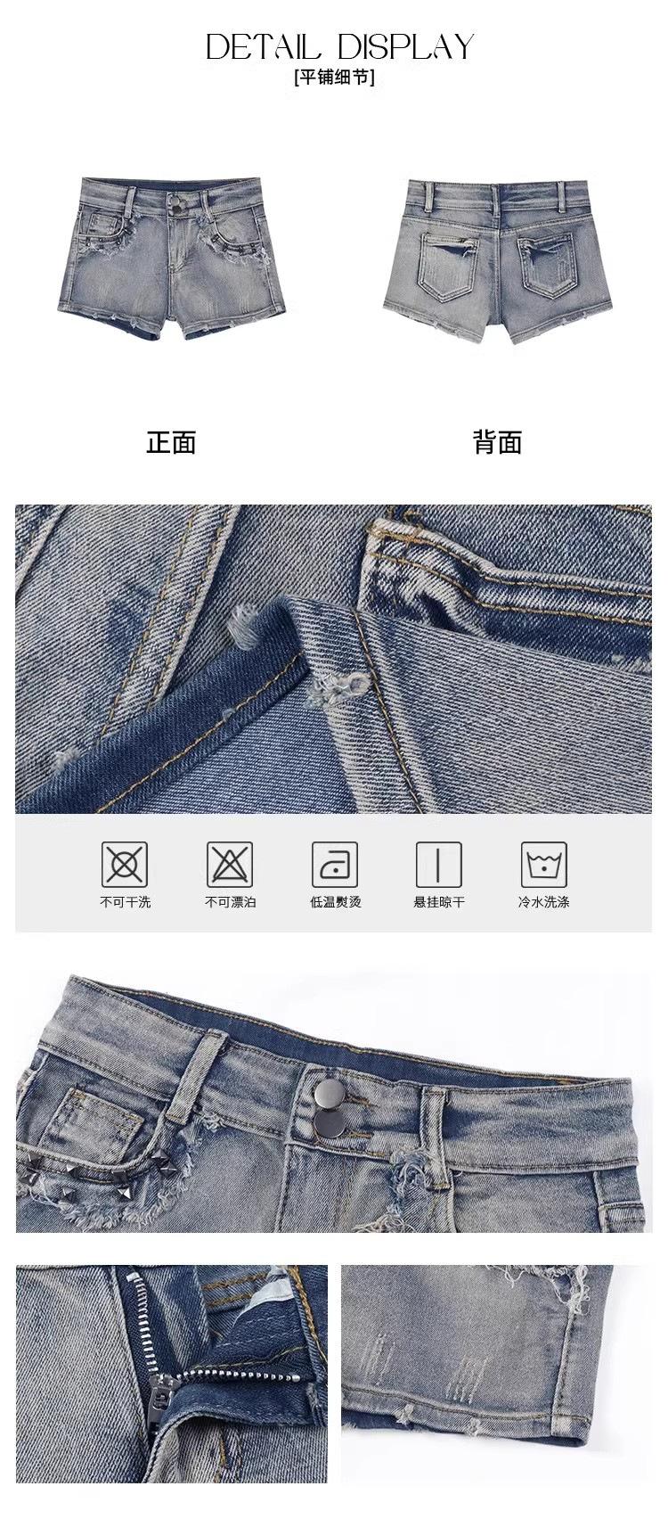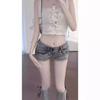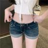 Pantalones cortos de mezclilla para chica sexy, estilo americano, con tachuelas, de cintura baja, diseño de nicho para mujer, ajustados y ajustados.