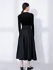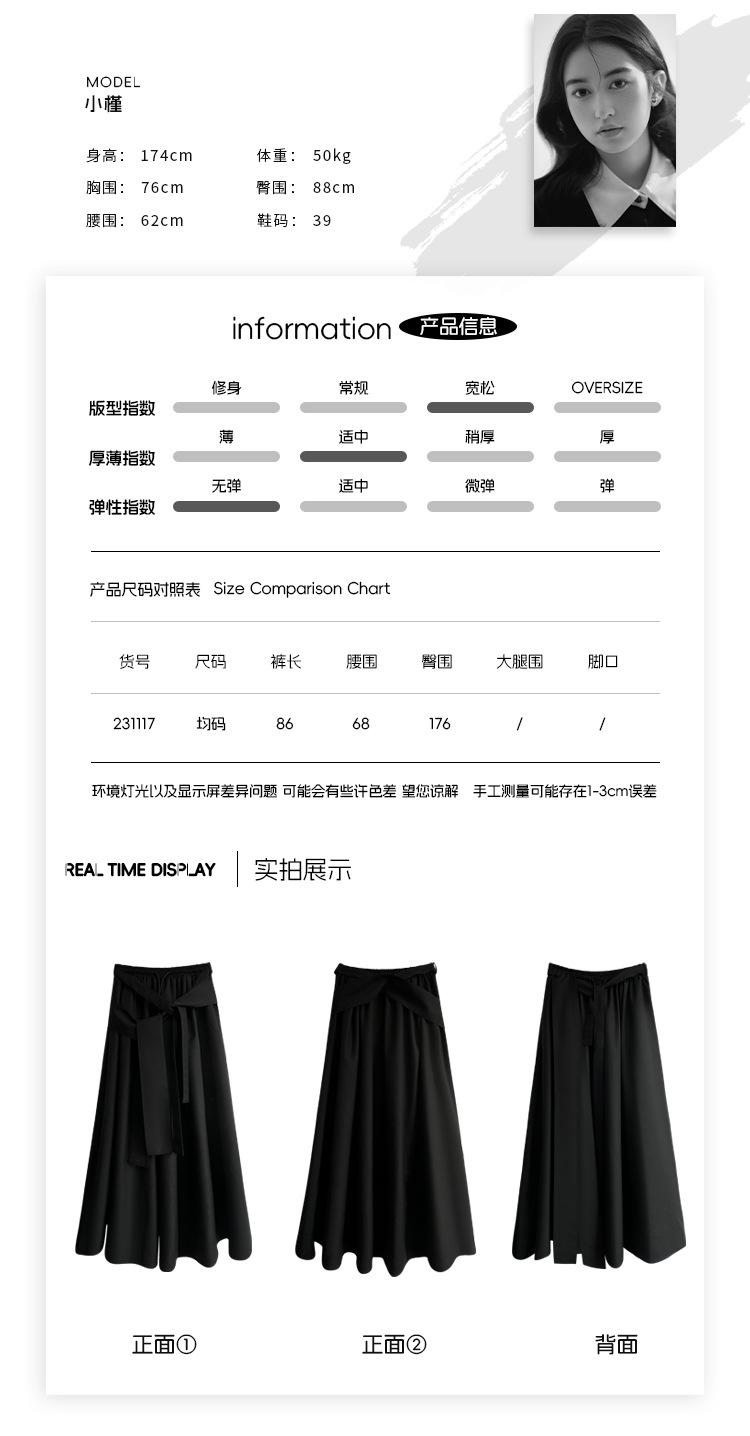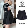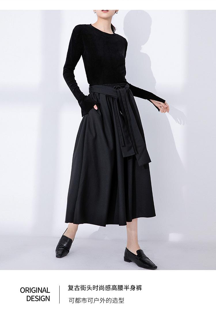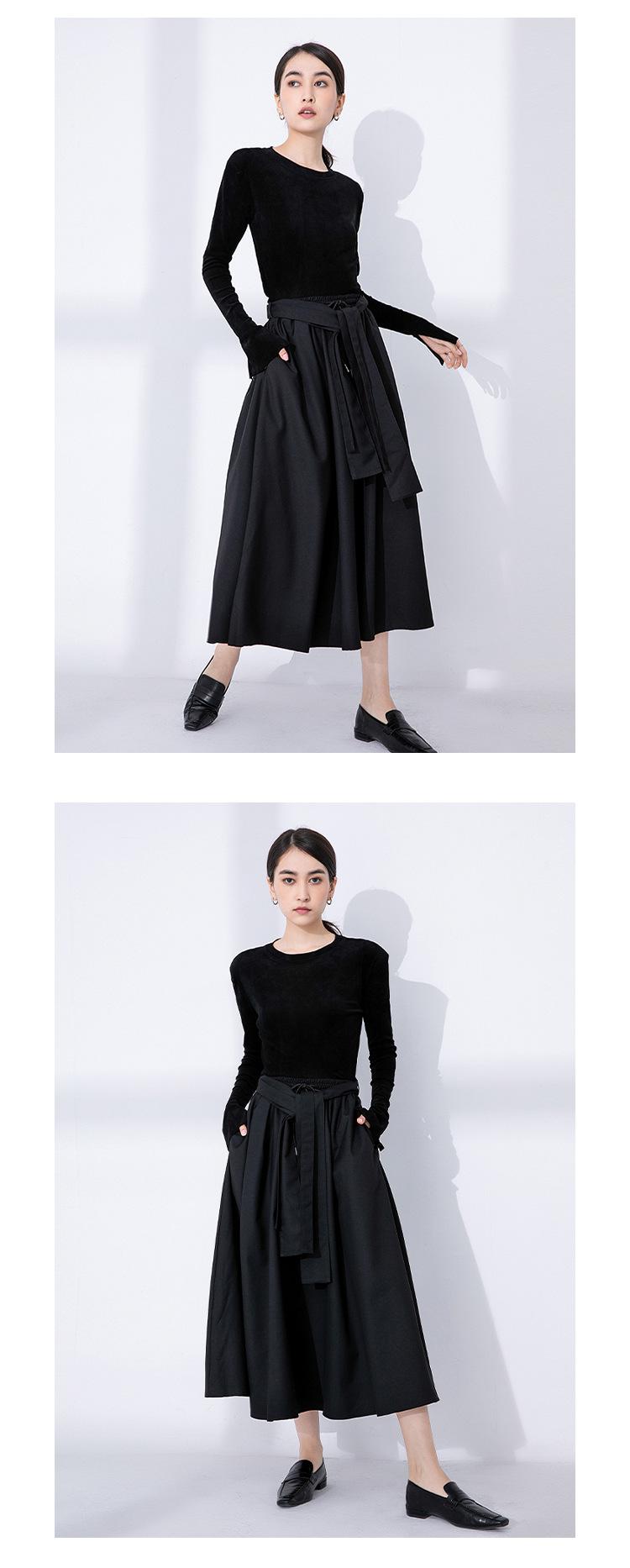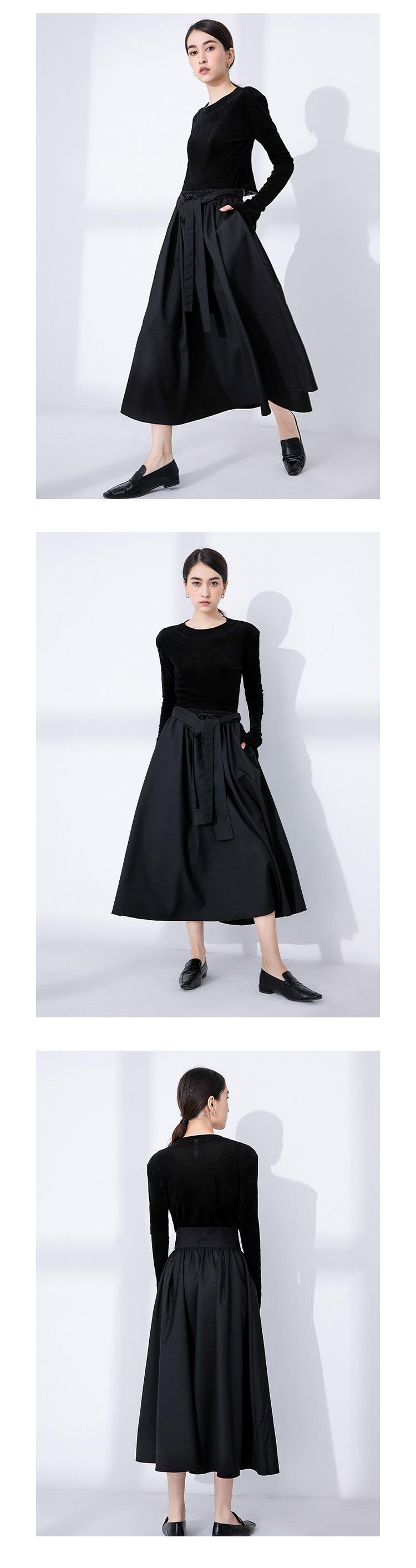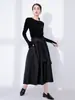 Falda plisada fina con cintura irregular y diseño original de Hibiscus Yuanzhou, color negro, línea A, para mujer