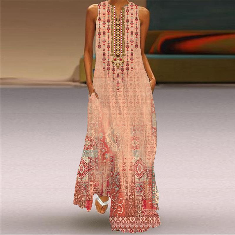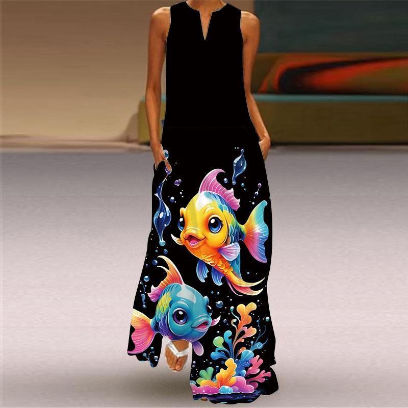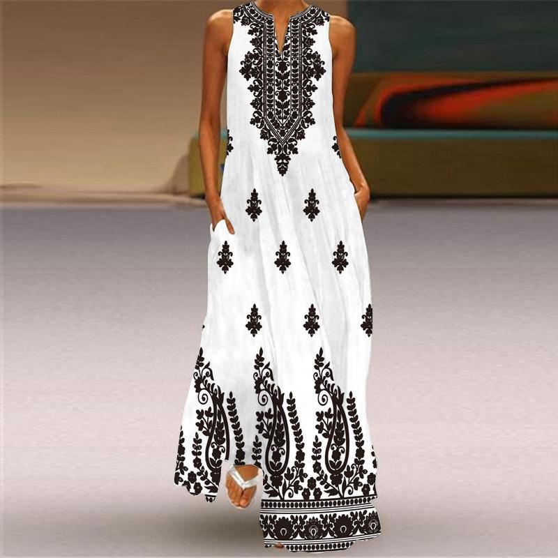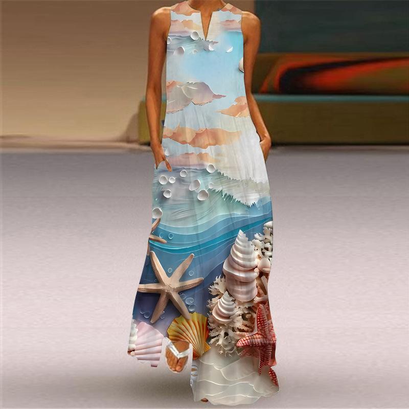 Vestido sexy estampado con cuello en V sin mangas para mujer, novedad de verano de 2024, ropa de mujer de comercio exterior transfronterizo de Europa y Estados Unidos