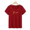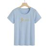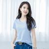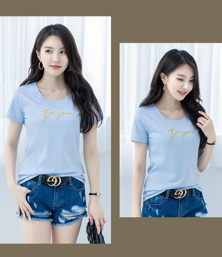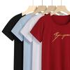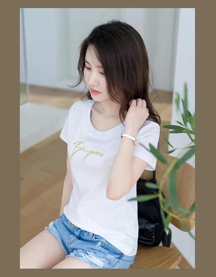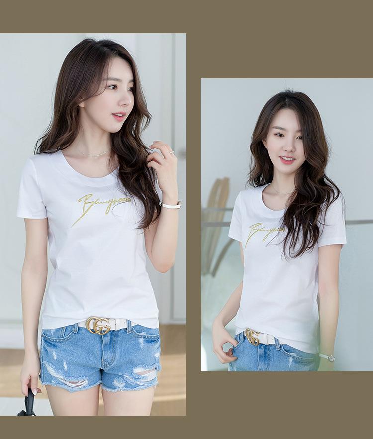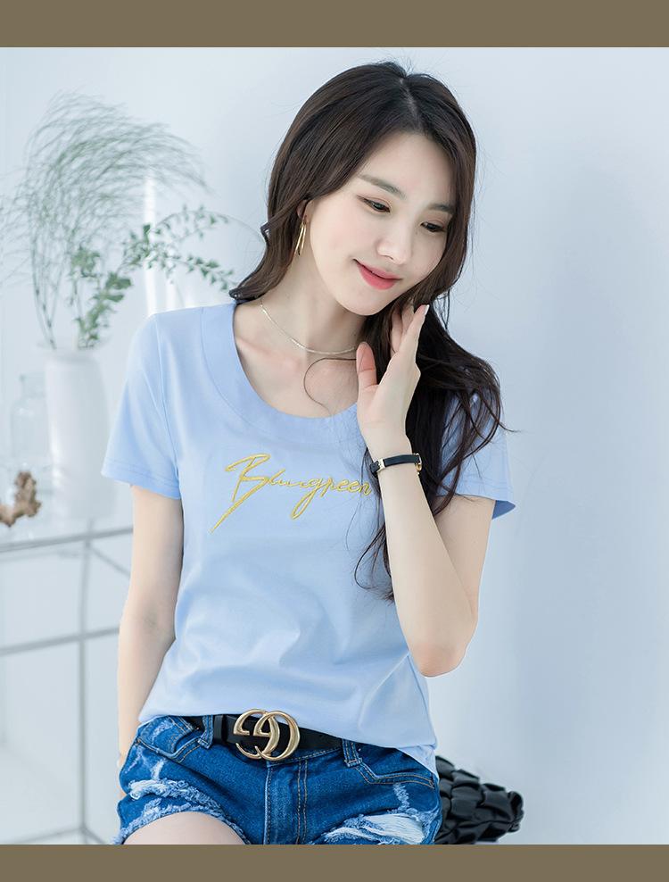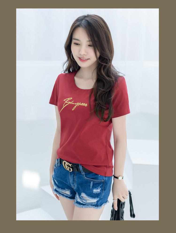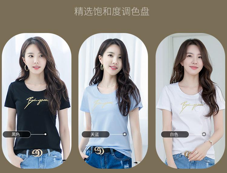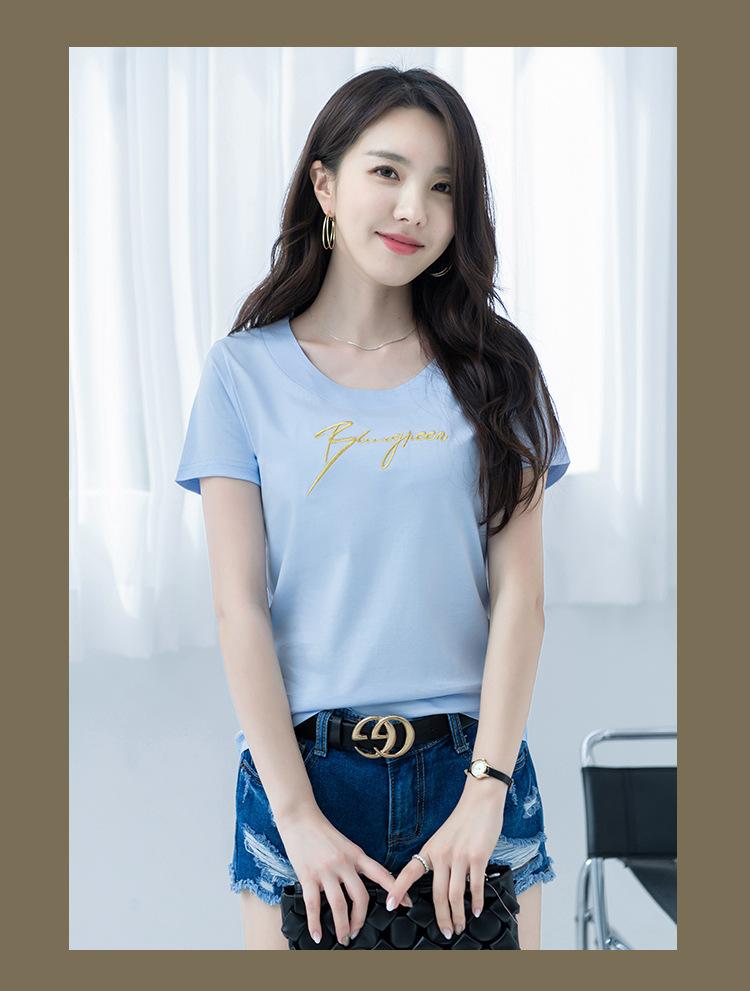 Camiseta de algodón mercerizado para mujer, primavera y verano 2025, nueva, de manga corta, cuello redondo, bordado inglés, cómoda camiseta de algodón 6923