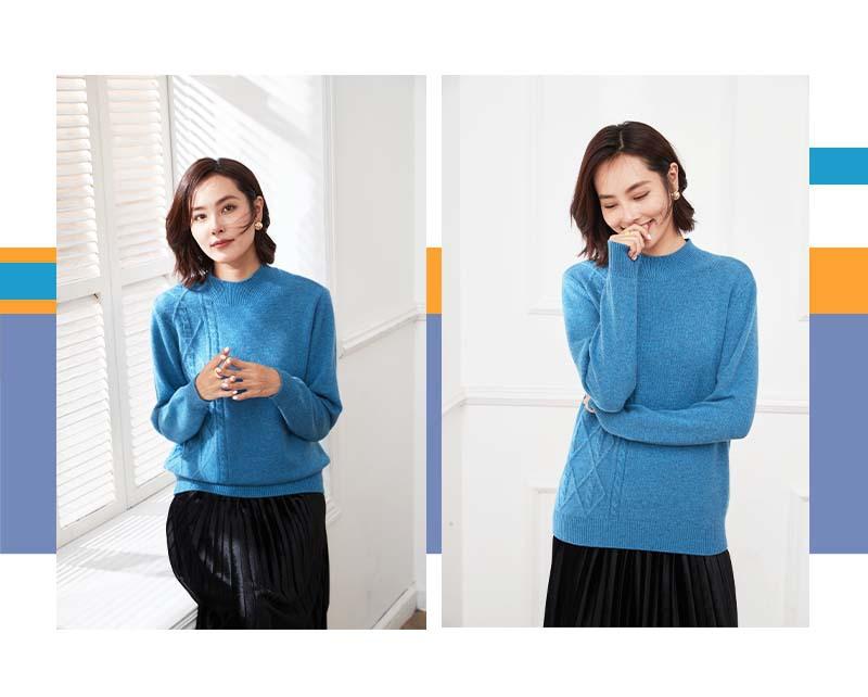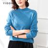 Suéter elástico y agradable para la piel, de moda, con retorcido lateral, estilo coreano, ajustado, de medio cuello alto, jersey grueso de punto de cachemira pura para mujer