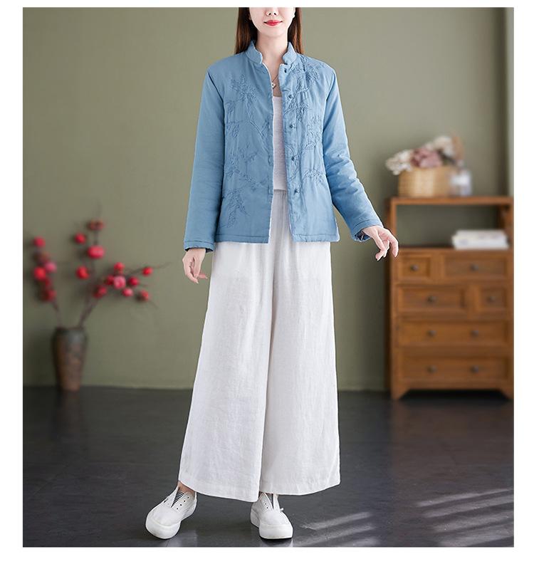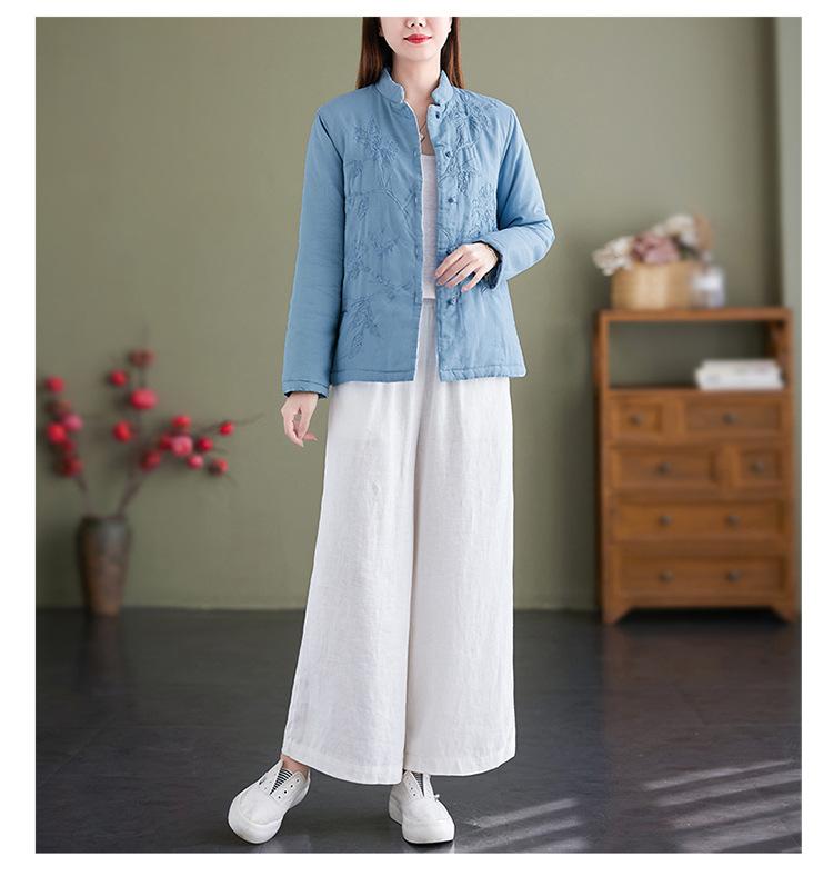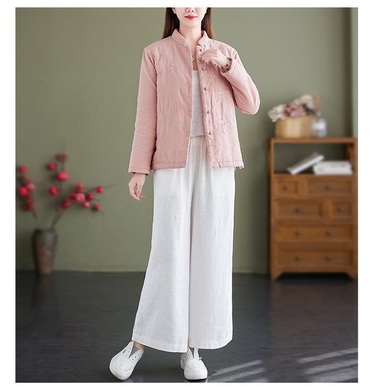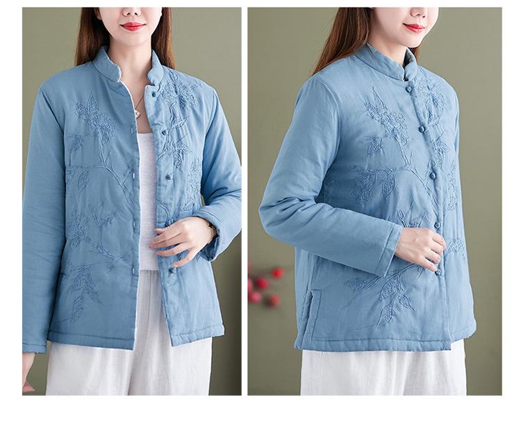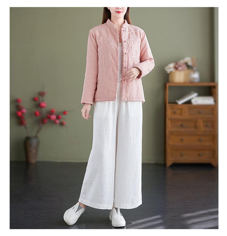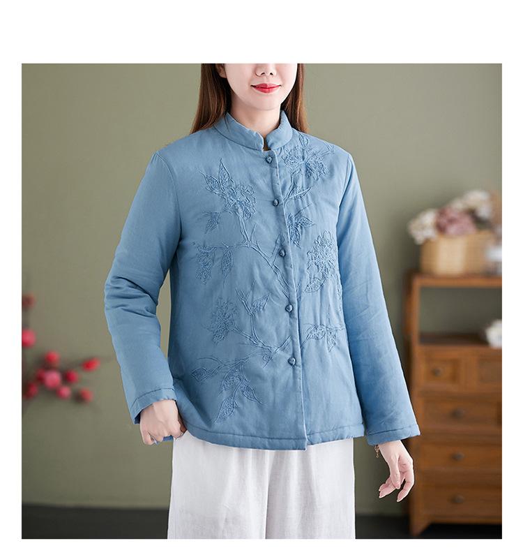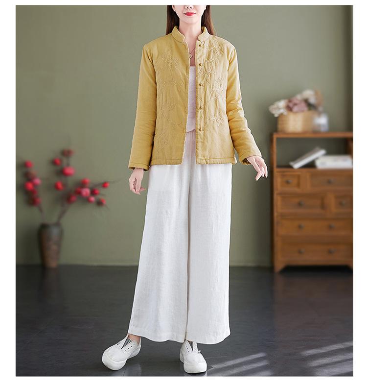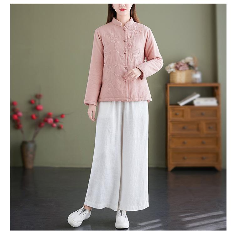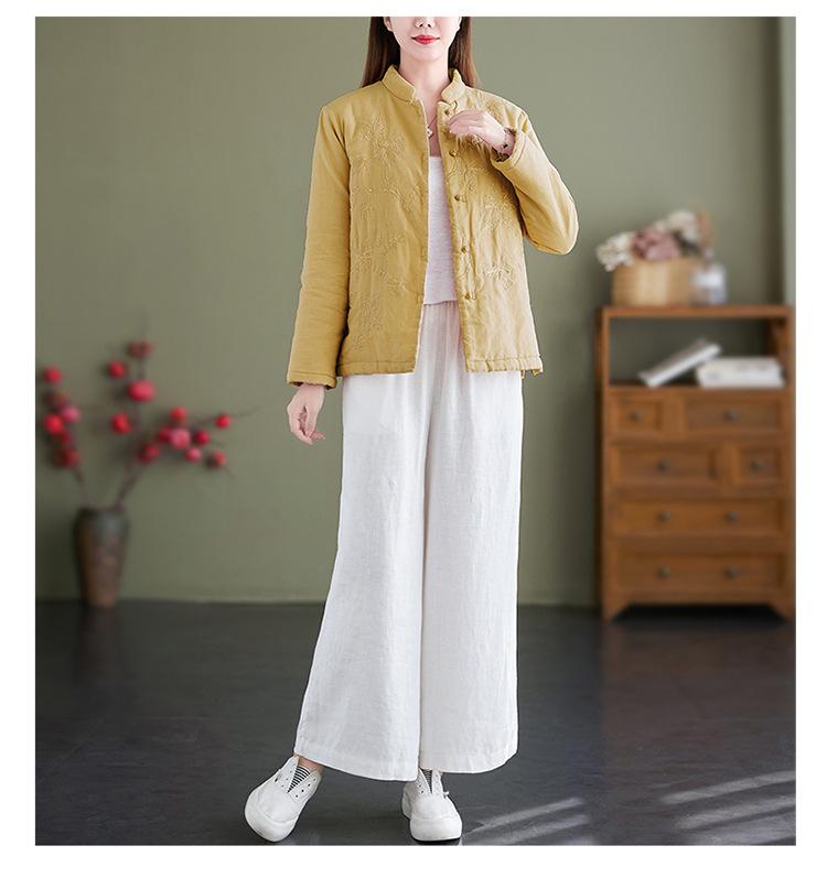Abrigo acolchado de algodón y lino con hebilla retro de estilo chino de tiro real, abrigo de té acolchado grueso, chaqueta acolchada de algodón bordada, abrigo corto